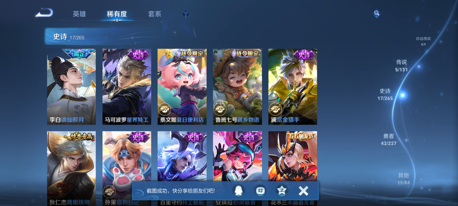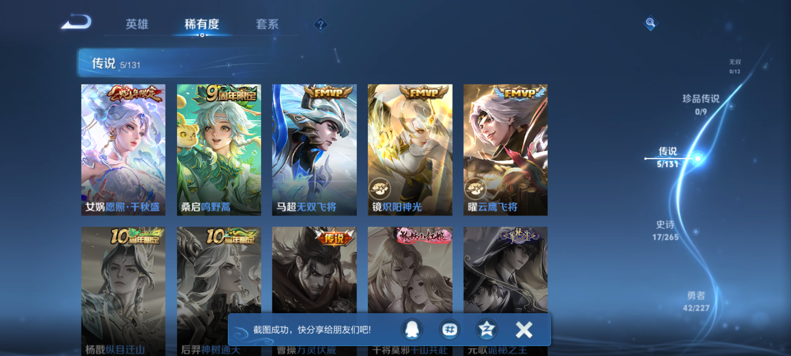 【王者荣耀】【lywz23770】珍品无双0 典藏0 无双0 珍品传说0 传说5 史诗17 英雄106 皮肤79 贵族5级 传说皮肤:鸣野蒿|无双飞将|炽阳神光|云鹰飞将|愿照·千秋盛__稀有限定:古海寻踪|海滩派对|皇家上将|天穹祈灯|阴阳师|鬼剑武藏|李元芳-蔬乡物语|赏金猎手|绅士熊喵|鲁班七号-蔬乡物语|水果甜心|水晶猎龙者|孙策-猫狗日记|摇滚巨星|鹰眼统帅|幽灵船长|谪仙醉月|星界特工|噬灭天穹|蔡文姬-夏日便利店|虞姬-夏日便利店|特工魅影|心灵骇客|谧流熔炉|布丁狗之约|虚灵犬护__优质皮肤:尼罗河女神|孤猎|午夜歌剧院|激情绿茵|海之征途|碧珀绯影|秩序猎龙将|绯红之刃|启蛰|绝影神呛|荷鲁斯之眼|灼热之刃|战争女神|修竹墨客|怪诞之夜|丁香结|功夫老勺|兔女郎|天使之翼|宫本武藏-未来纪元|红桃皇后|街头霸王|漠中幻影|零食大作战|太极少年|拳王|白色死神|程咬金-星际陆战队|哥特玫瑰|灵卦秘语|景韶洛都|掌控之力|逐霄战戟|纽约教父|龙腾万里|乱世虎臣|经纬探寻者|敏锐之力|乓乓大师|五福同心|万事如意|曜-归虚梦演|完美运算|万象初新|特工战影|妄想特派|灵野札记|玫蓝誓约__贵族等级:贵族5级__王者段位:永恒钻石无双飞将,云鹰飞将,炽阳神光,愿照·千秋盛,鸣野蒿 史诗 谪仙醉月