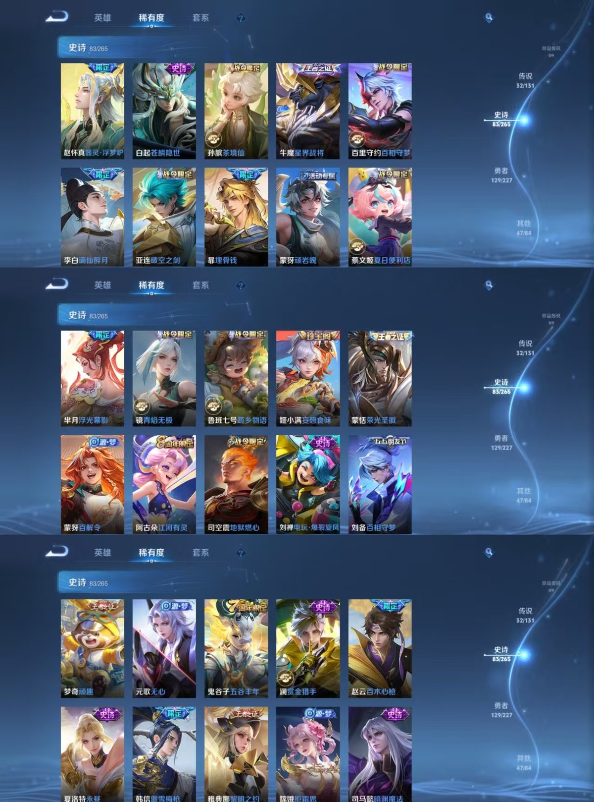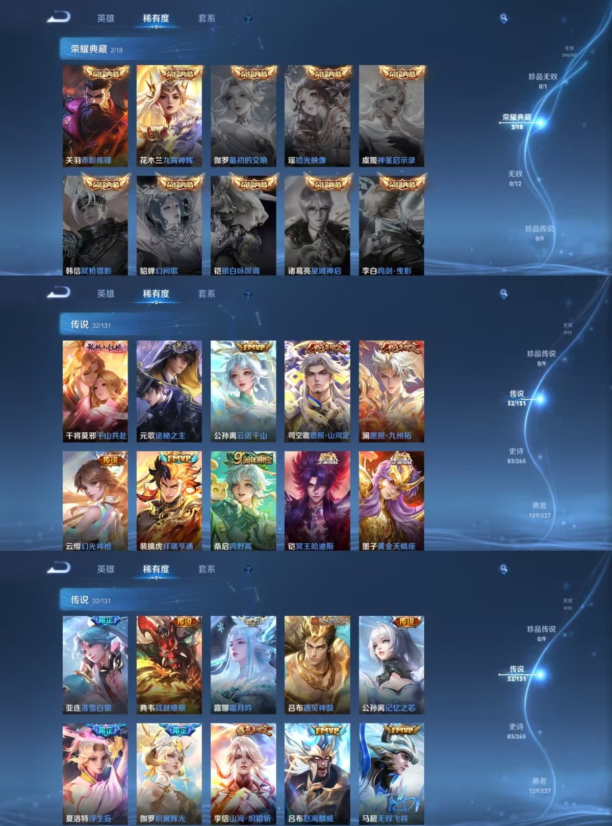 2311630-实名: 可修改 贵族等级: v8 英雄数: 126 皮肤数: 293 荣耀水晶: 九霄神辉赤影疾锋 传说皮: 黄金狮子座黄金射手座云鹰飞将黄金白羊座炽阳神光一念神魔末日机甲-孙尚香地狱之眼时之恋人-刘备无双飞将山海·炽霜斩炽翼辉光浮生妄记忆之芯遇见神鼓霜月吟典韦战鼓燎原落雪白狼黄金天蝎座铠冥王哈迪斯幻光神呛祥瑞亨通云诺千山诡秘之