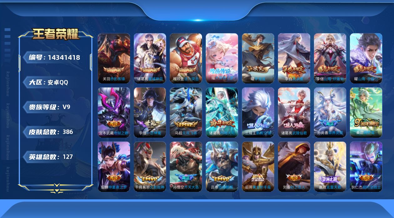 [14341418]贵族9 星耀2 贵族积分162458 安卓手q298区386皮3典藏27传说0无双1珍品传说v9 营地id2128034767至尊星耀ii【珍品传说皮肤】:大耳狗之梦【荣耀典藏】:赤影疾锋星域神启活力突击【优质限定皮肤】:山海·苍雷引山海·炽霜斩无双飞将神威凤求凰【传说皮肤】:地狱之眼玄雷天君怒海麟威鸣野蒿李 山海·苍雷引山海·炽霜斩齐天大圣时