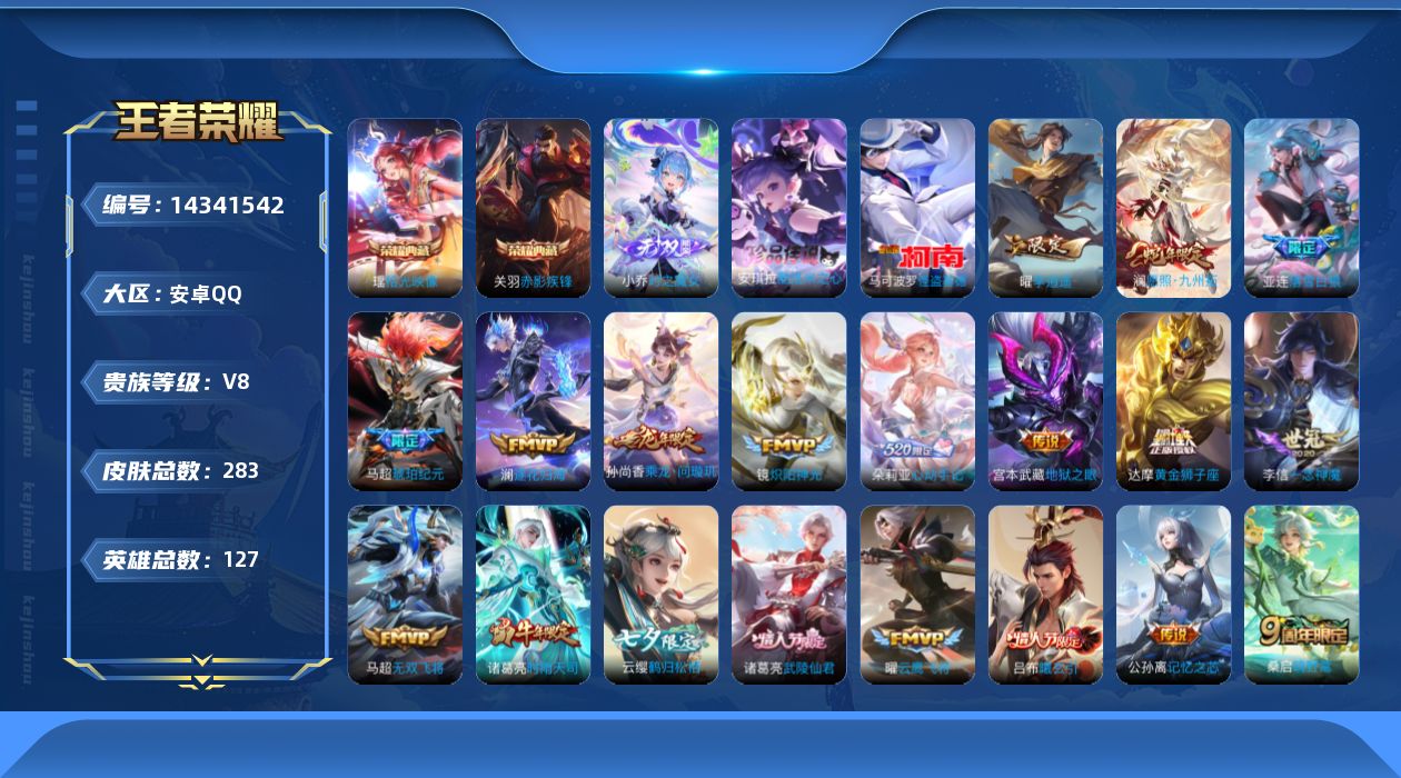 [14341542]可二次 贵族8 王者3 安卓手q380区283皮2典藏28传说1无双2珍品传说v8 营地id1791920494最强王者【珍品传说皮肤】:酷洛米之心怪盗基德【无双皮肤】:时之魔女【荣耀典藏】:拾光映像赤影疾锋【优质限定皮肤】:至尊宝无双飞将云中君时之祈愿神威【传说皮肤】:黄金狮子座神树通天愿照·九州拓鸣野蒿心动手记怒海麟威落雪白狼曦玄引