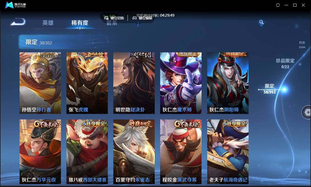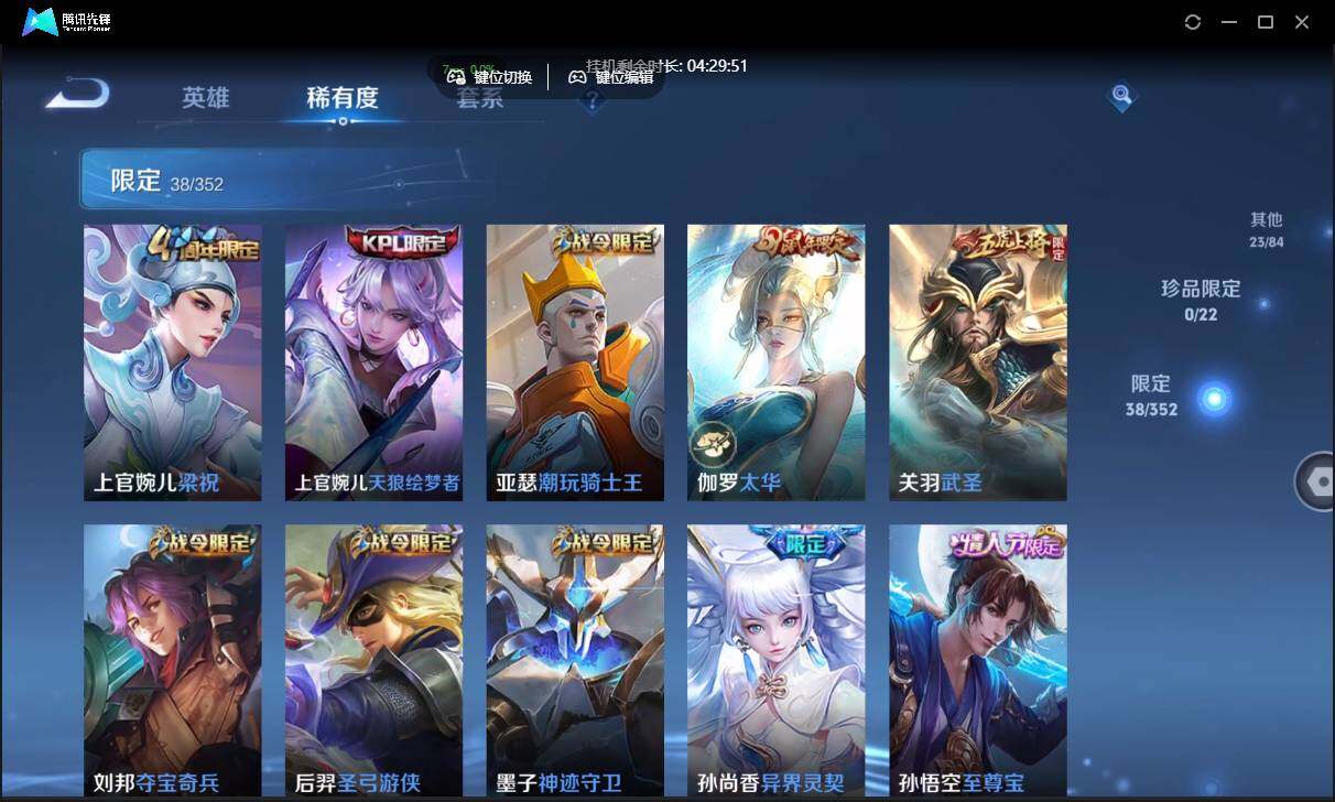 _2310996-【w4021】【亮点:2k游戏天数-1.4k低场次开局号】营地id:1842284528【热门:至尊宝启明星使太华武圣异界灵契】安卓微-有二次-贵8-96英雄-116皮肤-16传说-38限定-1天幕-贵族积分7.2w