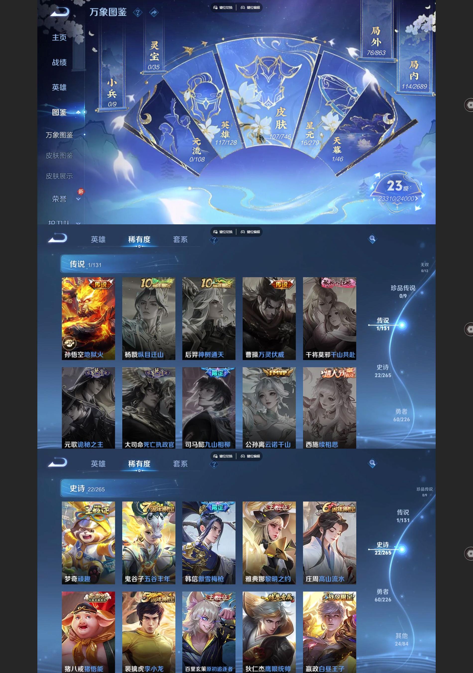 2271966-苹果q-107皮肤1传说1星元22史诗44限定-2781紫星币 【星元】 幽冥火 【传说】 地狱火 【热门】傲雪梅呛 猪悟能 猎兽之王 冰冠公主 原初追逐者 黎明之约 原初探秘者 李小龙 水晶猎龙者 暗隐猎兽者 白昼王子 特工战影 蔷薇恋人 千年之狐 幽灵船长 鬼剑武藏 炼金王 凯尔特女王 狰 饕餮 烛龙 重明 穷奇 御狮 御霄 御旌 御銮 疑决卦 醍醐杖 万华元夜 驱
