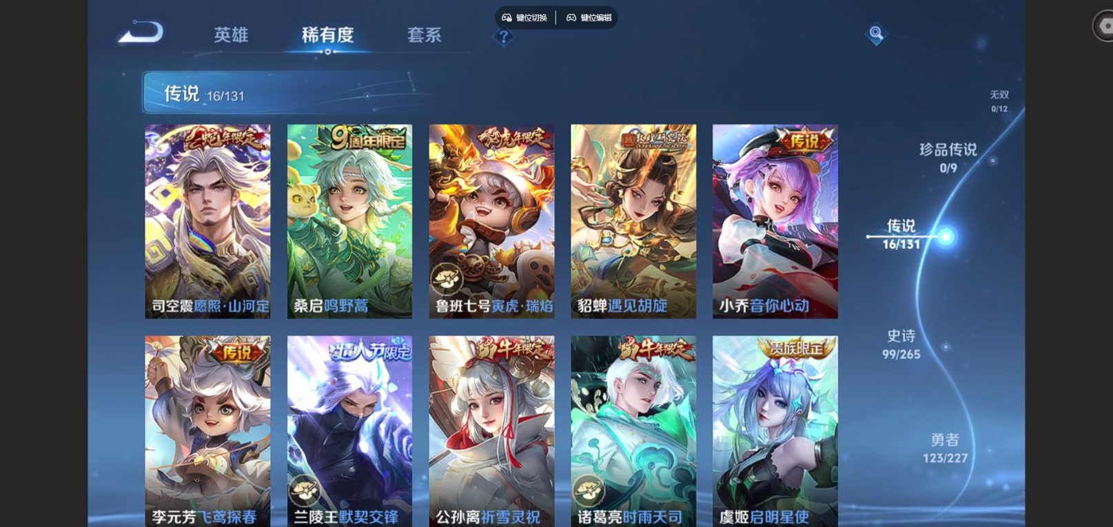 2312348-127英雄-293皮肤v8-2典藏16传说 金标赵怀真 2星传说 未来机甲 金色仲夏夜 【全皮英雄】 司空震全皮 赵怀真全皮 【典藏】 鸣剑曳影 银白咏叹调 【传说】 愿照山河定 鸣野蒿 启明星使 时雨天司 祈雪灵祝 寅虎瑞焰 遇见胡旋 默契交锋男 音你心动女 云鹰飞将 久胜战神 一念神魔 超时空战士男 飞鸢探春 仲夏夜之梦 末日机甲女 【热门】涂山容容 神威 冰封战神