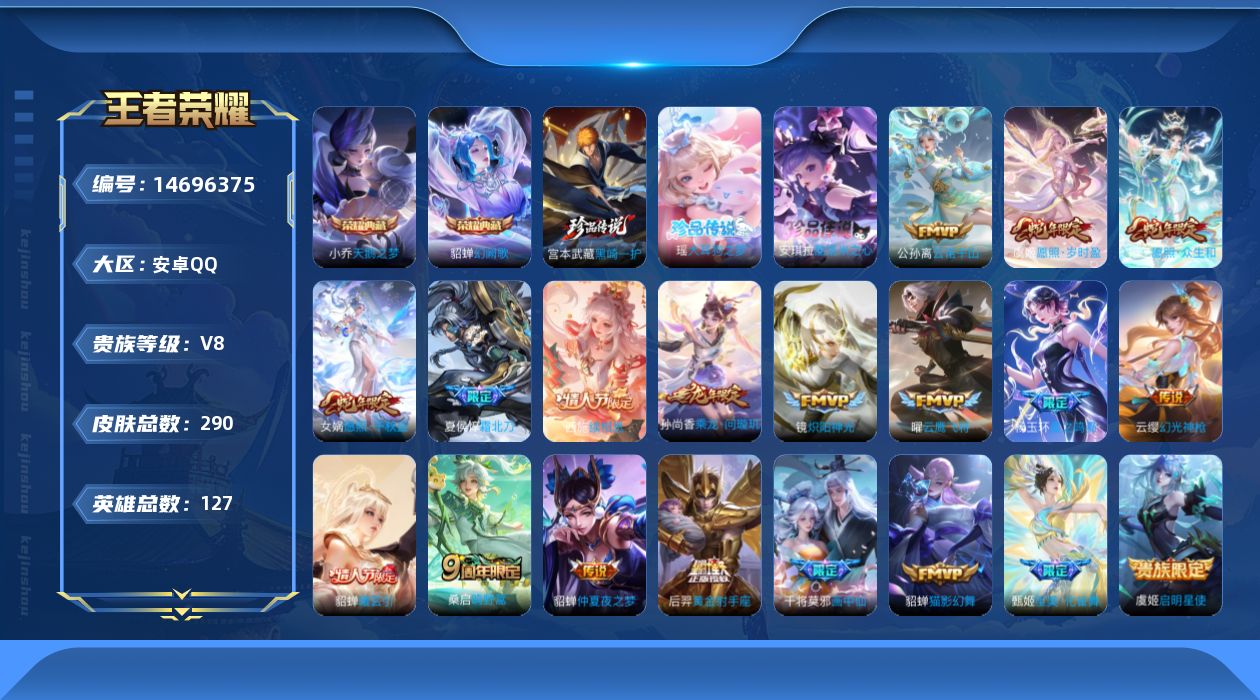 [14696375]贵族8-贵族积分62332-290皮2典藏20传说0无双3珍品传说-5个英雄全皮 小女号 安卓手q388区290皮2典藏20传说0无双3珍品传说v8 营地id1670581091至圣王者【珍品传说皮肤】:黑崎一护酷洛米之心大耳狗之梦【荣耀典藏】:天鹅之梦幻阙歌【传说皮肤】:神树通天至美·化雀舞霜北刀猫影幻舞云鹰飞将仲夏夜之梦曦玄引乘龙·问璇玑启明星