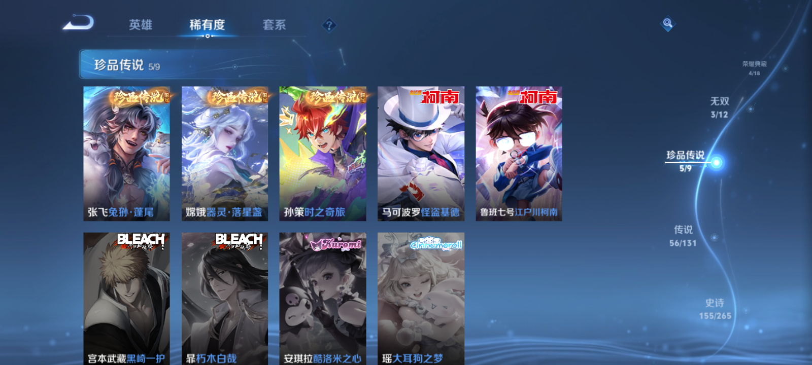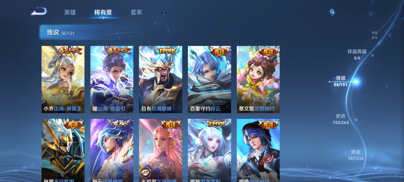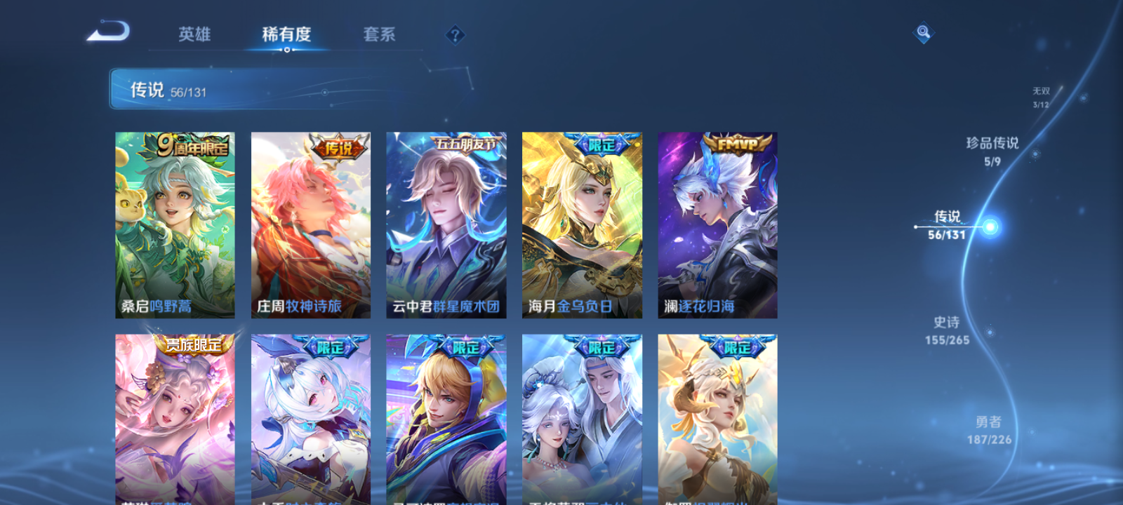【王者荣耀】【lywz21210】珍品无双0 典藏4 无双3 珍品传说5 传说56 史诗155 英雄128 皮肤492 贵族10级 荣耀典藏:武则天|神鉴启示录|银白咏叹调|幻阙歌|最初的交响__无双皮肤:群星魔术团|花合斗|神器·明辉仪__珍品传说:江户川柯南|怪盗基德|孙策-时之奇旅|器灵·落星盏|兔狲·蓬尾__传说皮肤:鸣野蒿|花朝如约|绛天战甲|炽阳神光|启明星使|胖达荣荣|地狱之眼|地狱火|海洋之心|孙策-末日机甲|仲夏夜之梦|云霓雀翎|久胜战神|黄金狮子座|黄金射手座|黄金白羊座|猫影幻舞|刘备-时之恋人|一念神魔|云鹰飞将|冠军飞将|游龙清影|乞巧织情|淬星耀世|炽翼辉光|画中仙|孙尚香-末日机甲|白虎志|大乔-时之奇旅|金乌负日|怒海麟威|祈雪灵祝|时雨天司|碎云|太华|天魔缭乱|妄想实况|武圣|小乔-音你心动|周瑜-音你心动|逐花归海|觅芳踪|山海·苍雷引|山海·琳琅生|云中君-群星魔术团|牧神诗旅|玄雷天君|幻光神呛|愿照·岁时盈|愿照·山河定|愿照·九州拓|愿照·众生和|愿照·千秋盛|千劫归真|神树通天|纵目迁山__稀有限定:寅虎·御盾|白晶晶|至尊宝|虞姬-霸王别姬|纯白花嫁|岱宗|幽恒|飞衡|神威|烈魂|龙胆|白鹤梁神女|孙行者|李小龙|梁祝|狮舞东方|唐三藏|拒霜思|暗影游猎|白昼王子|百解令|冰霜恋舞曲|冰霜神祇|大漠名商|地狱燃心|电玩高手|繁星吟游|高山流水|古海寻踪|海滩派对|海盐诗旅|航海奇遇记|胡桃异想国|华丽摇滚|幻夜卜梦|皇家上将|辉光之辰|混沌棋|火炮绅士|剑破天穹|江河有灵|金庭之子|狂想玩偶喵|蓝屏警告|黎明之约|迷踪丽影|魔术师|女武神|奇幻香踪|千军破阵|擒涛扼浪|青焰无极|穷奇|驱傩正仪|燃音魔法|沙漠行僧|朔风刀|死亡摇滚|探海日志|饕餮|醍醐杖|天狼狩猎者|天狼溯光者|天狼运算者|天穹祈灯|阿古朵-顽趣|万华元夜|妄想食味|无心|五谷丰年|午后时光|纤云弄巧|星界游侠|星空之诺|驯魔猎人|演武夺筹|夜都怪侠|疑决卦|阴阳师|吟游魔法|银河之约|优雅恋人|游园惊梦|遇见飞天|御旌|御銮|御狮|云间偶戏|真爱魔法|暗夜贵公子|暗夜猫娘|暗隐猎兽者|暗渊魔法|白蛇|缤纷独角兽|冰冠公主|冰雪圆舞曲|苍穹之光|乘风破浪|大乔-猫狗日记|德古拉伯爵|地狱岩魂|电玩小子|功夫厨神|鬼剑武藏|唤灵魅影|黄金分割率|箭羽风息|节奏热浪|金属风暴|乐园奇幻夜|李元芳-蔬乡物语|龙鼓争鸣|龙骑士|吕布-末日机甲|魅力维加斯|魅语|梦奇-顽趣|女仆咖啡|偶像歌手|奇遇舞章|千筹问战|青蛇|热力回旋|赏金猎手|上官婉儿-群星魔术团|绅士熊喵|圣诞狂欢|圣诞恋歌|诗语江南|鲁班七号-蔬乡物语|水果甜心|水晶猎龙者|孙策-猫狗日记|天才门将|天秀·幻梦|天秀·启明|天秀·音浪|晚萤|赵云-未来纪元|星夜王子|雪上飞焰|摇滚巨星|银翎春语|鹰眼统帅|永昼|幽灵船长|遇见神鹿|月团寄思|钟无艳-超时空战士|逐浪之夏|紫霞仙子|百里守约-百相守梦|老夫子-百相守梦|陌上桑|谪仙醉月|噬灭天穹|敬我三分|炽弈燎原|撼地雄心|破空之剑|东方月初|涂山红红|蔡文姬-夏日便利店|虞姬-夏日便利店|天穹之誓|安琪拉-时之奇旅|修罗|曙光守护者|心灵战警|千年之狐|孙尚香-时之恋人|无限星赏官|舞动绿茵|特工魅影|心灵骇客|茶境仙|谧流熔炉|器灵·浮梦炉|狼魂孤将|绮世丹青|化蝶舞|御霄|烛龙|原初探秘者|重明|云中旅人|玲珑珍味|单词大作战|朔望之晖|钟馗-神迹守卫|孙悟空-神迹守卫|达摩-星际陆战队|流音漫舞|访茗客|暖冬·兔眠|灵卜魔法|夺宝奇兵|苍威无极|圣弓游侠|墨子-神迹守卫|落雪兰心|华尔街大亨|刘禅-鸭鸭历险记|沈梦溪-鸭鸭历险记|灵蛊蚀心|龙之律动|布丁狗之约|虚灵犬护|石田雨龙|逆浪荇歌|孙策-百相守梦|周瑜-百相守梦|戍鼓铭心|黄忠-百相守梦|涂山容容|光弋星穹|傩神司|往忆晖光|荣光之誓|鹤鸣心笺__优质皮肤:尼罗河女神|一千零一夜|创世神祝|年年有余|埃及法老|孤猎|木偶奇遇记|熊喵少女|午夜歌剧院|火炮千金|露花倒影|未来旅行|激情绿茵|海之征途|天启骑士|碧珀绯影|秩序猎龙将|锦衣卫|冰刃幻境|森|超能战警|英喵野望|维京掠夺者|海军大将|绯红之刃|踏雪寻梅|启蛰|战争骑士|伊势巫女|画中游|生化警戒|威尼斯狂欢|第七人偶|潮流仙人|芝加哥教父|街头旋风|绝影神呛|地府判官|荷鲁斯之眼|幸存者|赤焰之缨|福禄兄弟|隐刃|前尘|特种部队|三太子|精灵王|剑舞者|范海辛|星航指挥官|龙域领主|爱与和平|占星师|花间舞|魇语军师|极冰防御线|花见巫女|棒球奇才|东海龙王|蔷薇王座|灼热之刃|精准探案法|圣殿之光|帝国元帅|神奇女侠|战争女神|霓裳曲|加勒比小姐|阿摩司公爵|异域舞娘|精灵公主|修竹墨客|万圣前夜|怪诞之夜|破阵·退雄兵|暗都幽影|功夫炙烤|幻夜行动|聚星闪耀|潮玩探月行|秘密基地|次元突破|鲨炮海盗猫|野性能量|丁香结|奇妙博物学|虹云星官|科学大爆炸|守护之力|坚韧之力|幻乐之宴|功夫老勺|命运角斗场|幻想奇妙夜|海滩丽影|阿尔法小队|兔女郎|死亡骑士|黄金武士|少女阿狸|天使之翼|玩偶对对碰|宫本武藏-未来纪元|东方不败|红桃皇后|忍·炎影|爱心护理|街头霸王|教廷特使|金色潮汐|漠中幻影|时空谍影|破局者|零食大作战|西部游侠|太极少年|牛运亨通|幻泉雾影|潮玩造梦师|危途狂花|重装意志|次元傲视|无尽征程|幽兰居士|如懿|进击墨子号|拳王|时尚教父|救世之瞳|白色死神|爱与正义|程咬金-星际陆战队|白执事|大发明家|哥特玫瑰|魅影绮裳|西施-