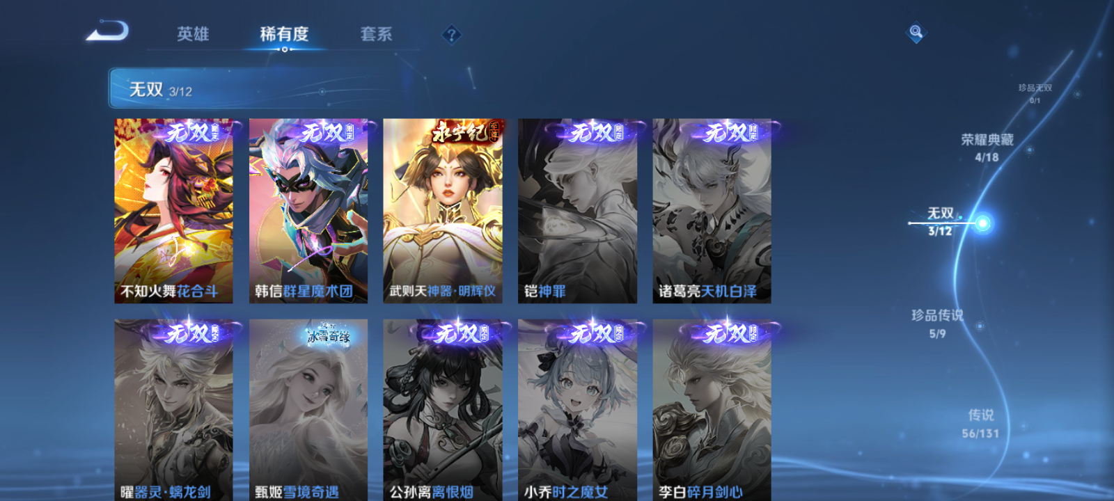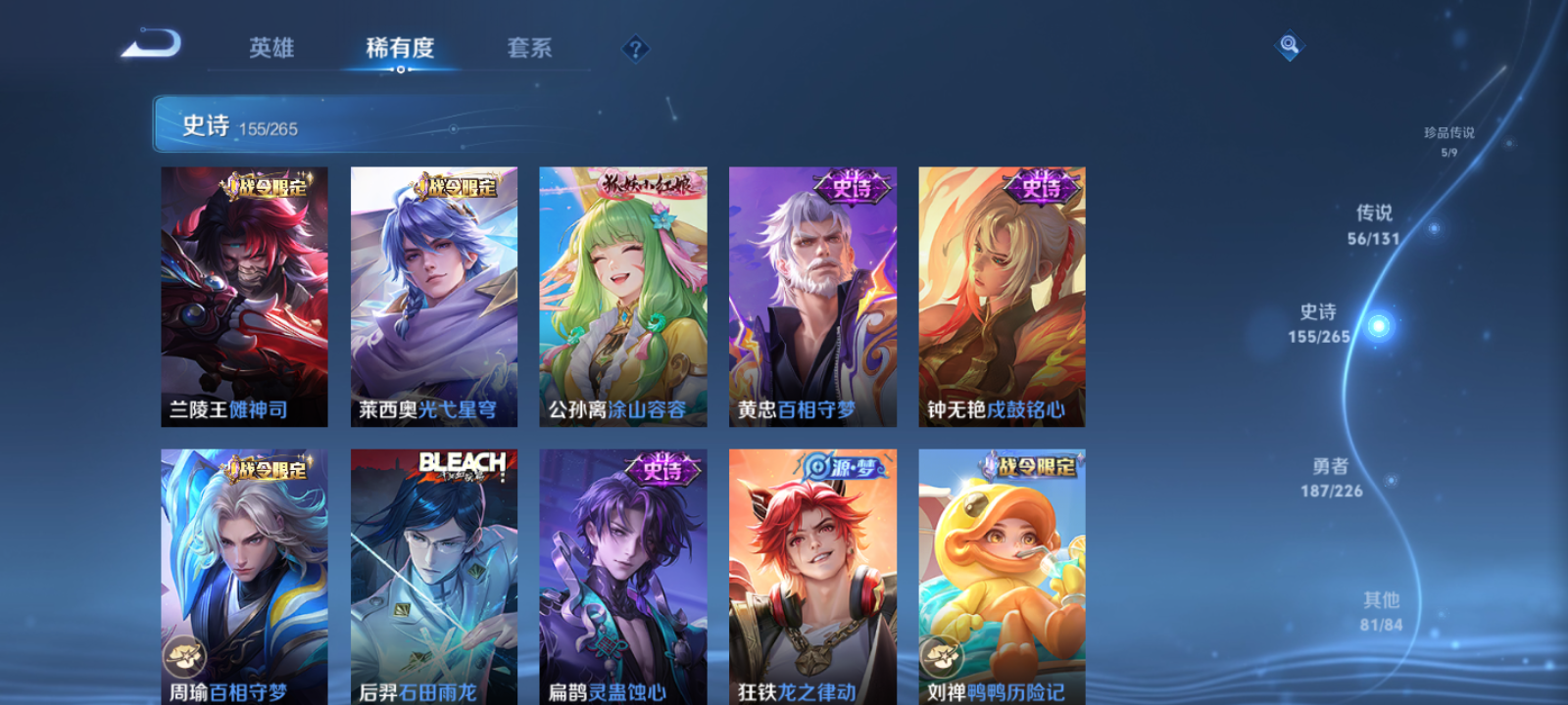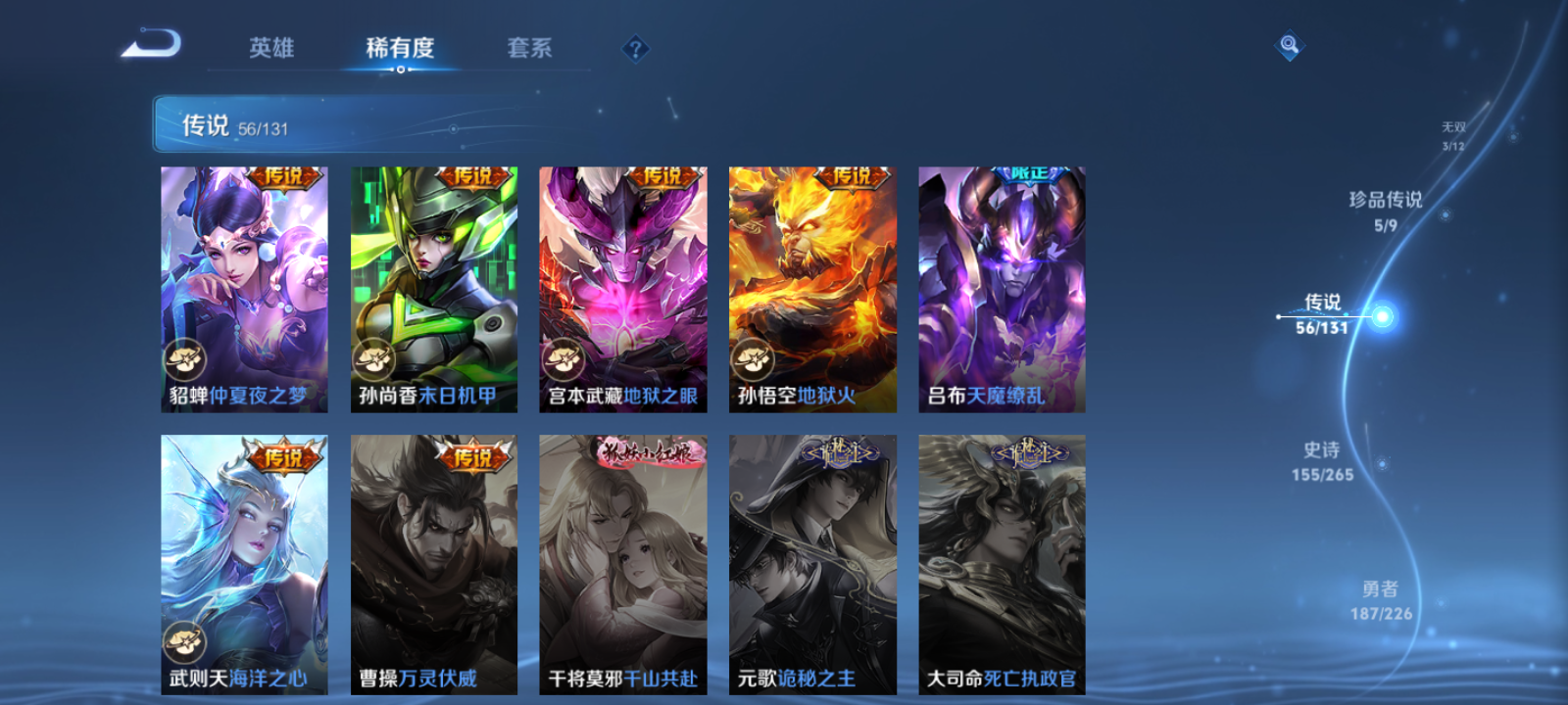 【王者荣耀】【lywz21210】珍品无双0 典藏4 无双3 珍品传说5 传说56 史诗155 英雄128 皮肤492 贵族10级 荣耀典藏:武则天|神鉴启示录|银白咏叹调|幻阙歌|最初的交响__无双皮肤:群星魔术团|花合斗|神器·明辉仪__珍品传说:江户川柯南|怪盗基德|孙策-时之奇旅|器灵·落星盏|兔狲·蓬尾__传说皮肤:鸣野蒿|花朝如约|绛天战甲|炽阳神光|启明星使|胖达荣荣|地狱之眼|地狱火|海洋之心|孙策-末日机甲|仲夏夜之梦|云霓雀翎|久胜战神|黄金狮子座|黄金射手座|黄金白羊座|猫影幻舞|刘备-时之恋人|一念神魔|云鹰飞将|冠军飞将|游龙清影|乞巧织情|淬星耀世|炽翼辉光|画中仙|孙尚香-末日机甲|白虎志|大乔-时之奇旅|金乌负日|怒海麟威|祈雪灵祝|时雨天司|碎云|太华|天魔缭乱|妄想实况|武圣|小乔-音你心动|周瑜-音你心动|逐花归海|觅芳踪|山海·苍雷引|山海·琳琅生|云中君-群星魔术团|牧神诗旅|玄雷天君|幻光神呛|愿照·岁时盈|愿照·山河定|愿照·九州拓|愿照·众生和|愿照·千秋盛|千劫归真|神树通天|纵目迁山__稀有限定:寅虎·御盾|白晶晶|至尊宝|虞姬-霸王别姬|纯白花嫁|岱宗|幽恒|飞衡|神威|烈魂|龙胆|白鹤梁神女|孙行者|李小龙|梁祝|狮舞东方|唐三藏|拒霜思|暗影游猎|白昼王子|百解令|冰霜恋舞曲|冰霜神祇|大漠名商|地狱燃心|电玩高手|繁星吟游|高山流水|古海寻踪|海滩派对|海盐诗旅|航海奇遇记|胡桃异想国|华丽摇滚|幻夜卜梦|皇家上将|辉光之辰|混沌棋|火炮绅士|剑破天穹|江河有灵|金庭之子|狂想玩偶喵|蓝屏警告|黎明之约|迷踪丽影|魔术师|女武神|奇幻香踪|千军破阵|擒涛扼浪|青焰无极|穷奇|驱傩正仪|燃音魔法|沙漠行僧|朔风刀|死亡摇滚|探海日志|饕餮|醍醐杖|天狼狩猎者|天狼溯光者|天狼运算者|天穹祈灯|阿古朵-顽趣|万华元夜|妄想食味|无心|五谷丰年|午后时光|纤云弄巧|星界游侠|星空之诺|驯魔猎人|演武夺筹|夜都怪侠|疑决卦|阴阳师|吟游魔法|银河之约|优雅恋人|游园惊梦|遇见飞天|御旌|御銮|御狮|云间偶戏|真爱魔法|暗夜贵公子|暗夜猫娘|暗隐猎兽者|暗渊魔法|白蛇|缤纷独角兽|冰冠公主|冰雪圆舞曲|苍穹之光|乘风破浪|大乔-猫狗日记|德古拉伯爵|地狱岩魂|电玩小子|功夫厨神|鬼剑武藏|唤灵魅影|黄金分割率|箭羽风息|节奏热浪|金属风暴|乐园奇幻夜|李元芳-蔬乡物语|龙鼓争鸣|龙骑士|吕布-末日机甲|魅力维加斯|魅语|梦奇-顽趣|女仆咖啡|偶像歌手|奇遇舞章|千筹问战|青蛇|热力回旋|赏金猎手|上官婉儿-群星魔术团|绅士熊喵|圣诞狂欢|圣诞恋歌|诗语江南|鲁班七号-蔬乡物语|水果甜心|水晶猎龙者|孙策-猫狗日记|天才门将|天秀·幻梦|天秀·启明|天秀·音浪|晚萤|赵云-未来纪元|星夜王子|雪上飞焰|摇滚巨星|银翎春语|鹰眼统帅|永昼|幽灵船长|遇见神鹿|月团寄思|钟无艳-超时空战士|逐浪之夏|紫霞仙子|百里守约-百相守梦|老夫子-百相守梦|陌上桑|谪仙醉月|噬灭天穹|敬我三分|炽弈燎原|撼地雄心|破空之剑|东方月初|涂山红红|蔡文姬-夏日便利店|虞姬-夏日便利店|天穹之誓|安琪拉-时之奇旅|修罗|曙光守护者|心灵战警|千年之狐|孙尚香-时之恋人|无限星赏官|舞动绿茵|特工魅影|心灵骇客|茶境仙|谧流熔炉|器灵·浮梦炉|狼魂孤将|绮世丹青|化蝶舞|御霄|烛龙|原初探秘者|重明|云中旅人|玲珑珍味|单词大作战|朔望之晖|钟馗-神迹守卫|孙悟空-神迹守卫|达摩-星际陆战队|流音漫舞|访茗客|暖冬·兔眠|灵卜魔法|夺宝奇兵|苍威无极|圣弓游侠|墨子-神迹守卫|落雪兰心|华尔街大亨|刘禅-鸭鸭历险记|沈梦溪-鸭鸭历险记|灵蛊蚀心|龙之律动|布丁狗之约|虚灵犬护|石田雨龙|逆浪荇歌|孙策-百相守梦|周瑜-百相守梦|戍鼓铭心|黄忠-百相守梦|涂山容容|光弋星穹|傩神司|往忆晖光|荣光之誓|鹤鸣心笺__优质皮肤:尼罗河女神|一千零一夜|创世神祝|年年有余|埃及法老|孤猎|木偶奇遇记|熊喵少女|午夜歌剧院|火炮千金|露花倒影|未来旅行|激情绿茵|海之征途|天启骑士|碧珀绯影|秩序猎龙将|锦衣卫|冰刃幻境|森|超能战警|英喵野望|维京掠夺者|海军大将|绯红之刃|踏雪寻梅|启蛰|战争骑士|伊势巫女|画中游|生化警戒|威尼斯狂欢|第七人偶|潮流仙人|芝加哥教父|街头旋风|绝影神呛|地府判官|荷鲁斯之眼|幸存者|赤焰之缨|福禄兄弟|隐刃|前尘|特种部队|三太子|精灵王|剑舞者|范海辛|星航指挥官|龙域领主|爱与和平|占星师|花间舞|魇语军师|极冰防御线|花见巫女|棒球奇才|东海龙王|蔷薇王座|灼热之刃|精准探案法|圣殿之光|帝国元帅|神奇女侠|战争女神|霓裳曲|加勒比小姐|阿摩司公爵|异域舞娘|精灵公主|修竹墨客|万圣前夜|怪诞之夜|破阵·退雄兵|暗都幽影|功夫炙烤|幻夜行动|聚星闪耀|潮玩探月行|秘密基地|次元突破|鲨炮海盗猫|野性能量|丁香结|奇妙博物学|虹云星官|科学大爆炸|守护之力|坚韧之力|幻乐之宴|功夫老勺|命运角斗场|幻想奇妙夜|海滩丽影|阿尔法小队|兔女郎|死亡骑士|黄金武士|少女阿狸|天使之翼|玩偶对对碰|宫本武藏-未来纪元|东方不败|红桃皇后|忍·炎影|爱心护理|街头霸王|教廷特使|金色潮汐|漠中幻影|时空谍影|破局者|零食大作战|西部游侠|太极少年|牛运亨通|幻泉雾影|潮玩造梦师|危途狂花|重装意志|次元傲视|无尽征程|幽兰居士|如懿|进击墨子号|拳王|时尚教父|救世之瞳|白色死神|爱与正义|程咬金-星际陆战队|白执事|大发明家|哥特玫瑰|魅影绮裳|西施-