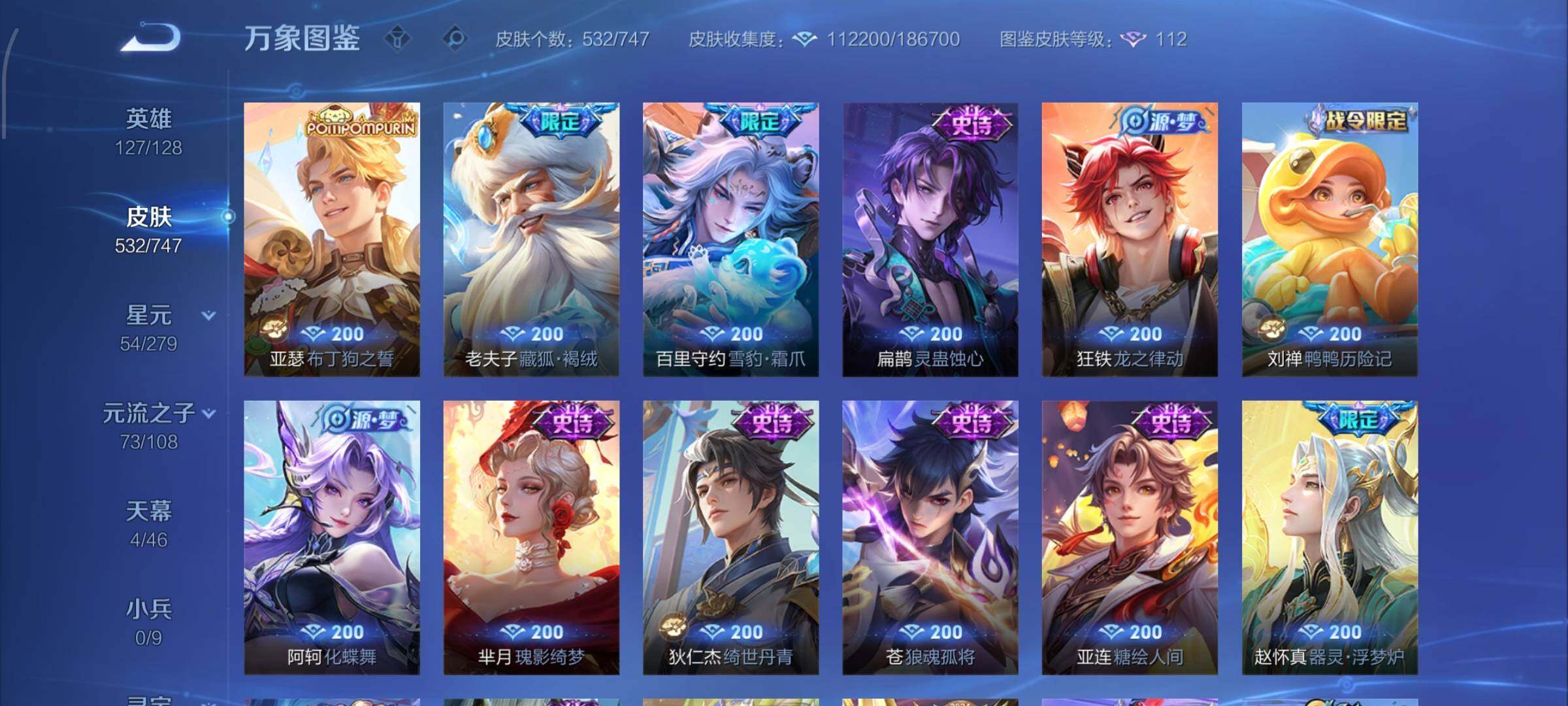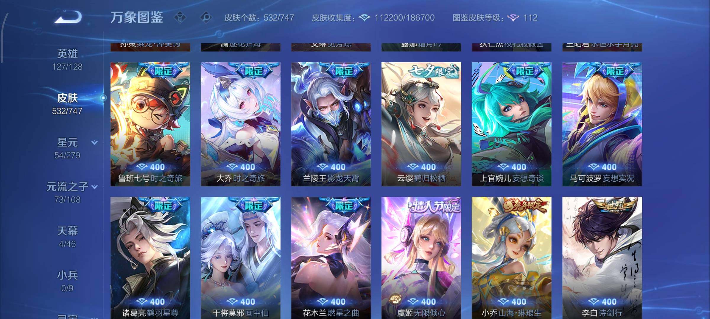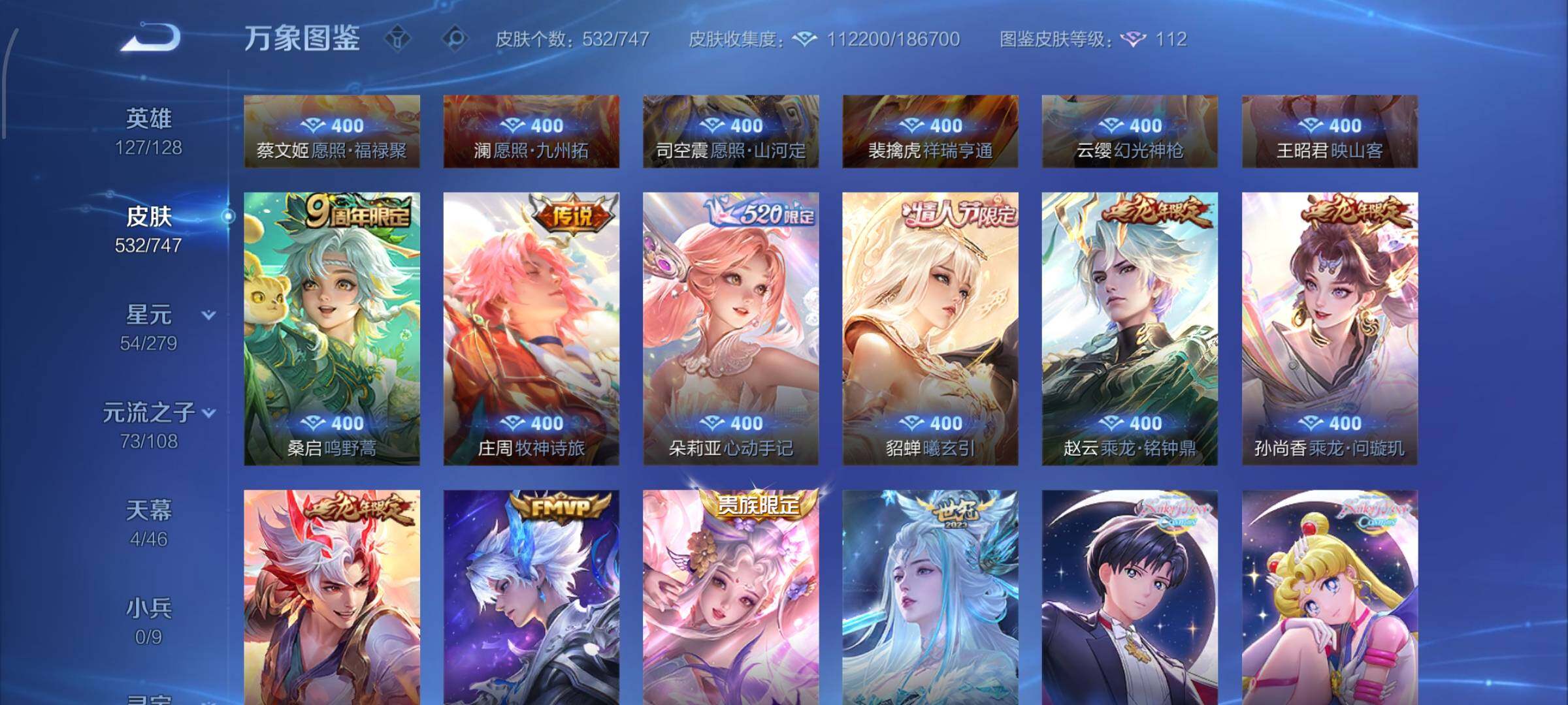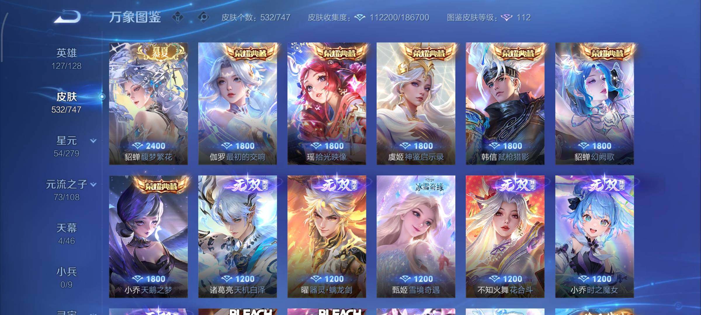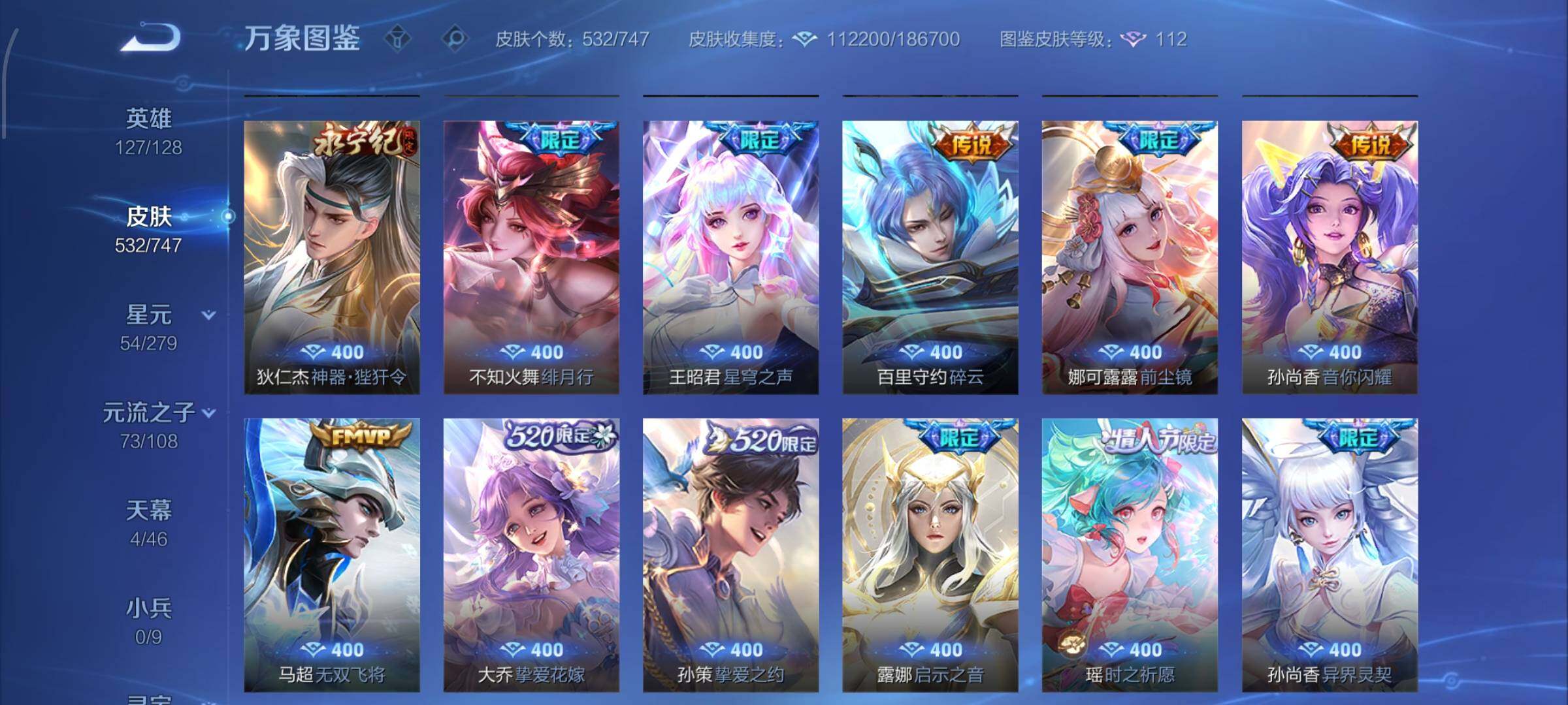 【精品女号·无双v10·10w流光积分·43段游走·40段中路·6典藏·6无双·满珍品·珍品无双馥梦繁花·全皮瑶·全皮大乔·全皮貂蝉·全皮西施·全皮火舞·全皮朵莉亚·雪境奇遇·最初的交响·繁花交响诗天幕·可二次】w8380-安卓q-127英雄-532皮肤-19王者印记-160铭文-贵族积分29w【无双贵族11】【6典藏·1珍品无双·6无双·9珍品·3星传说·75传说·4天幕·37按键·14