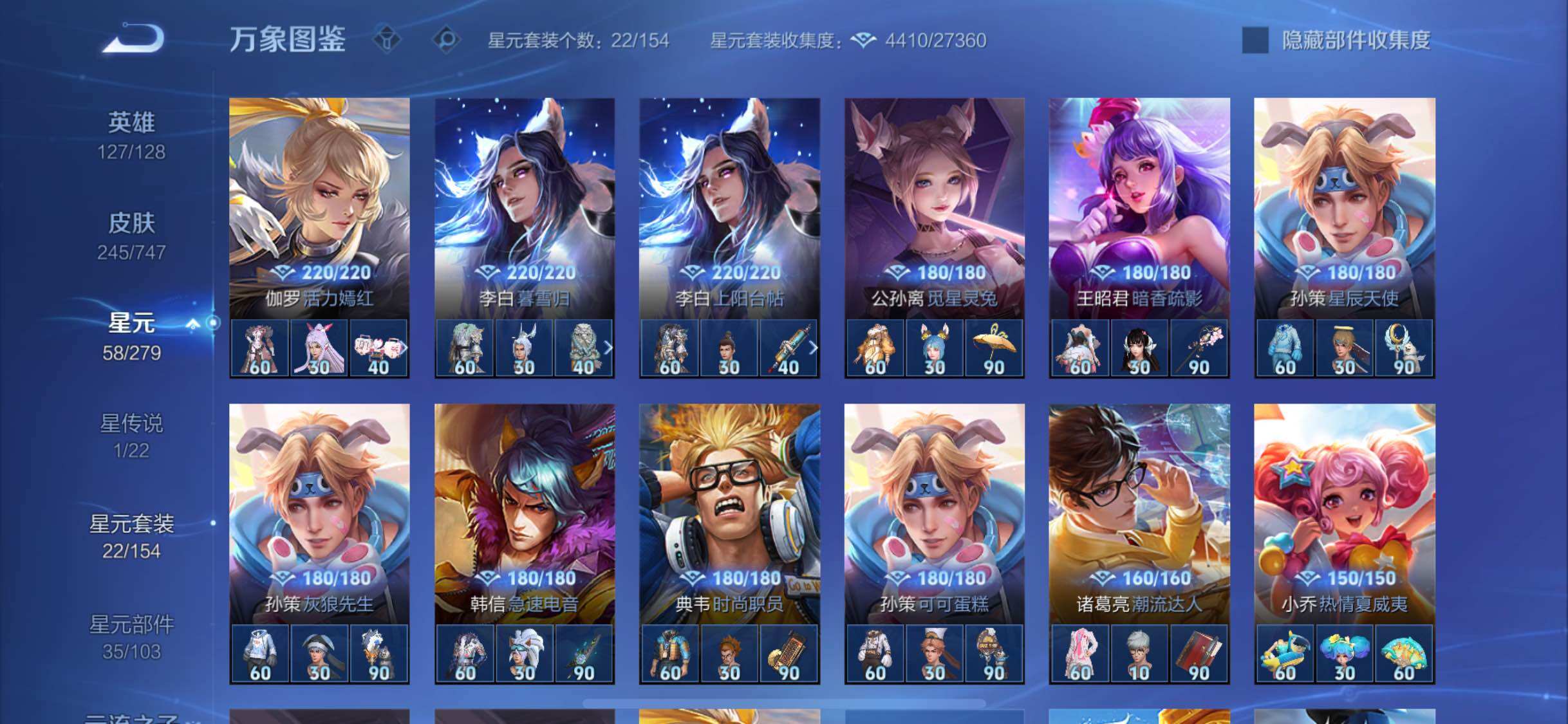 【高性价比·金标李白·碎月剑心·韩信群星魔术团·天机白泽·乘龙问璇玑·曜云鹰飞将·一念神魔·云霓雀翎·凤求凰·可二次】w8398-苹果q-127英雄-245皮肤-7王者印记-300铭文-贵族积分6w【贵族8】【·3无双·1星传说·12传说·7按键·293幸运值】【因赛季更新游戏段付以上号为准!】 【英雄全皮】:孙权全皮 【无双皮肤】:李白碎月剑心,韩信群星魔术团,诸葛亮天机白泽 【星元皮肤