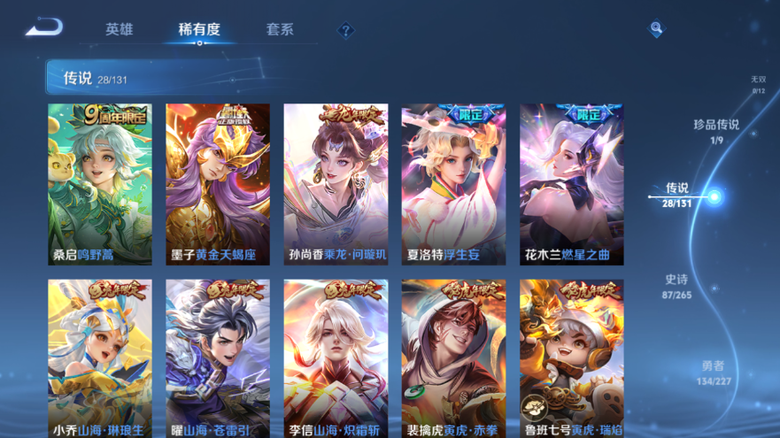 【王者荣耀】【lywz23455】珍品无双0 典藏2 无双0 珍品传说1 传说28 史诗87 英雄128 皮肤328 贵族4级 荣耀典藏:武则天|鸣剑·曳影|倪克斯神谕__珍品传说:怪盗基德__传说皮肤:鸣野蒿|绛天战甲|炽阳神光|启明星使|地狱之眼|地狱火|海洋之心|仲夏夜之梦|云霓雀翎|狄仁杰-超时空战士|黄金射手座|一念神魔|云鹰飞将|游龙清影|淬星耀世|浮生妄|孙尚香-末日机甲|黄金天蝎座|零号·赤焰|祈雪灵祝|燃星之曲|天魔缭乱|寅虎·瑞焰|乘龙·问璇玑|山海·苍雷引|山海·炽霜斩|山海·琳琅生|寅虎·赤拳__稀有限定:至尊宝|飞衡|蜜橘之夏|烈魂|青春决赛季|孙行者|猪悟能|李小龙|山海·碧波行|山海·玄木吟|拒霜思|暗影游猎|冰锋战神|大漠名商|繁星吟游|高山流水|古海寻踪|海滩派对|海盐诗旅|航海奇遇记|胡桃异想国|幻夜卜梦|皇家上将|混沌棋|火炮绅士|江河有灵|金庭之子|凯尔特女王|狂想玩偶喵|黎明之约|炼金王|迷踪丽影|魔法小厨娘|魔术师|匿光追影者|女武神|千军破阵|驱傩正仪|沙漠行僧|朔风刀|饕餮|醍醐杖|天狼绘梦者|天穹祈灯|万华元夜|妄想食味|纤云弄巧|星界游侠|星空之诺|驯魔猎人|演武夺筹|妖精王|疑决卦|阴阳师|银河之约|游园惊梦|御銮|原初追逐者|云间偶戏|真爱魔法|逐梦之音|暗夜猫娘|暗隐猎兽者|暗渊魔法|缤纷独角兽|冰冠公主|冰雪圆舞曲|苍穹之光|乘风破浪|德古拉伯爵|地狱岩魂|功夫厨神|鬼剑武藏|黄金分割率|箭羽风息|节奏热浪|金属风暴|龙骑士|魅力维加斯|魅语|梦奇-顽趣|女仆咖啡|偶像歌手|圣诞狂欢|水果甜心|水晶猎龙者|孙策-猫狗日记|天才门将|天秀·启明|晚萤|赵云-未来纪元|星夜王子|摇滚巨星|鹰眼统帅|永昼|幽灵船长|逐浪之夏|紫霞仙子|百里守约-百相守梦|老夫子-百相守梦|陌上桑|谪仙醉月|星界特工|噬灭天穹|敬我三分|破空之剑|天穹之誓|浮光幕影|安琪拉-时之奇旅|曙光守护者|心灵战警|千年之狐|特工魅影|心灵骇客|谧流熔炉|御霄|狰|烛龙|原初探秘者|重明|云中旅人|单词大作战|孙悟空-神迹守卫|达摩-星际陆战队|暖冬·兔眠|夺宝奇兵|圣弓游侠|墨子-神迹守卫|华尔街大亨|逆浪荇歌|荣光之誓|鹤鸣心笺__优质皮肤:尼罗河女神|一千零一夜|创世神祝|年年有余|埃及法老|孤猎|木偶奇遇记|熊喵少女|午夜歌剧院|露花倒影|未来旅行|激情绿茵|海之征途|天启骑士|碧珀绯影|秩序猎龙将|锦衣卫|冰刃幻境|森|超能战警|英喵野望|维京掠夺者|海军大将|绯红之刃|踏雪寻梅|启蛰|战争骑士|伊势巫女|画中游|生化警戒|威尼斯狂欢|第七人偶|潮流仙人|芝加哥教父|街头旋风|绝影神呛|地府判官|荷鲁斯之眼|幸存者|赤焰之缨|福禄兄弟|隐刃|前尘|特种部队|三太子|精灵王|剑舞者|范海辛|星航指挥官|龙域领主|爱与和平|占星师|花间舞|魇语军师|东海龙王|蔷薇王座|灼热之刃|精准探案法|帝国元帅|战争女神|霓裳曲|加勒比小姐|阿摩司公爵|异域舞娘|精灵公主|修竹墨客|万圣前夜|怪诞之夜|动物派对|长夏之忆|异域游侠|暗都幽影|功夫炙烤|潮玩探月行|瓷语鉴心|秘密基地|次元突破|鲨炮海盗猫|丁香结|奇妙博物学|虹云星官|守护之力|坚韧之力|幻乐之宴|功夫老勺|命运角斗场|幻想奇妙夜|海滩丽影|阿尔法小队|兔女郎|死亡骑士|黄金武士|少女阿狸|天使之翼|玩偶对对碰|宫本武藏-未来纪元|东方不败|红桃皇后|忍·炎影|爱心护理|街头霸王|教廷特使|破局者|太极少年|乐园追猎者|牛运亨通|幻泉雾影|契约魔法|潮玩牛仔|紫罗兰之誓|铁甲之心|次元傲视|黑桃队长|进击墨子号|拳王|时尚教父|救世之瞳|白色死神|程咬金-星际陆战队|白执事|大发明家|哥特玫瑰|星梦巡礼|猪八戒-西部大镖客|缤纷绘卷|掌控之力|雾都夜雨|逐霄战戟|铁骨偃魂|纽约教父|龙腾万里|霸王丸|乱世虎臣|经纬探寻者|西施-归虚梦演|孙悟空-西部大镖客|鲁班大师-归虚梦演|龙舞盛年|汉昭烈帝|乓乓大师|五福同心|盾山-圆桌骑士|蒙犽-归虚梦演|万事如意|曜-归虚梦演|唤灵魔甲|太乙真人-圆桌骑士|沉稳之力|赤莲之焰|完美运算|化身博士|花好人间|春野之旅|潮玩骑士王|无尽旅途|万象初新|苍林狼骑|蔚蓝守将|劲辣红锅|特工战影|炽热元素使|无双福将__贵族等级:贵族4级__王者段位:传奇王者贵族8 328皮肤2典藏1珍品28传说11按键4星传说,鸣剑·曳影,倪克斯神谕, 怪盗基德,
