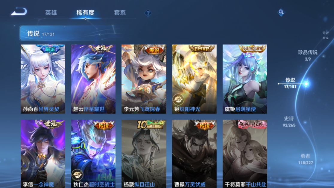 【王者荣耀】【lywz23958】珍品无双0 典藏1 无双0 珍品传说2 传说17 史诗92 英雄126 皮肤275 贵族8级 荣耀典藏:神鉴启示录__珍品传说:怪盗基德|器灵·落星盏__传说皮肤:鸣野蒿|无双飞将|挚爱花嫁|异界灵契|炽阳神光|启明星使|狄仁杰-超时空战士|一念神魔|飞鸢探春|淬星耀世|落雪白狼|怒海麟威|山海·苍雷引|映山客|幻光神呛|愿照·千秋盛|神树通天__稀有限定:奔雷神使|青龙志|虎魄|神威|青春决赛季|孙行者|傲雪梅呛|梁祝|山海·玄木吟|拒霜思|百解令|百木心呛|冰锋战神|嫦娥-如梦令|大漠名商|地狱燃心|电玩高手|高山流水|古海寻踪|海滩派对|海盐诗旅|华丽摇滚|幻夜卜梦|皇家上将|火炮绅士|剑破天穹|江河有灵|金庭之子|狂想玩偶喵|黎明之约|魔术师|奇幻香踪|千军破阵|擒涛扼浪|青焰无极|驱傩正仪|燃音魔法|荣光圣徽|沙漠行僧|探海日志|天穹祈灯|玩趣恶龙|万华元夜|妄想食味|无心|五谷丰年|午后时光|纤云弄巧|星界游侠|演武夺筹|夜都怪侠|阴阳师|吟游魔法|驭风魔法|真爱魔法|暗夜贵公子|暗隐猎兽者|缤纷独角兽|冰冠公主|冰雪圆舞曲|苍穹之光|乘风破浪|德古拉伯爵|地狱岩魂|伽罗-琥珀纪元|功夫厨神|鬼剑武藏|黄金分割率|箭羽风息|节奏热浪|金属风暴|吕布-末日机甲|魅力维加斯|魅语|梦奇-顽趣|女仆咖啡|奇遇舞章|热力回旋|圣诞狂欢|圣诞恋歌|水果甜心|水晶猎龙者|孙策-猫狗日记|滕王阁序|天才门将|天秀·启明|天秀·音浪|星夜王子|鹰眼统帅|永昼|幽灵船长|钟无艳-超时空战士|紫霞仙子|赵怀真-鹤归松栖|百里守约-百相守梦|老夫子-百相守梦|谪仙醉月|噬灭天穹|破空之剑|战舞者|蔡文姬-夏日便利店|虞姬-夏日便利店|天穹之誓|安琪拉-时之奇旅|心灵战警|无限星赏官|舞动绿茵|特工魅影|心灵骇客|飞车小橘子|茶境仙|星界战将|谧流熔炉|器灵·浮梦炉|化蝶舞|原初探秘者|云中旅人|玲珑珍味|单词大作战|孙悟空-神迹守卫|流音漫舞|访茗客|暖冬·兔眠|灵卜魔法|苍威无极|圣弓游侠|落雪兰心|灵蛊蚀心|龙之律动|布丁狗之约|虚灵犬护|荣光之誓|鹤鸣心笺__优质皮肤:尼罗河女神|创世神祝|孤猎|熊喵少女|午夜歌剧院|露花倒影|激情绿茵|碧珀绯影|秩序猎龙将|冰刃幻境|超能战警|英喵野望|维京掠夺者|海军大将|踏雪寻梅|启蛰|生化警戒|芝加哥教父|绝影神呛|幸存者|赤焰之缨|福禄兄弟|隐刃|前尘|三太子|精灵王|龙域领主|爱与和平|魇语军师|极冰防御线|棒球奇才|东海龙王|灼热之刃|精准探案法|圣殿之光|战争女神|霓裳曲|加勒比小姐|阿摩司公爵|修竹墨客|暗都幽影|功夫炙烤|聚星闪耀|潮玩探月行|秘密基地|次元突破|鲨炮海盗猫|丁香结|虹云星官|守护之力|坚韧之力|幻乐之宴|功夫老勺|命运角斗场|幻想奇妙夜|海滩丽影|兔女郎|死亡骑士|黄金武士|少女阿狸|天使之翼|宫本武藏-未来纪元|忍·炎影|爱心护理|街头霸王|时空谍影|决胜大满贯|破局者|零食大作战|西部游侠|太极少年|幻泉雾影|危途狂花|潮玩牛仔|紫罗兰之誓|铁甲之心|次元傲视|制霸全明星|救世之瞳|白色死神|大发明家|哥特玫瑰|魅影绮裳|西施-雪境奇遇|星梦巡礼|灵卦秘语|景韶洛都|缤纷绘卷|雾都夜雨|铁骨偃魂|纽约教父|龙腾万里|敏锐之力|西施-归虚梦演|孙悟空-西部大镖客|牛魔-西部大镖客|鲁班大师-归虚梦演|龙舞盛年|乓乓大师|盾山-圆桌骑士|万事如意|沉稳之力|完美运算|化身博士|花好人间|熔金海岸|潮玩骑兵|苍林狼骑|蔚蓝守将|劲辣红锅|特工战影|炽热元素使|妄想特派|灵野札记|玫蓝誓约|死霸装|无双福将|戏梦巡演|极光幻客__贵族等级:贵族8级__王者段位:非凡王者神鉴启示录,器灵·落星盏,怪盗基德,幻光神呛,愿照·千秋盛,映山客,落雪白狼,炽阳神光,怒海麟威,挚爱花嫁等热门限定皮肤