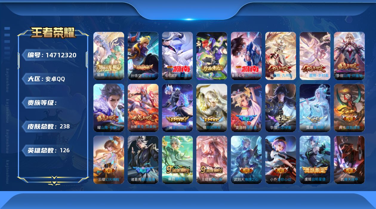 [14712320]王者和平连体 可二次 1珍品无双 1典 3珍品21传 5粉8呛 金标万战貂蝉 馥梦繁花 全息碎影 时之奇旅 怪盗基德 江户川柯南 愿照九州拓 愿照岁时盈 幻光神呛 映山客 鸣野蒿 战鼓燎原 乘龙淬昊钩 逐花归海 霜月吟 鹤羽星尊 电玩雷克斯 百相守梦 浮生妄 山海苍雷引 山海炽霜斩 音你心动 绛天战甲 炽阳神光 启明星使 一念神魔 海洋之心 38按键 守护天翼 罗征 雪月幻音 音爆索尼克 海螺星光 满级m4五爪金龙 满级aks74u星穹咏叹调 满级scarl锦绣绵绵 满级aug暖羊咩咩 满级 groza镜光银凌 满级p45量子极限 满级mk14甜梦熊击 98k巳巳如意 圣域金龙飞行器