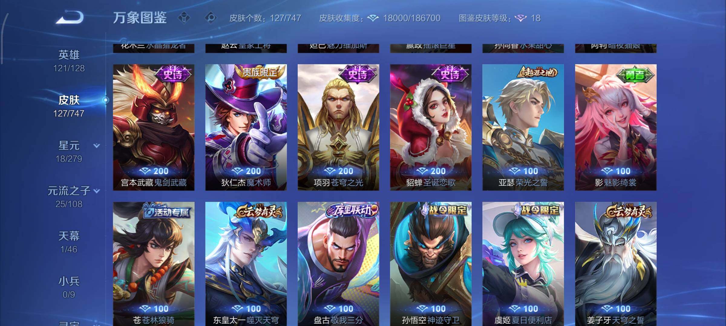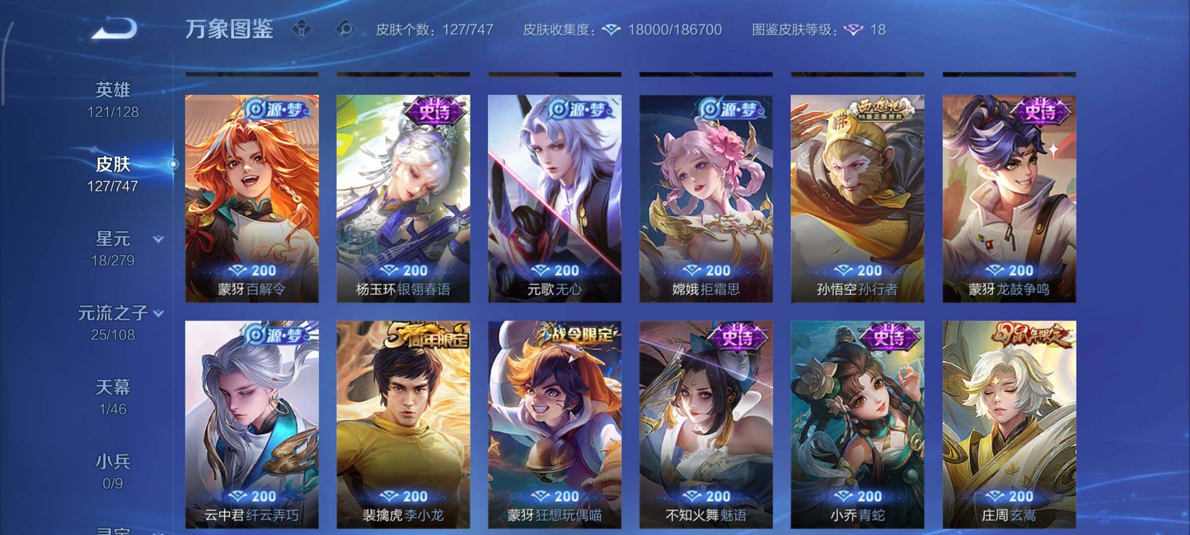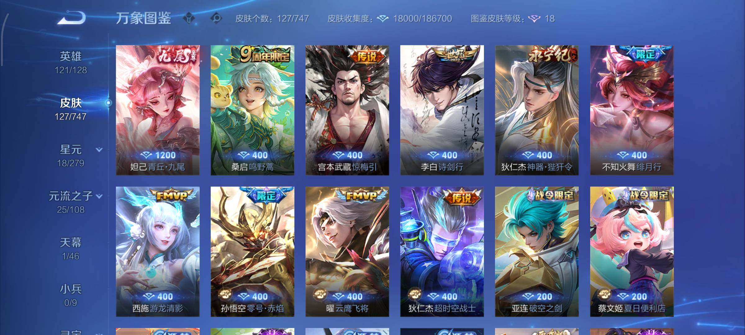 【高性价比·青丘九尾·零号雷霆·惊梅引·诗剑行·神器狴犴令·绯月行·游龙清影·零号赤焰·曜云鹰飞将·玄嵩·岱宗·可二次】w8472-安卓q-121英雄-127皮肤-2王者印记-130铭文-贵族积分2w【贵族7】【·1无双·1星传说·9传说·1天幕·1按键】【因赛季更新游戏段付以上号为准!】 【英雄全皮】:影全皮 【无双皮肤】:妲己青丘九尾 【星元皮肤】:孙悟空零号雷霆 【天幕】:共赏芳华天