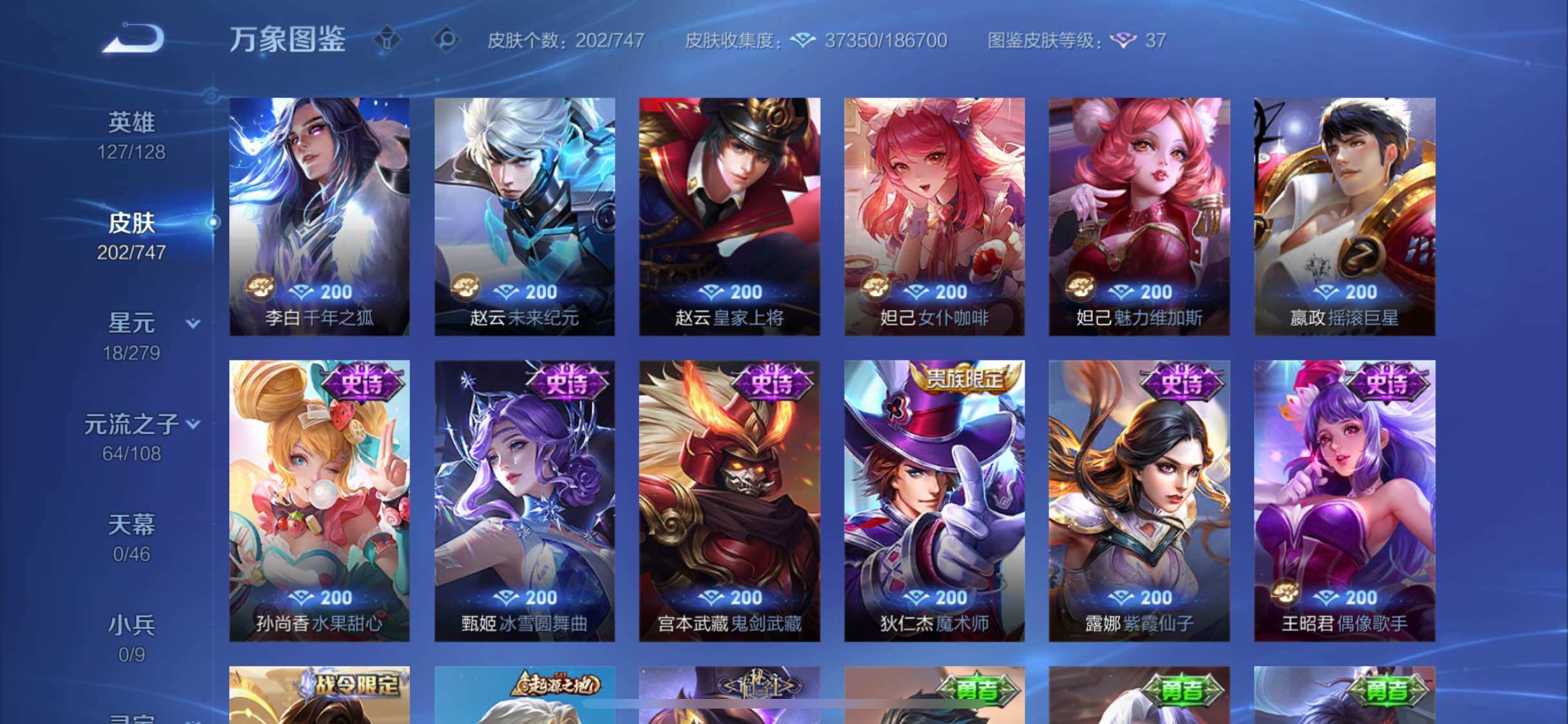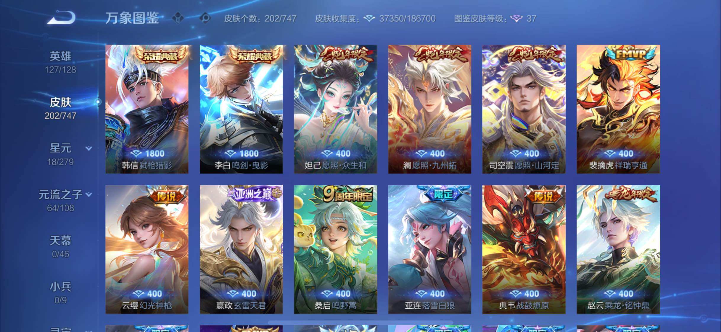 【店铺主推·鸣剑曳影·弑呛猎影·破晓神光·愿照山河定·愿照九州拓·愿照众生和·浮生妄·时雨天司·铠琥珀纪元·玄雷天君·落雪白狼·乘龙铭钟鼎·逐花归海·齐天大圣·诗剑行·霜月吟·至尊宝·可二次】w8464-苹果q-127英雄-202皮肤-8王者印记-60铭文-贵族积分10w【贵族9】【2典藏·3星传说·38传说·32按键】【因赛季更新游戏段付以上号为准!】 【英雄全皮】:空空儿全皮,影全皮