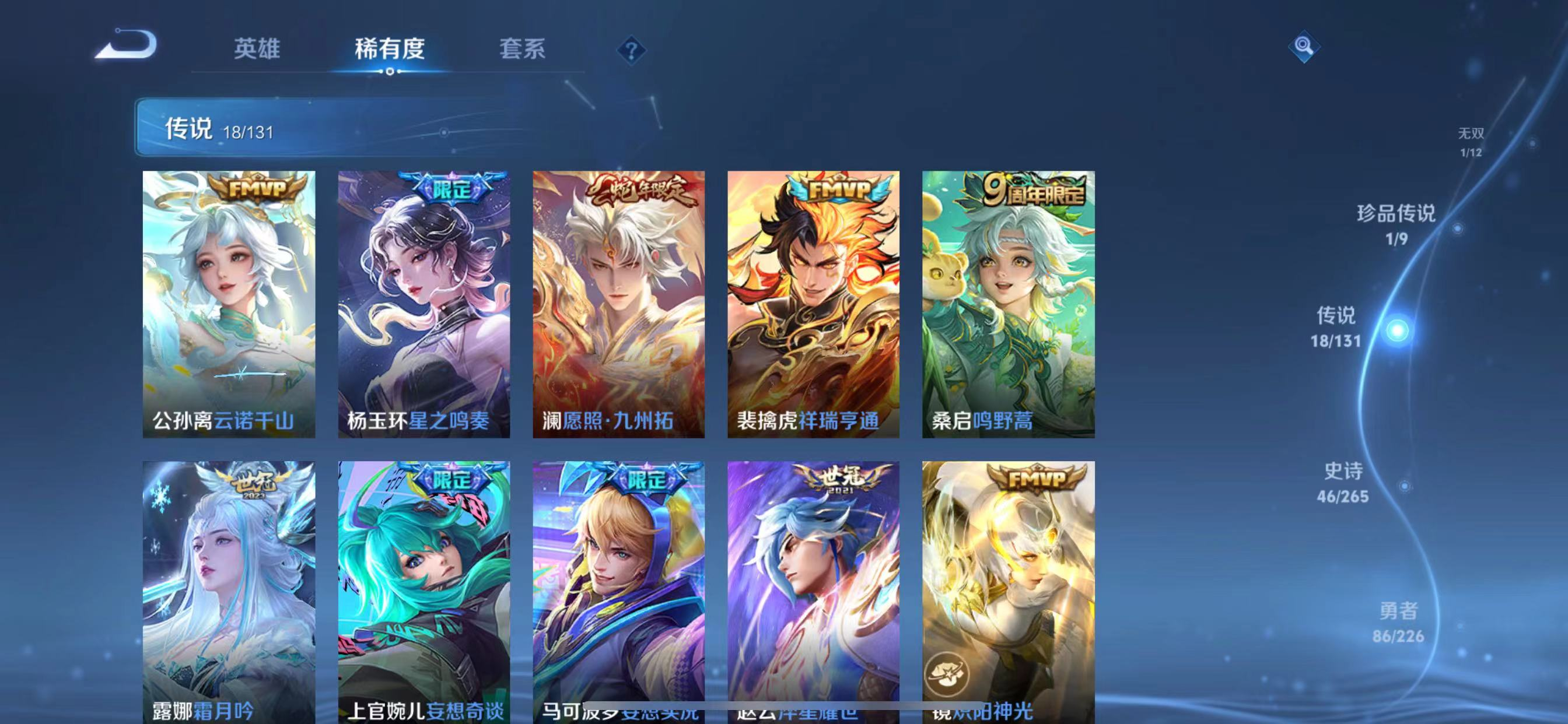 txwz21613 v7 181皮 1典藏 鸣剑·曳影 1无双 器灵·螭龙剑 1珍品传说 器灵·落星盏 18传说 黄金狮子座,久胜战神,祥瑞亨通,末日机甲,云诺千山,淬星耀世,地狱火,黄金白羊座,星之鸣奏,愿照·九州拓,妄想奇谈,云霓雀翎,霜月吟,妄想实况,鸣野蒿,炽阳神光,云鹰飞将,一念神魔 46史诗 巫礼祀神,万灵启世,幽灵船长,原初追逐者,百相守梦,优雅恋人,狂想玩偶喵,鬼剑武藏,鸭鸭历险记,银翎春语,晚萤,水果甜心,雪豹·霜爪,龙之律动,星夜王子,茶境仙,紫霞仙子,化蝶舞,偶像歌手,魅语,摇滚巨星,女仆咖啡,冰冠公主,暗夜贵公子,天才门将,绅士熊喵,鹰眼统帅,五谷丰年,玉兔公主,云间偶戏,李小龙,迷踪丽影,功夫厨神,曙光守护者,特工魅影,黄金分割率,缤纷独角兽,魔术师,电玩小子,圣诞恋歌,千年之狐,圣诞狂欢,末日机甲,皇家上将,蔷薇恋人,至尊宝