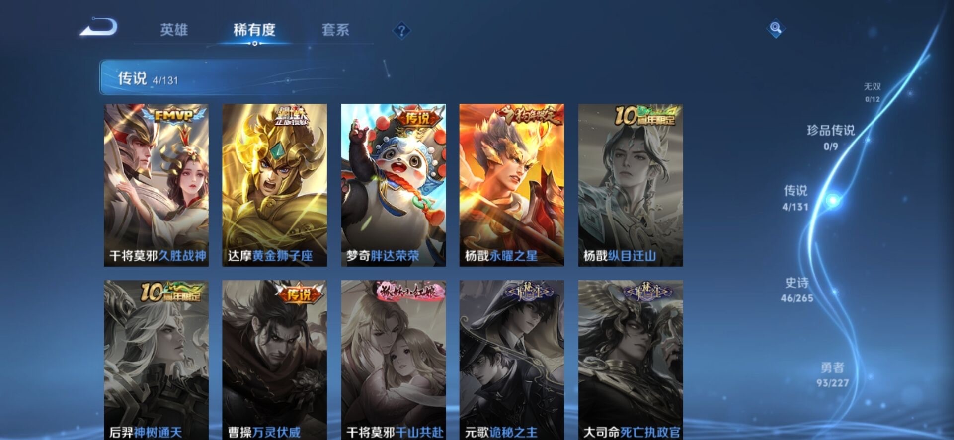 125英雄-180皮肤-[]v6 4传说 125英雄 180皮肤 可修改实名 【英雄全皮】:蒙恬全皮 【稀有英雄】:大司命韩信韩跳跳夏洛特夏师傅艾琳橘右京橘子娜可露露鸟人不知火舞赵云金蝉唐僧戈娅 【传说皮】:黄金狮子座久胜战神胖达荣荣 【珍宝阁皮】:妄想食味蔷薇