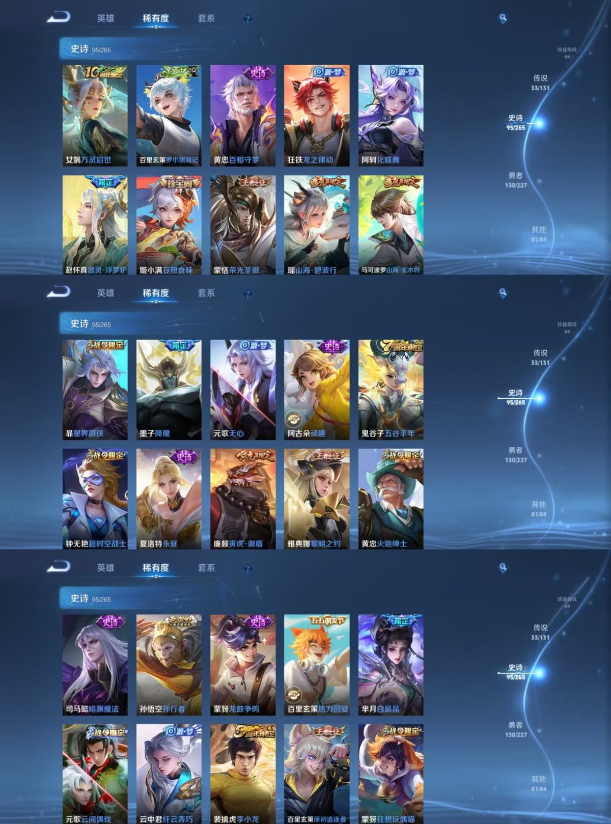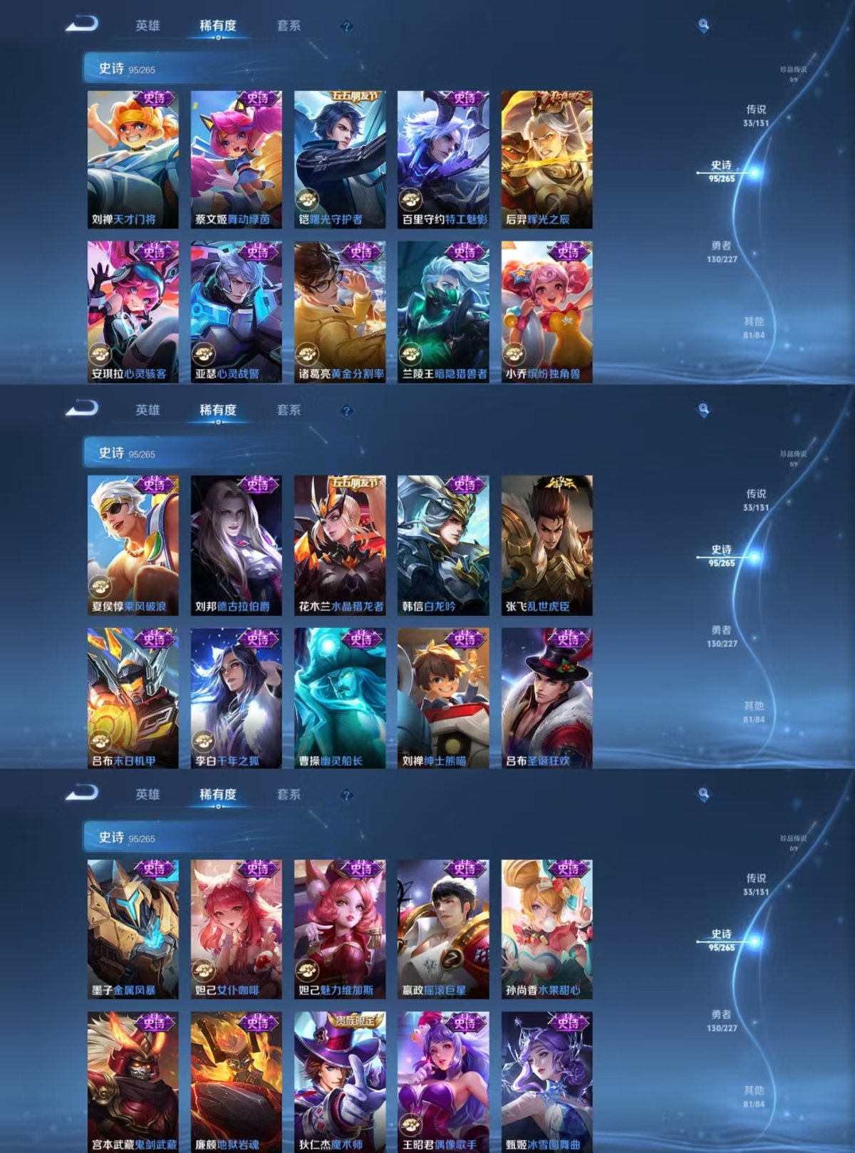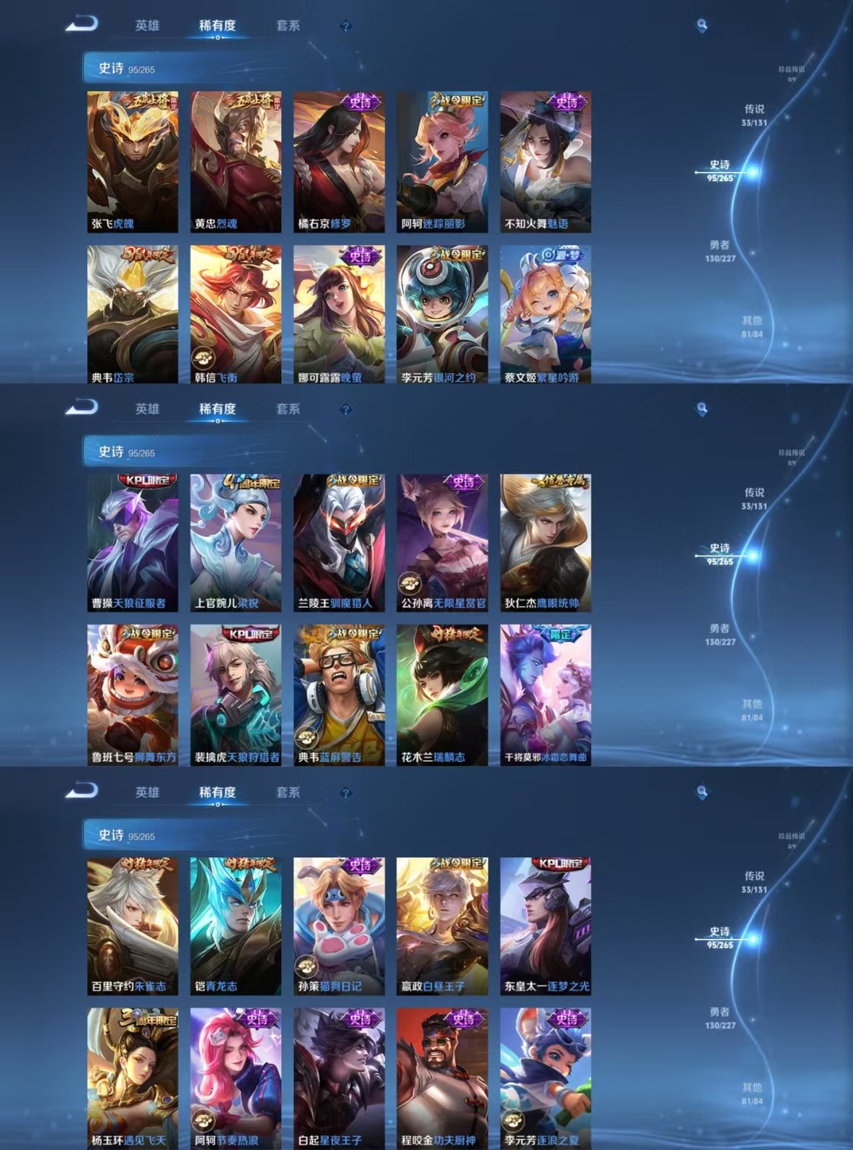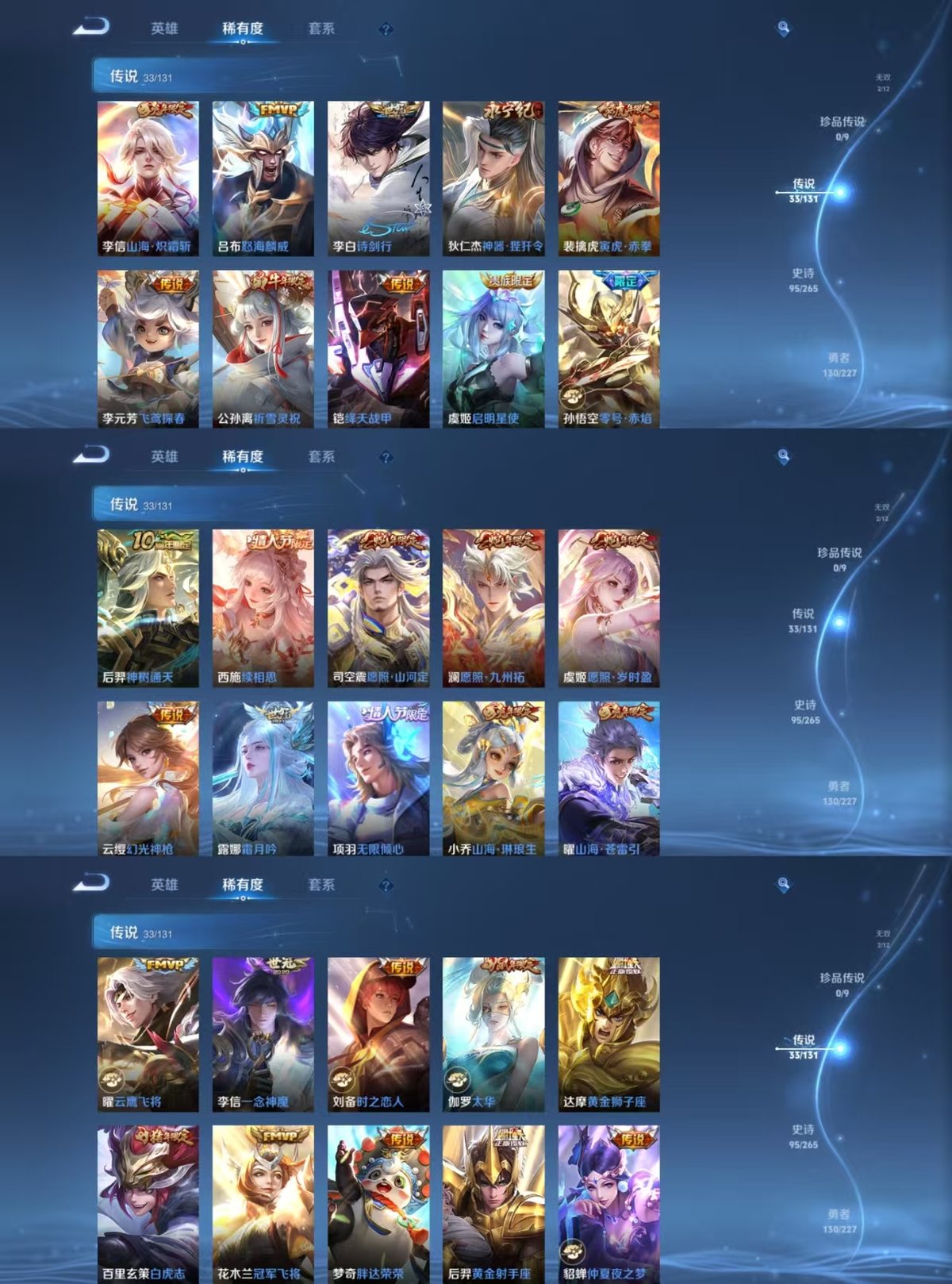 _2316724-实名:可修改贵族等级:v9英雄数:126皮肤数:343荣耀水晶:大秦宣太后鸣剑·曳影无双皮:小乔时之魔女器灵·螭龙剑传说皮:黄金狮子座黄金射手座冠军飞将云鹰飞将绛天战甲一念神魔末日机甲-孙尚香仲夏夜之梦零号·赤焰地狱之眼飞鸢探春胖达荣荣时之恋人-刘备超时空战士-狄仁杰神器·狴犴令山海·炽霜斩山海·琳琅生山海·苍雷引霜月吟幻光神呛续相思神树通天限定皮:遇见飞天李小龙祈雪灵祝梁祝烈魂辉光之辰白晶晶岱宗虎魄飞衡太华天狼征服者天狼狩猎者冰霜恋舞曲逐梦之光寅虎·御盾白虎志青龙志瑞麟志朱雀志孙行者寅虎·赤拳五谷丰年诗剑行降魔怒海麟威山海·玄木吟山海·碧波行无限倾心-项羽愿照·山河定愿照·岁时盈愿照·九州拓