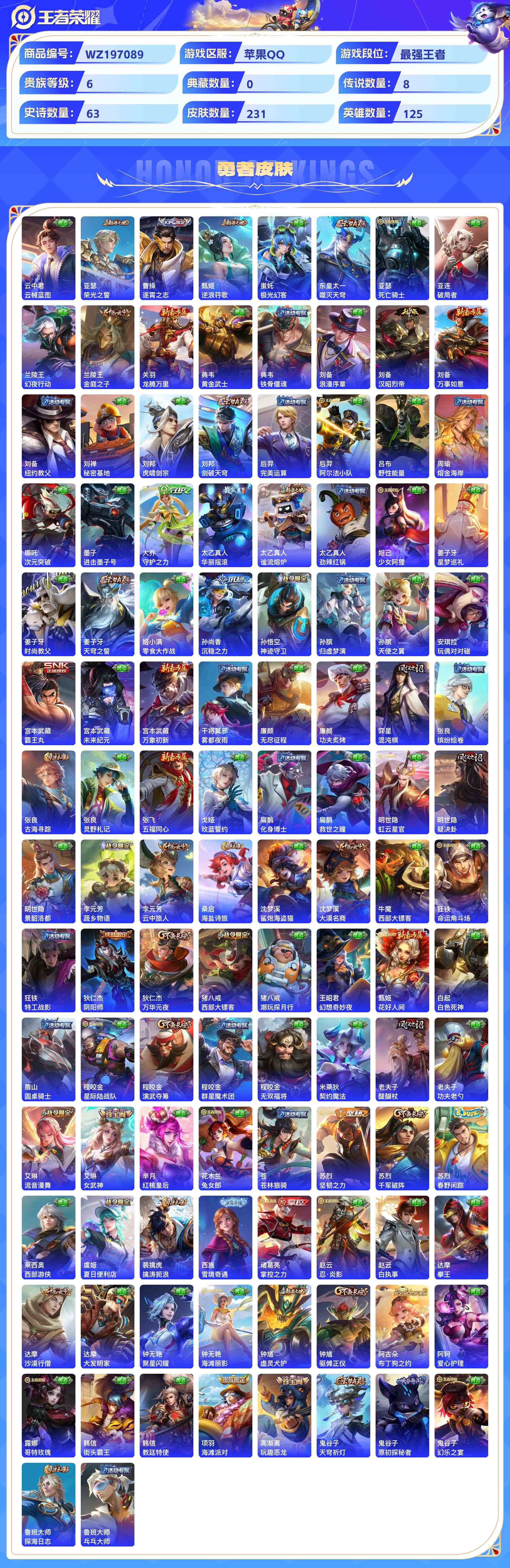 wz197089|极品金标万战号苹果qq 贵族6级4小国标(狄仁杰 蒙犽 张良 橘右京)4金标(廉颇 刘婵 高渐离 李元芳)3万战(狄仁杰 蒙犽 张良) 发育路47段231皮 8传说(地狱之眼云鹰飞将鸣野蒿枫霜尽超时空战士神器·狴犴令云霓雀翎时之奇旅) 63史诗(涂山容容破空之剑箭羽风息无心)2星传说3个性按键