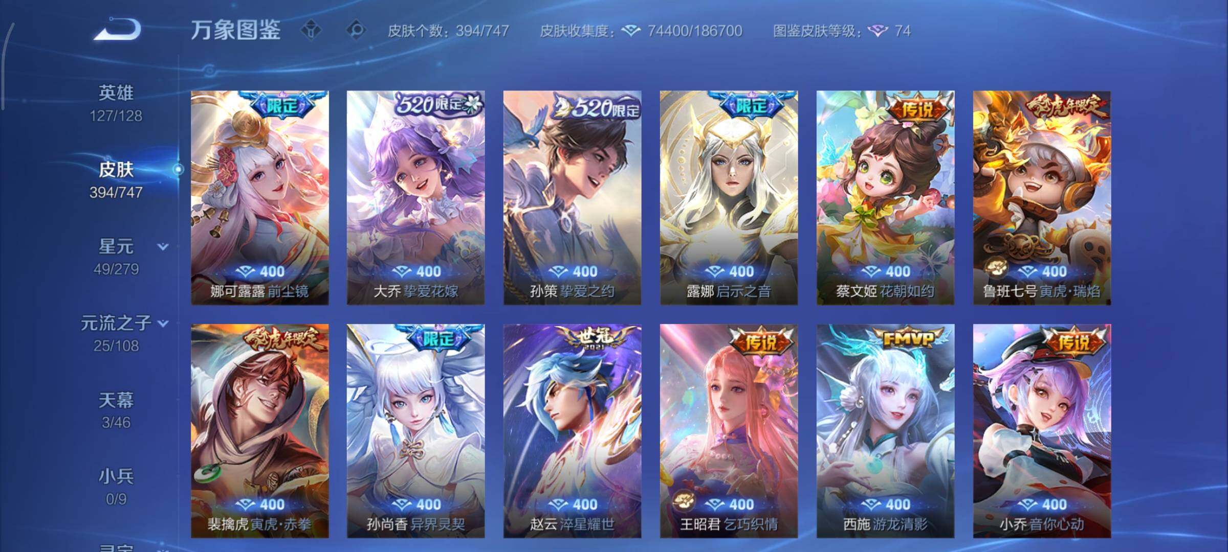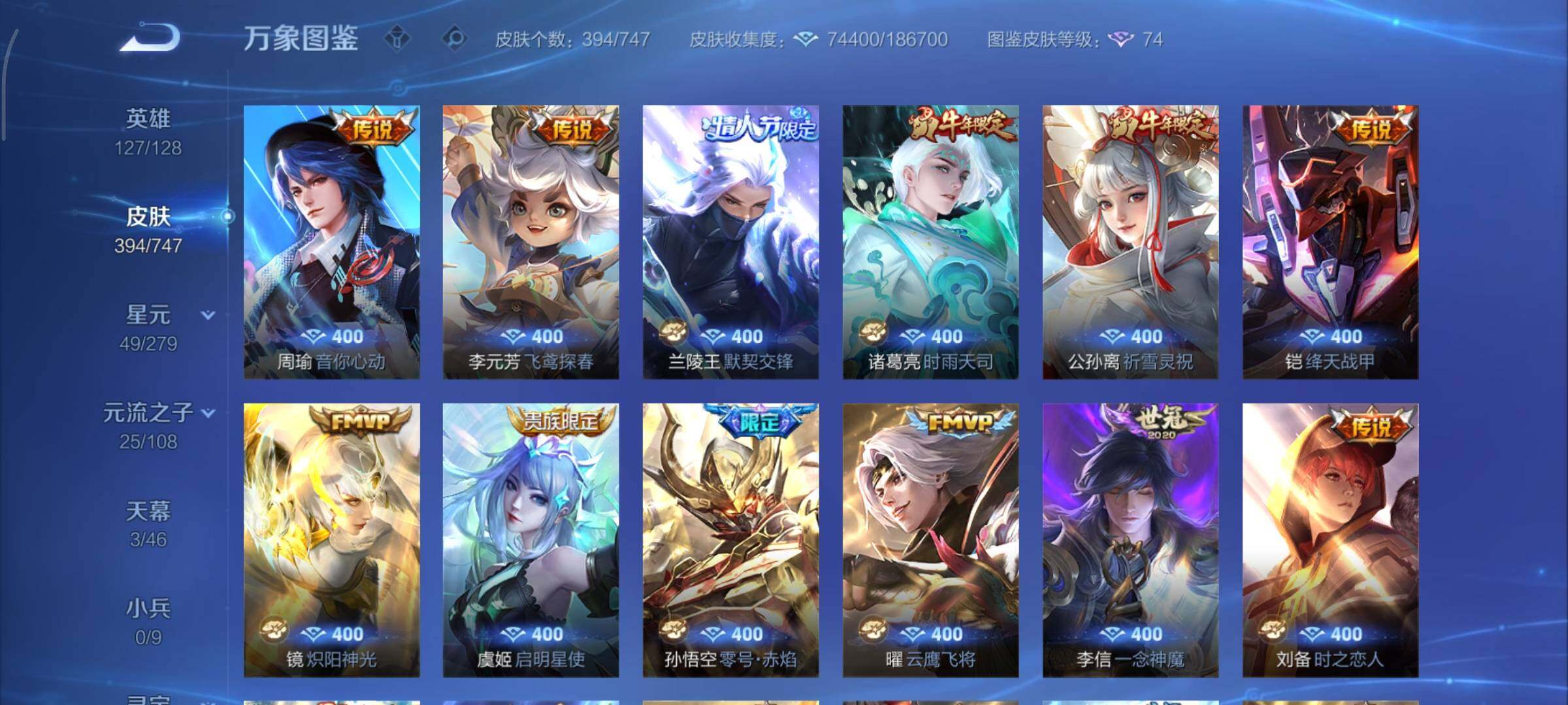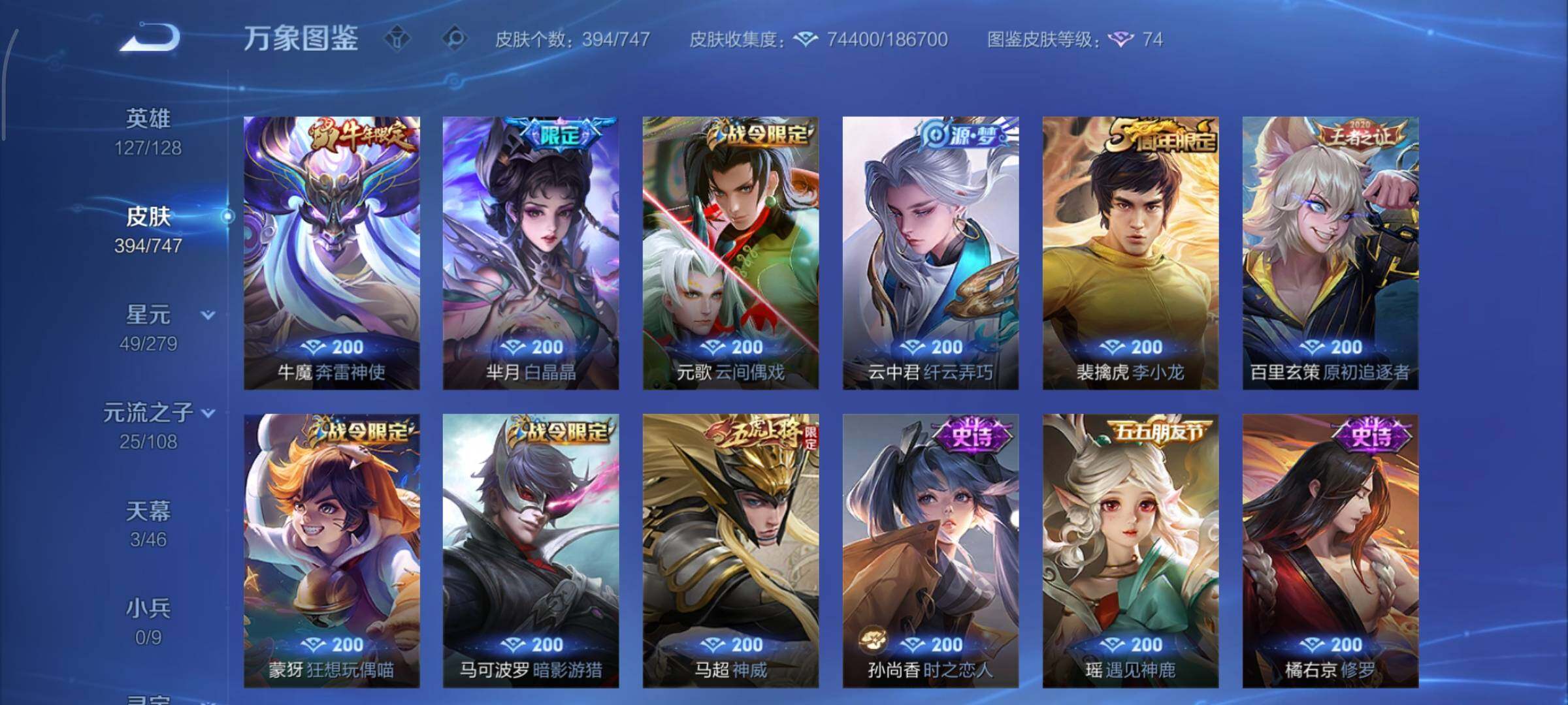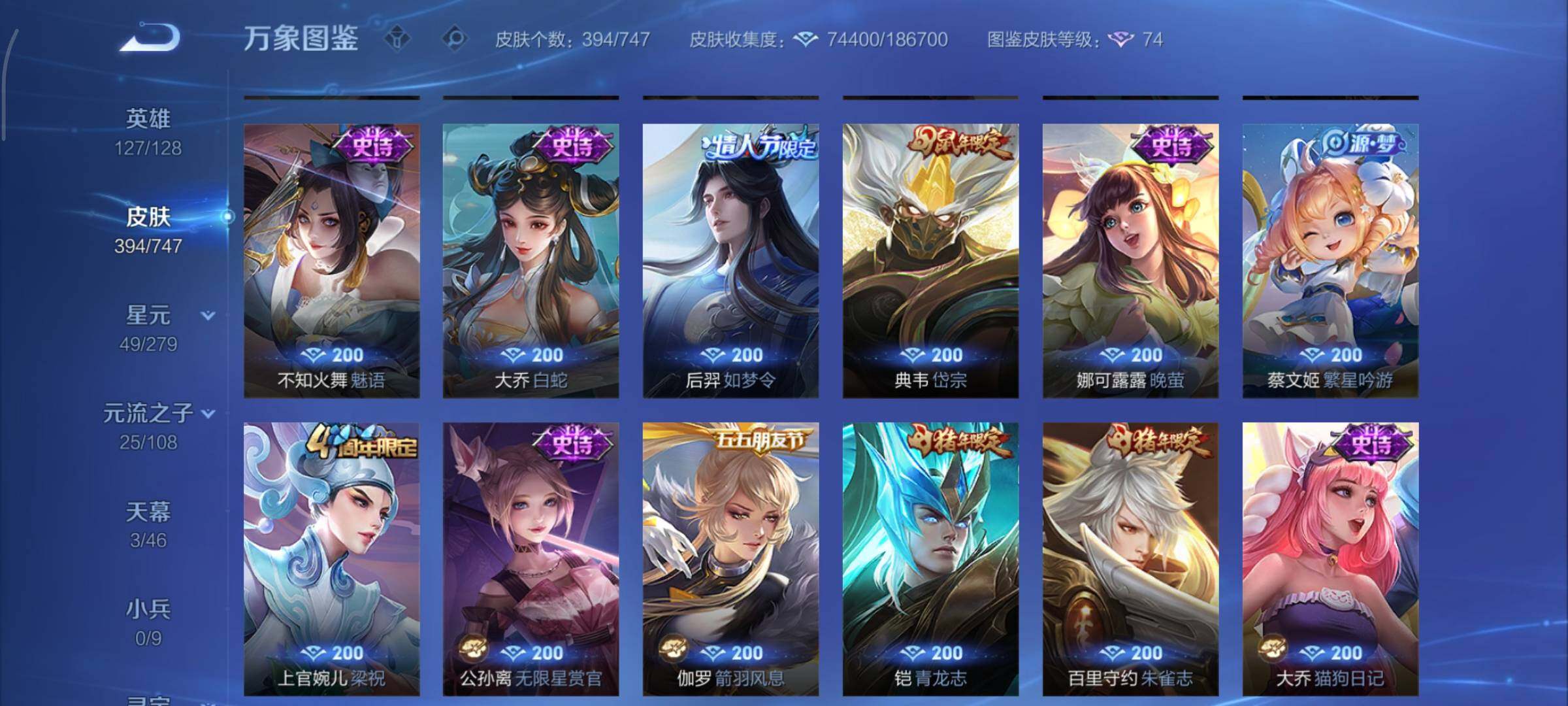 2317640-可换绑【v10精品号 金标兰陵王 10典藏含武则天英雄 多传说限定质量号】 10按键,5星传说,2天幕,309戳戳,16王者印记,满级铭文,可二次6858,安卓q-v10-394皮肤-9典藏皮肤-1典藏英雄-42传说-113史诗【英雄全皮】:孙权全皮,娜可露露全皮,蒙恬全皮,影全皮【荣耀典藏】:武则天英雄,孙悟空全息碎影,武则天倪克斯神谕,夏侯惇无限飓风号,小乔天鹅之梦,
