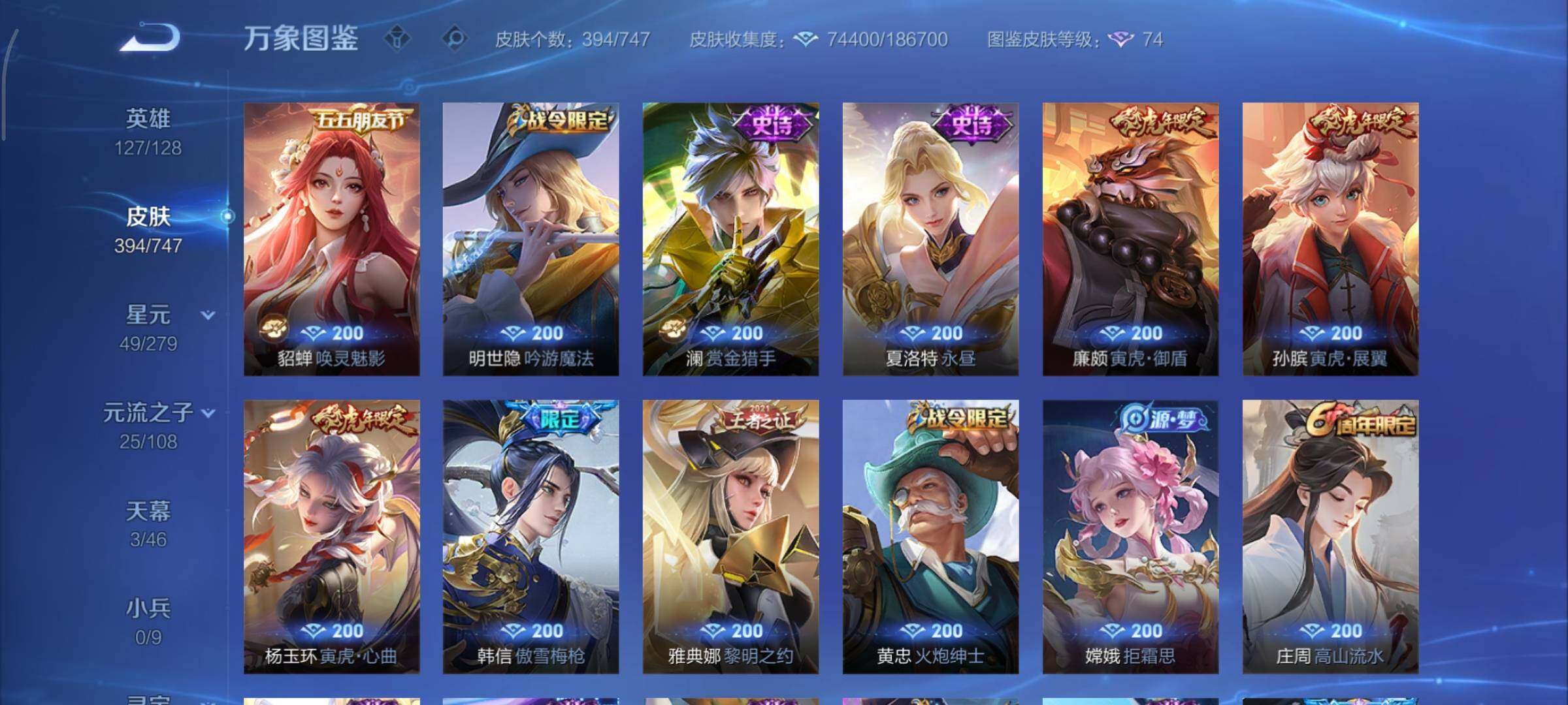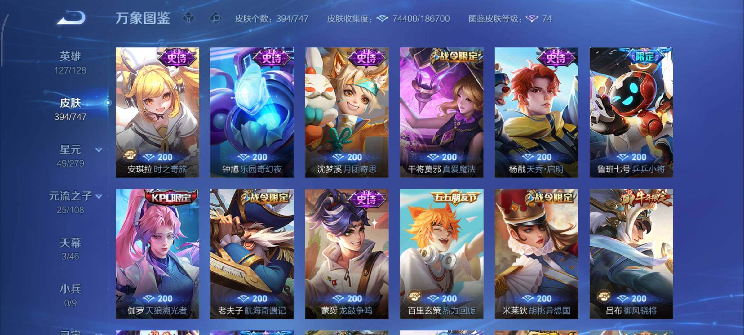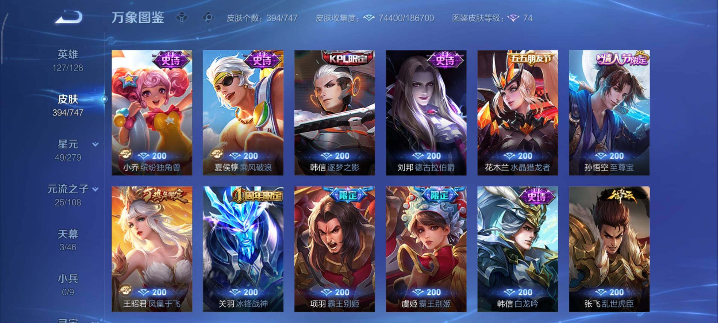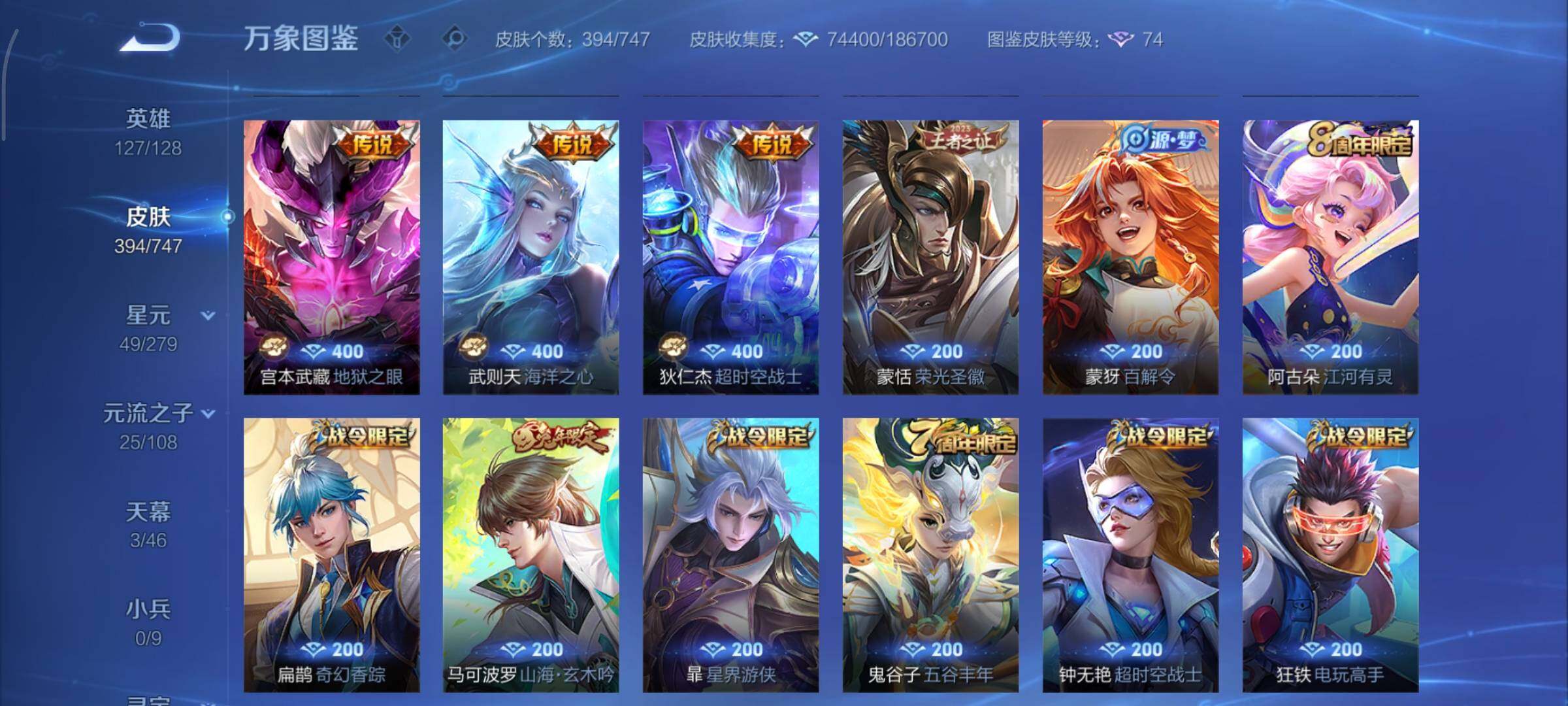 2317640-可换绑【v10精品号 金标兰陵王 10典藏含武则天英雄 多传说限定质量号】 10按键,5星传说,2天幕,309戳戳,16王者印记,满级铭文,可二次6858,安卓q-v10-394皮肤-9典藏皮肤-1典藏英雄-42传说-113史诗【英雄全皮】:孙权全皮,娜可露露全皮,蒙恬全皮,影全皮【荣耀典藏】:武则天英雄,孙悟空全息碎影,武则天倪克斯神谕,夏侯惇无限飓风号,小乔天鹅之梦,