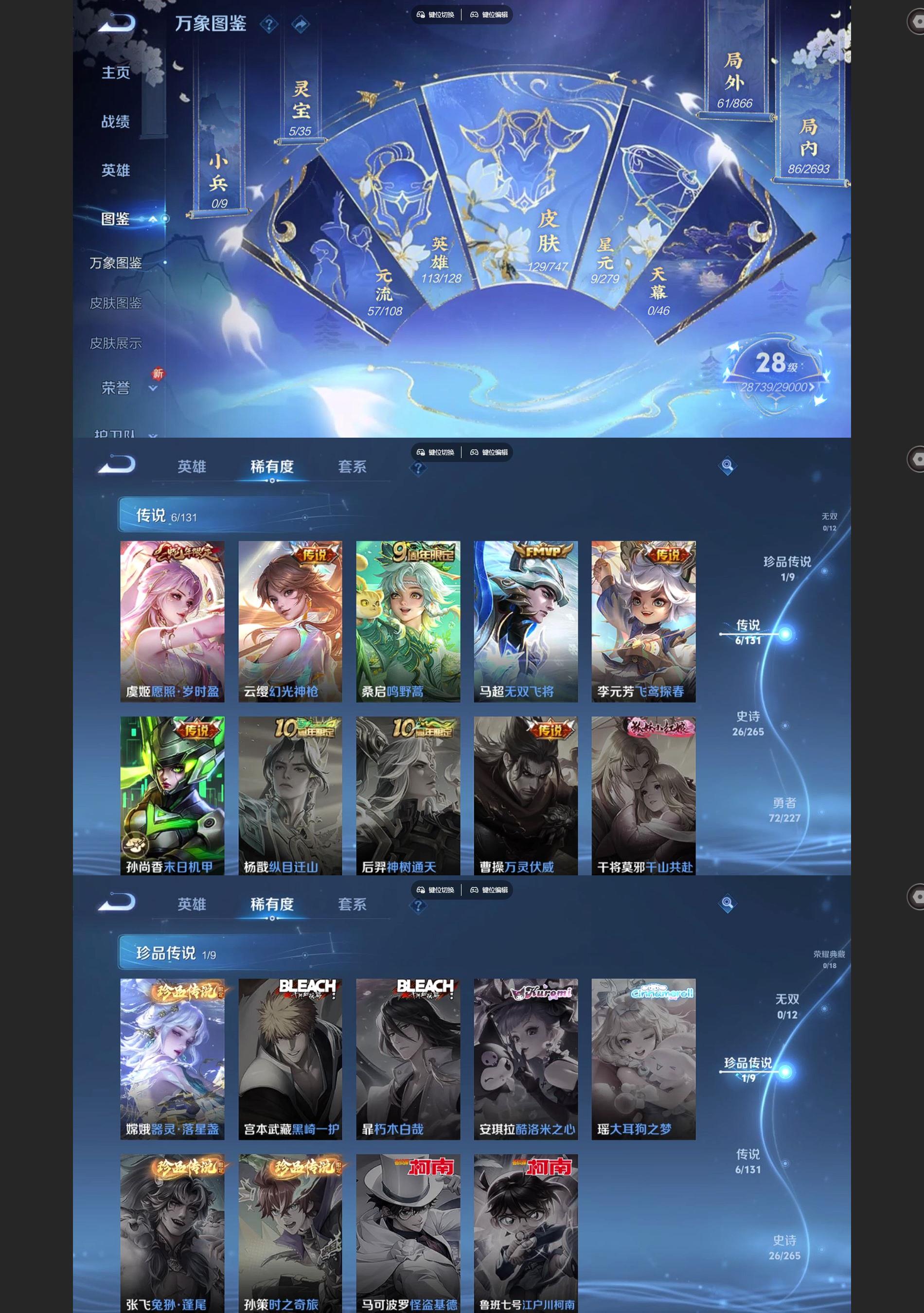 129皮肤1珍品传说6传说1星元26史诗32限定-1502紫星币 【全皮英雄】 影全皮 【珍品传说】 器灵落星盏 【星元】 未来机甲 【传说】 幻光神呛 愿照岁时盈 鸣野蒿 无双飞将 飞鸢探春 末日机甲女 【热门】白晶晶 冰冠公主 暗夜猫娘 织梦人 赞萌露比 战舞者 水晶猎龙者 猫狗日记男 猫狗日记女 金属风暴 特工魅影 蔷薇恋人 心灵战警 千年之狐 节奏热浪 街头霸王 鬼剑武藏 冰雪圆