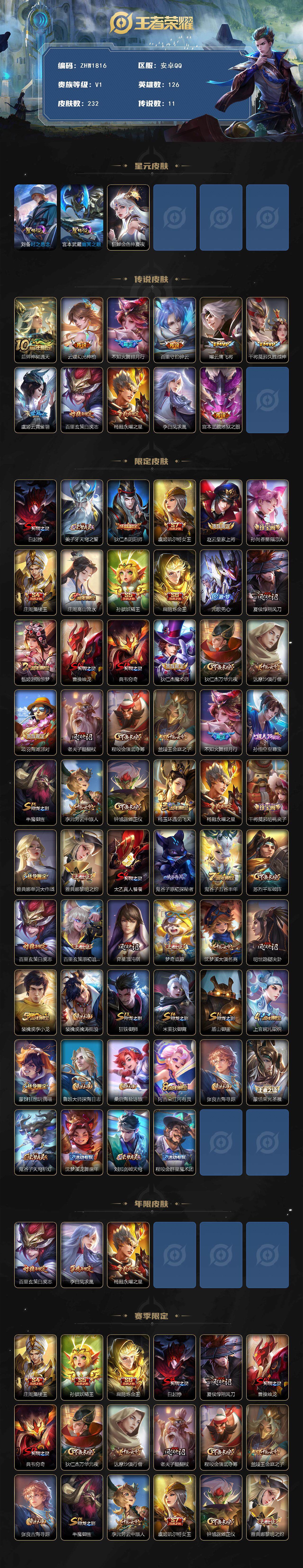 可二次【店主推荐捡漏号!可直接换绑】发育路33段,安卓q-v1-最强王者段位-126英雄-232皮肤-3星传说-11传说-49史诗 【英雄全皮】:鬼谷子全皮 【传说皮肤】:后羿神树通天,云缨幻光神呛,不知火舞绯月行,百里守约碎云,曜云鹰飞将,干将莫邪久胜战神,虞姬云霓雀翎,百里玄策白虎志,杨戬永曜之星,李白凤求凰,宫本武藏地狱之眼 【限定皮肤】:白起狰,姜子牙天穹之誓,狄仁杰阴阳师,虞姬凯尔特女王,赵云皇家上将,孙尚香蔷薇恋人,庄周蜃楼王,庄周高山流水,孙膑妖精王,扁鹊炼金王,元歌无心,夏侯惇朔风刀,甄姬游园惊梦,曹操烛龙,典韦穷奇,狄仁杰魔术师,狄仁杰万华元夜,达摩沙漠行僧,项羽海滩派对,老夫子醍醐杖,程咬金演武夺筹,兰陵王金庭之子,不知火舞绯月行,孙悟空至尊宝,牛魔御旌,李元芳云中旅人,钟馗驱傩正仪,杨玉环遇见飞天,杨戬永曜之星,干将莫邪胡桃夹子,雅典娜单词大作战,雅典娜黎明之约,太乙真人饕餮,鬼谷子原初探秘者,鬼谷子五谷丰年,苏烈千军破阵,百里玄策白虎志,百里玄策原初追逐者,弈星混沌棋,梦奇顽趣,沈梦溪大漠名商,明世隐疑决卦,裴擒虎李小龙,裴擒虎擒涛扼浪,狂铁御狮,米莱狄御霄,盾山御銮,上官婉儿梁祝,蒙犽狂想玩偶喵,鲁班大师探海日志,桑启海盐诗旅,阿古朵江河有灵,张良古海寻踪,蒙恬荣光圣徽,鬼谷子天穹祈灯,沈梦溪龙舞盛年,刘邦剑破天穹,程咬金群星魔术团 【年限皮肤】:百里玄策白虎志,李白凤求凰,杨戬永曜之星 【赛季限定】:庄周蜃楼王,孙膑妖精王,扁鹊炼金王,白起狰,夏侯惇朔风刀,曹操烛龙,典韦穷奇,狄仁杰万华元夜,达摩沙漠行僧,老夫子醍醐杖,程咬金演武夺筹,兰陵王金庭之子,张良古海寻踪,牛魔御旌,李元芳云中旅人,虞姬凯尔特女王,钟馗驱傩正仪,雅典娜黎明之约,太乙真人饕餮,鬼谷子原初探秘者,苏烈千军破阵,百里玄策原初追逐者,弈星混沌棋,梦奇顽趣,沈梦溪大漠名商,明世隐疑决卦,裴擒虎擒涛扼浪,狂铁御狮,米莱狄御霄,盾山御銮,鲁班大师探海日志,桑启海盐诗旅,鬼谷子天穹祈灯,蒙恬荣光圣徽,刘邦剑破天穹,姜子牙天穹之誓 【战令限定】:雅典娜单词大作战,蒙犽狂想玩偶喵 【史诗皮肤】:阿轲暗夜猫娘,赵云皇家上将,赵云未来纪元,甄姬冰雪圆舞曲,王昭君偶像歌手,狄仁杰魔术师,宫本武藏鬼剑武藏,孙尚香蔷薇恋人,孙尚香水果甜心,嬴政摇滚巨星,妲己魅力维加斯,妲己女仆咖啡,墨子金属风暴,吕布圣诞狂欢,曹操幽灵船长,李白千年之狐,吕布末日机甲,张飞乱世虎臣,韩信白龙吟,孙悟空至尊宝,花木兰水晶猎龙者,夏侯惇乘风破浪,小乔缤纷独角兽,兰陵王暗隐猎兽者,甄姬游园惊梦,雅典娜冰冠公主,百里守约特工魅影,刘禅天才门将,李元芳逐浪之夏,白起星夜王子,杨玉环遇见飞天,狄仁杰鹰眼统帅,上官婉儿梁祝,橘右京修罗,蒙犽狂想玩偶喵,百里玄策原初追逐者,裴擒虎李小龙,庄周高山流水,雅典娜黎明之约,鬼谷子五谷丰年,元歌无心,梦奇顽趣,刘禅电玩爆裂旋风,阿古朵江河有灵,蒙恬荣光圣徽,牛魔星界战将,弈星万物之道,黄忠百相守梦,女娲万灵启世 【其他皮肤】:项羽海滩派对,韩信教廷特使,韩信街头霸王,露娜哥特玫瑰,达摩大发明家,赵云白执事,赵云忍炎影,芈月红桃皇后,程咬金星际陆战队,白起白色死神,武则天东方不败,扁鹊化身博士,宫本武藏未来纪元,安琪拉玩偶对对碰,孙膑天使之翼,姜子牙时尚教父,妲己少女阿狸,典韦黄金武士,亚瑟死亡骑士,达摩拳王,花木兰兔女郎,甄姬花好人间,刘备万事如意,宫本武藏万象初新,后羿阿尔法小队,狄仁杰阴阳师,庄周蜃楼王,刘备纽约教父,孙膑妖精王,刘备汉昭烈帝,扁鹊炼金王,关羽龙腾万里,虞姬凯尔特女王,白起狰,钟无艳海滩丽影,太乙真人饕餮,宫本武藏霸王丸,曹操烛龙,狂铁命运角斗场,老夫子功夫老勺,孙尚香沉稳之力,典韦穷奇,诸葛亮掌控之力,李白敏锐之力,鬼谷子幻乐之宴,狂铁御狮,安琪拉如懿,苏烈坚韧之力,大乔守护之力,米莱狄御霄,明世隐虹云星官,牛魔御旌,吕布野性能量,盾山御銮,孙膑归虚梦演,沈梦溪鲨炮海盗猫,姜子牙炽热元素使,夏侯惇朔风刀,弈星混沌棋,哪吒次元突破,明世隐疑决卦,盾山圆桌骑士,老夫子醍醐杖,狂铁特工战影,鬼谷子原初探秘者,雅典娜单词大作战,狄仁杰万华元夜,刘禅秘密基地,程咬金演武夺筹,张良缤纷绘卷,钟馗驱傩正仪,鲁班大师乓乓大师,苏烈千军破阵,干将莫邪胡桃夹子,达摩沙漠行僧,程咬金无双福将,兰陵王金庭之子,沈梦溪大漠名商,李元芳云中旅人,戈娅危途狂花,刘备潮玩造梦师,桑启海盐诗旅,海月幻泉雾影,猪八戒潮玩探月行,赵怀真太极少年,裴擒虎擒涛扼浪,莱西奥西部游侠,鲁班大师探海日志,张良古海寻踪,后羿完美运算,鬼谷子天穹祈灯,廉颇功夫炙烤,沈梦溪龙舞盛年,刘邦剑破天穹,程咬金群星魔术团,姜子牙天穹之誓,东皇太一噬灭天穹,干将莫邪雾都夜雨,苍苍林狼骑,太乙真人谧流熔炉,典韦铁骨偃魂,西施雪境奇遇,姜子牙星梦巡礼,钟馗虚灵犬护,白起死霸装,甄姬逆浪荇歌,庄周锦麟游梦,莱西奥踏浪烽翎,鬼谷子克喵,哪吒罗小黑战记,亚瑟荣光之誓,张良罗小黑战记,艾琳鹤鸣心笺,鲁班七号福禄兄弟,鲁班七号木偶奇遇记,高渐离金属狂潮,露娜绯红之刃,钟无艳生化警戒,貂蝉异域舞娘,老夫子潮流仙人,王昭君精灵公主,狄仁杰锦衣卫,曹操超能战警,小乔万圣前夜,孙悟空西部大镖客,周瑜海军大将,后羿精灵王,李白范海
