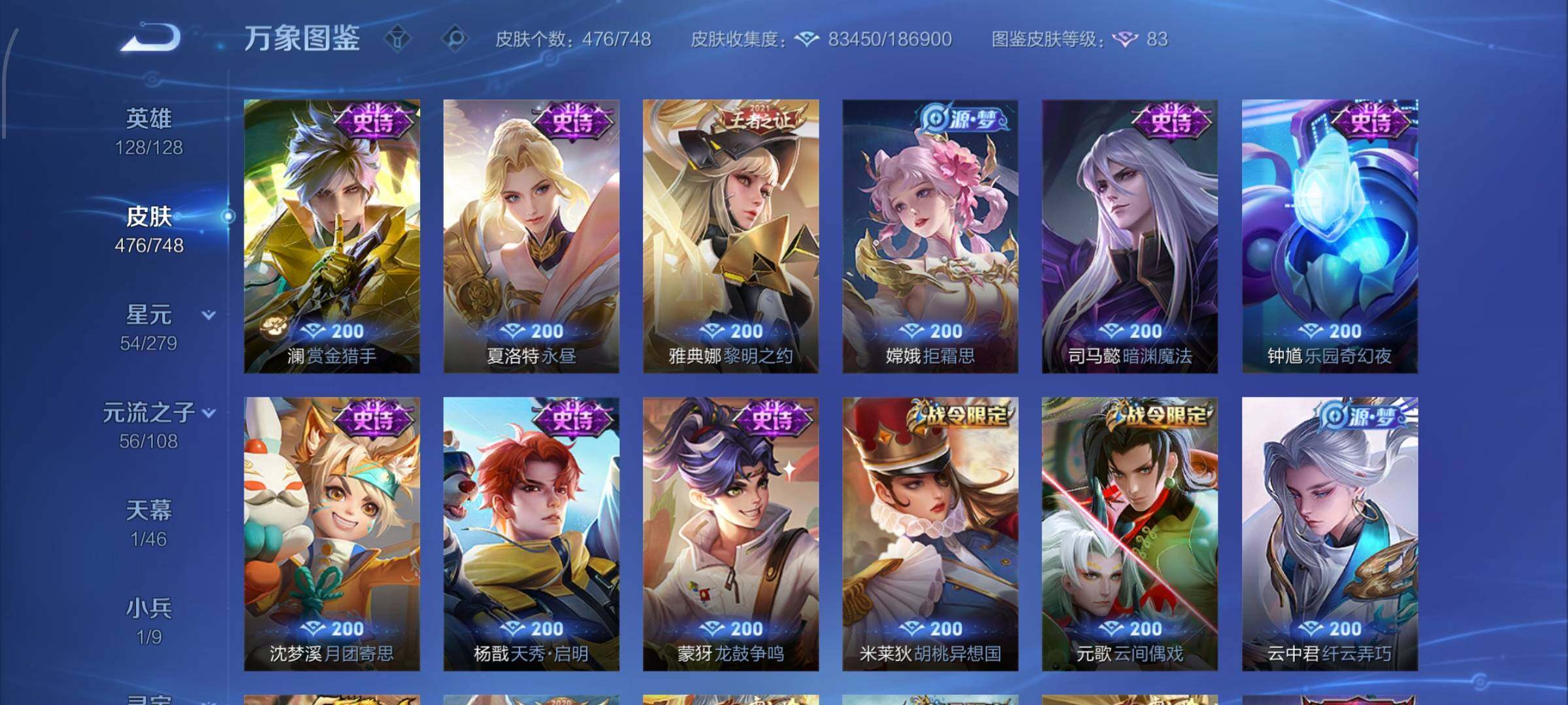 【店铺主推·无双v10·曜器灵螭龙剑·星域神启·大秦宣太后·倪克斯神谕·马可怪盗基德·孙策时之奇旅·小兵赞萌露比·财神纳福天幕·满蛇年限定·续相思·星之鸣奏·千劫归真·夜礼服假面·永恒水手月亮·可二次】w8561-安卓q-128英雄-476皮肤-16王者印记-300铭文-贵族积分28w【无双贵族11】【4典藏·1无双·2珍品·3星传说·58传说·1天幕·35按键·159个性戳戳】【因赛季更