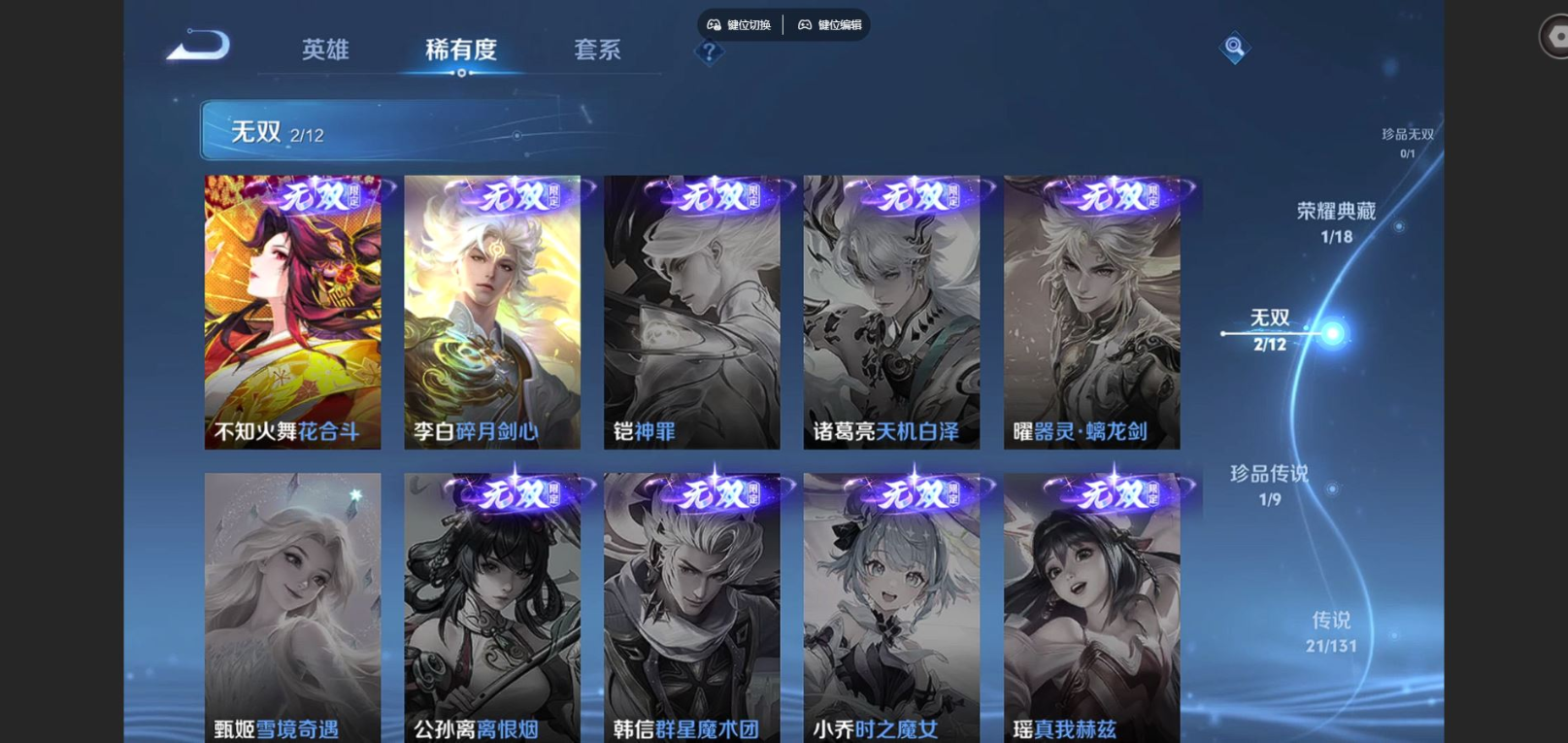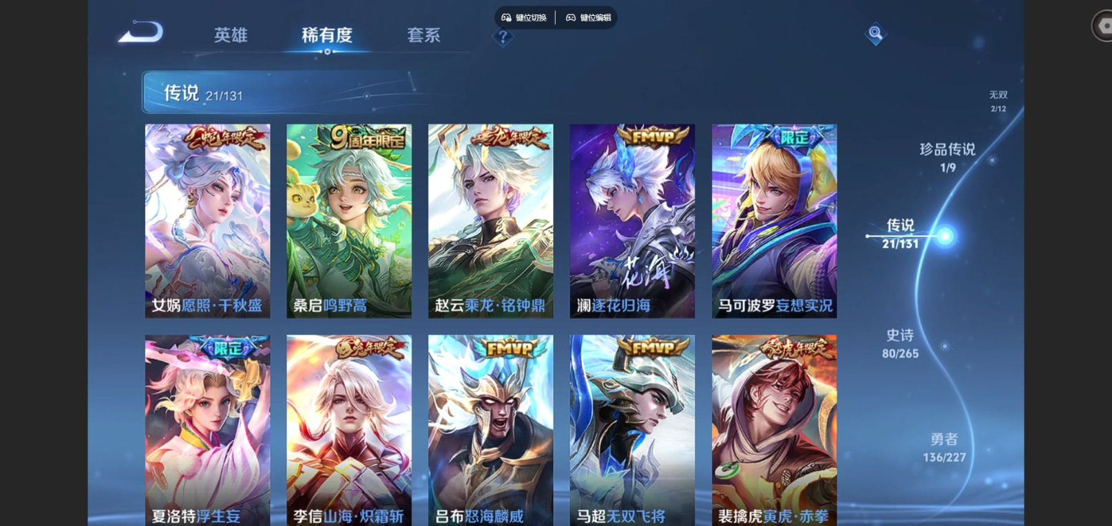 2318505-125英雄-320皮肤-钱包注销不了v8-1典藏2无双1珍品传说21传说 打野43段 金标花木兰 3星传说 幽冥之眼 星际治安官 未来机甲【典藏】 鸣剑曳影 【无双】 花合斗 碎月剑心 【珍品传说】 怪盗基德 【传说】 乘龙铭钟鼎 逐花归海 凤求凰 愿照千秋盛 鸣野蒿 白虎志 启明星使 祈雪灵祝 寅虎赤拳 山海炽霜斩 浮生妄 妄想实况 无双飞将 怒海麟威 炽阳神光 云鹰飞将
