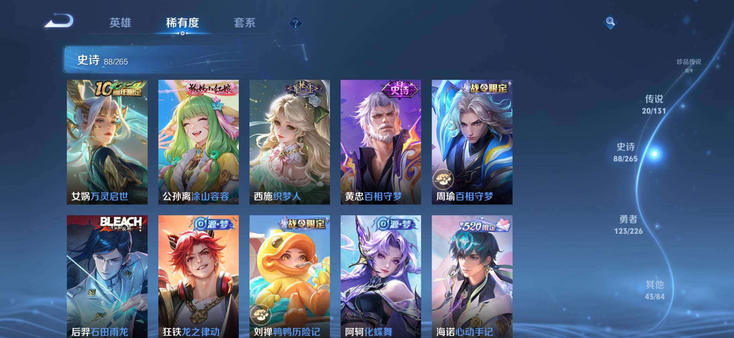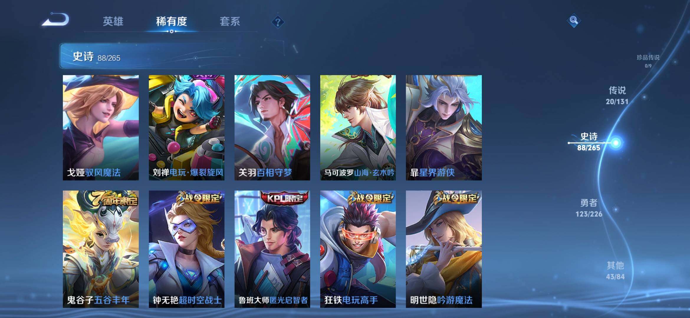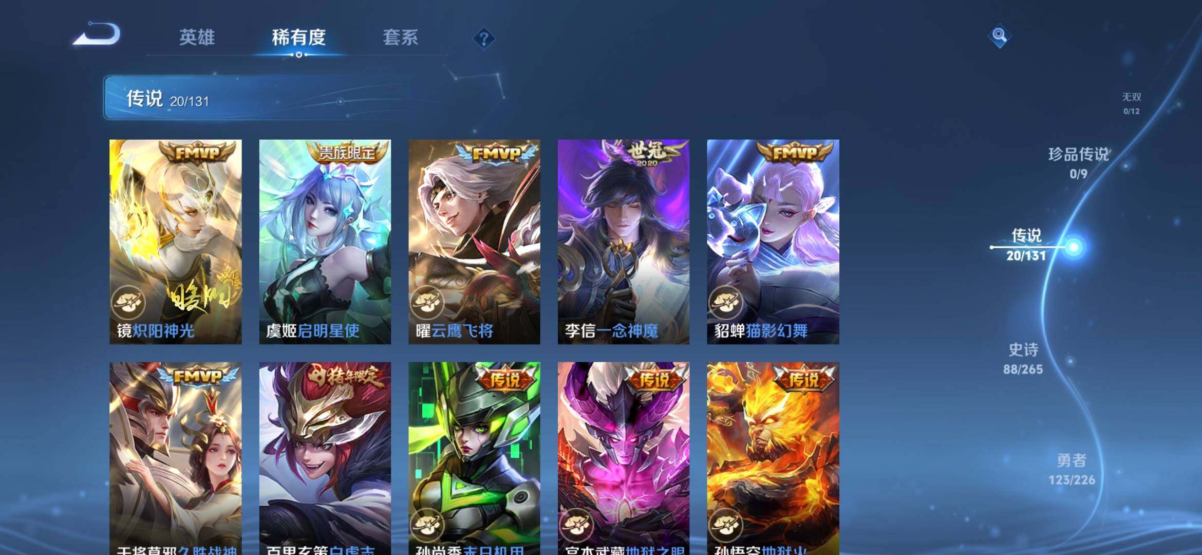 [14626646]安卓q-v8-最强王者段位-126英雄-275皮肤-1典藏-0珍品无双-0无双-0珍品传说-20传说-88史诗 【英雄全皮】:孙权全皮,鲁班大师全皮,空空儿全皮,海诺全皮 【荣耀典藏】:韩信弑呛猎影 【传说皮肤】:后羿神树通天,马超琥珀纪元,铠琥珀纪元,澜逐花归海,李白诗剑行,马超无双飞将,裴擒虎寅虎赤拳,赵云淬星耀世,王昭君乞巧织情,铠绛天战甲,镜炽阳神光,虞姬启明星使,曜云鹰飞将,李信一念神魔,貂蝉猫影幻舞,干将莫邪久胜战神,百里玄策白虎志,孙尚香末日机甲,宫本武藏地狱之眼,孙悟空地狱火 【限定皮肤】:大乔绒语心约,姜子牙天穹之誓,狄仁杰阴阳师,廉颇寅虎御盾,赵云皇家上将,庄周高山流水,钟无艳超时空战士,白起夜都怪侠,吕布猎兽之王,元歌云间偶戏,甄姬落雪兰心,马可波罗山海玄木吟,狄仁杰魔术师,达摩沙漠行僧,项羽海滩派对,关羽百相守梦,程咬金演武夺筹,韩信傲雪梅呛,王昭君午后时光,兰陵王金庭之子,孙悟空孙行者,后羿辉光之辰,李元芳云中旅人,虞姬启明星使,钟馗驱傩正仪,干将莫邪胡桃夹子,鬼谷子五谷丰年,铠青龙志,苏烈千军破阵,百里玄策白虎志,百里守约朱雀志,公孙离玉兔公主,沈梦溪大漠名商,明世隐吟游魔法,裴擒虎寅虎赤拳,裴擒虎擒涛扼浪,狂铁电玩高手,云中君纤云弄巧,上官婉儿梁祝,嫦娥拒霜思,嫦娥暖冬兔眠,西施玲珑珍味,鲁班大师匿光启智者,鲁班大师探海日志,桑启海盐诗旅,暃星界游侠,戈娅驭风魔法,艾琳流音漫舞,司空震地狱燃心,阿古朵江河有灵,张良古海寻踪,蒙犽百解令,高渐离燃音魔法,妲己灵卜魔法,鬼谷子天穹祈灯,伽罗琥珀纪元,铠琥珀纪元,马超琥珀纪元,姬小满妄想食味,百里玄策超元猎域,沈梦溪龙舞盛年,鲁班七号蔬乡物语,李元芳蔬乡物语,刘邦剑破天穹,上官婉儿群星魔术团,程咬金群星魔术团,镜青焰无极,项羽苍威无极,海诺心动手记,刘备异域游侠,周瑜熔金海岸 【年限皮肤】:百里玄策白虎志,百里守约朱雀志,铠青龙志,裴擒虎寅虎赤拳,廉颇寅虎御盾,后羿辉光之辰,马超神威,马可波罗山海玄木吟 【赛季限定】:达摩沙漠行僧,程咬金演武夺筹,兰陵王金庭之子,张良古海寻踪,李元芳云中旅人,钟馗驱傩正仪,苏烈千军破阵,沈梦溪大漠名商,裴擒虎擒涛扼浪,鲁班大师探海日志,桑启海盐诗旅,鬼谷子天穹祈灯,刘邦剑破天穹,姜子牙天穹之誓 【战令限定】:钟无艳超时空战士,白起夜都怪侠,吕布猎兽之王,元歌