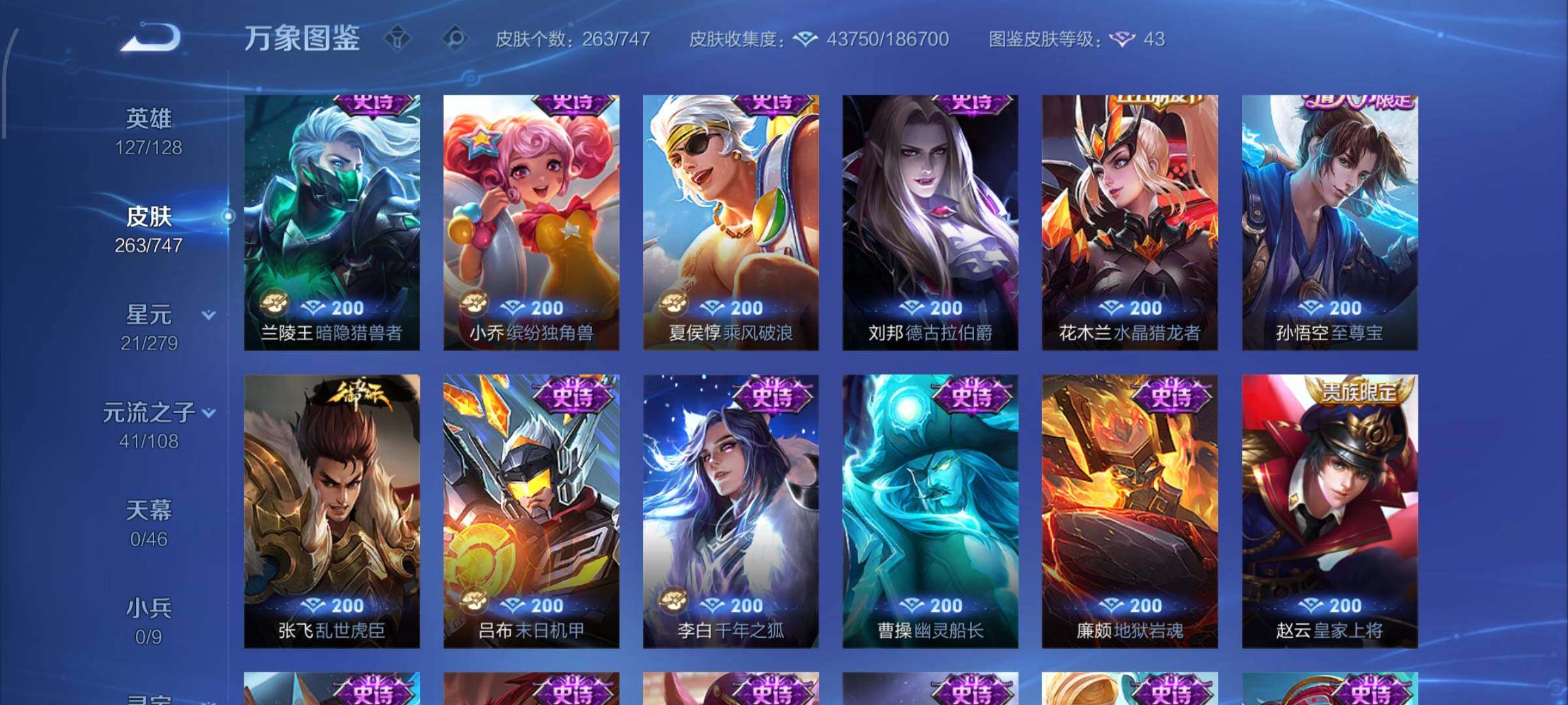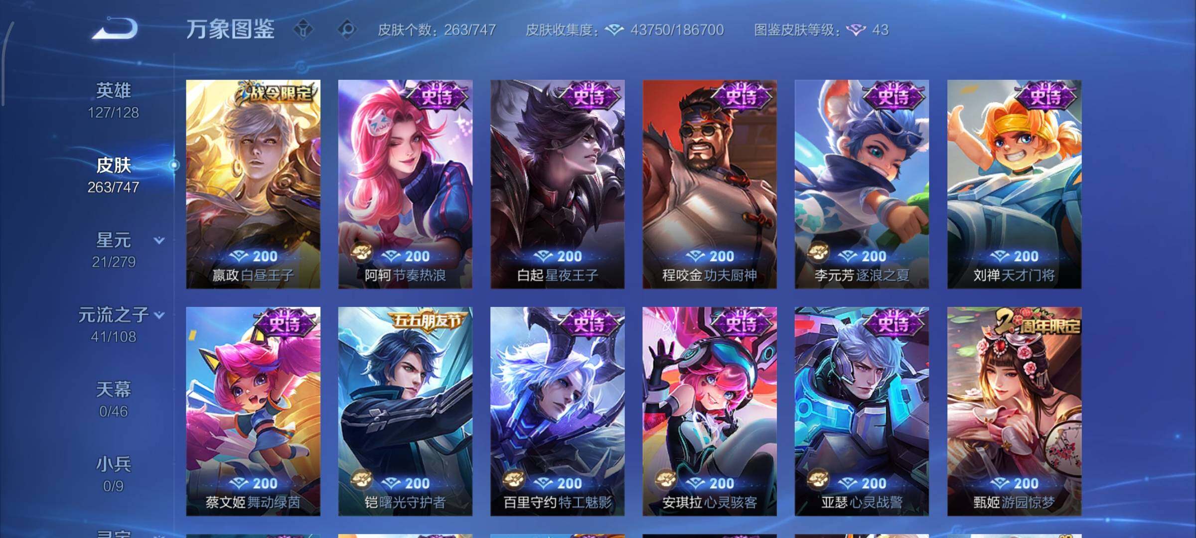 【精氪高质量v8·金标万战达摩·金标准万战李信·全皮李信·全息碎影·幻阙歌·碎月剑心·韩信群星魔术团·金色仲夏夜·满龙年限定·寅虎赤拳·霜月吟·寅虎瑞焰·飞衡·至尊宝·12年限·可二次】w8552-安卓q-127英雄-263皮肤-12王者印记-300铭文-贵族积分5w【贵族8】【2典藏·2无双·2星传说·18传说·3按键·267幸运值】【因赛季更新游戏段付以上号为准!】 【英雄全皮】:李信