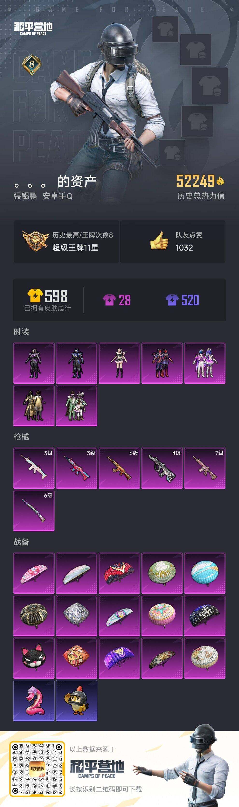 [14632964]连体和平精英 安卓q-v9-最强王者段位-127英雄-403皮肤-2典藏皮肤-38传说-122史诗 【英雄全皮】:娜可露露全皮,橘右京全皮,鬼谷子全皮,黄忠全皮,李信全皮,蒙恬全皮,阿古朵全皮,赵怀真全皮 【荣耀典藏】:芈月大秦宣太后,李白鸣剑曳影 【传说皮肤】:后羿神树通天,大司命死亡执政官,云缨幻光神呛,桑启鸣野蒿,亚连落雪白狼,孙尚香乘龙问璇玑,孙策乘龙淬吴钩,赵云乘龙铭钟鼎,澜逐花归海,宫本武藏惊梅引,公孙离记忆之芯,曜山海苍雷引,李信山海炽霜斩,不知火舞绯月行,橘右京枫霜尽,娜可露露前尘镜,露娜启示之音,裴擒虎寅虎赤拳,貂蝉遇见胡旋,公孙离祈雪灵祝,诸葛亮时雨天司,镜炽阳神光,虞姬启明星使,曜云鹰飞将,李信一念神魔,伽罗太华,貂蝉猫影幻舞,张良黄金白羊座,干将莫邪久胜战神,百里玄策白虎志,花木兰冠军飞将,后羿黄金射手座,貂蝉仲夏夜之梦,李白凤求凰,宫本武藏地狱之眼,孙悟空地狱火,吕布天魔缭乱,狄仁杰超时空战士 【限定皮肤】:白起狰,姜子牙天穹之誓,狄仁杰阴阳师,虞姬凯尔特女王,赵云皇家上将,赵云引擎之心,赵云龙胆,墨子神迹守卫,嬴政优雅恋人,嬴政白昼王子,鲁班七号狮舞东方,庄周高山流水,高渐离死亡摇滚,阿轲迷踪丽影,钟无艳王者之锤,扁鹊炼金王,扁鹊奇幻香踪,白起夜都怪侠,芈月重明,芈月白晶晶,芈月幻夜卜梦,吕布天魔缭乱,吕布猎兽之王,吕布御风骁将,周瑜赤莲之焰,元歌云间偶戏,元歌无心,夏侯惇朔风刀,甄姬幽恒,甄姬游园惊梦,曹操烛龙,曹操天狼征服者,典韦穷奇,典韦蓝屏警告,马可波罗暗影游猎,马可波罗山海玄木吟,狄仁杰魔术师,狄仁杰万华元夜,达摩星际陆战队,达摩沙漠行僧,项羽海滩派对,老夫子圣诞老人,老夫子醍醐杖,老夫子航海奇遇记,貂蝉遇见胡旋,程咬金演武夺筹,露娜一生所爱,露娜启示之音,刘邦夺宝奇兵,韩信飞衡,王昭君午后时光,兰陵王驯魔猎人,兰陵王金庭之子,不知火舞绯月行,娜可露露前尘镜,橘右京枫霜尽,亚瑟潮玩骑士王,孙悟空至尊宝,孙悟空大圣娶亲,孙悟空孙行者,牛魔御旌,后羿如梦令,李元芳银河之约,李元芳云中旅人,虞姬启明星使,钟馗神迹守卫,钟馗驱傩正仪,杨玉环遇见飞天,杨玉环寅虎心曲,杨戬潮玩骑兵,干将莫邪冰霜恋舞曲,雅典娜单词大作战,雅典娜黎明之约,蔡文姬繁星吟游,太乙真人饕餮,太乙真人华丽摇滚,鬼谷子原初探秘者,鬼谷子五谷丰年,诸葛亮时雨天司,黄忠烈