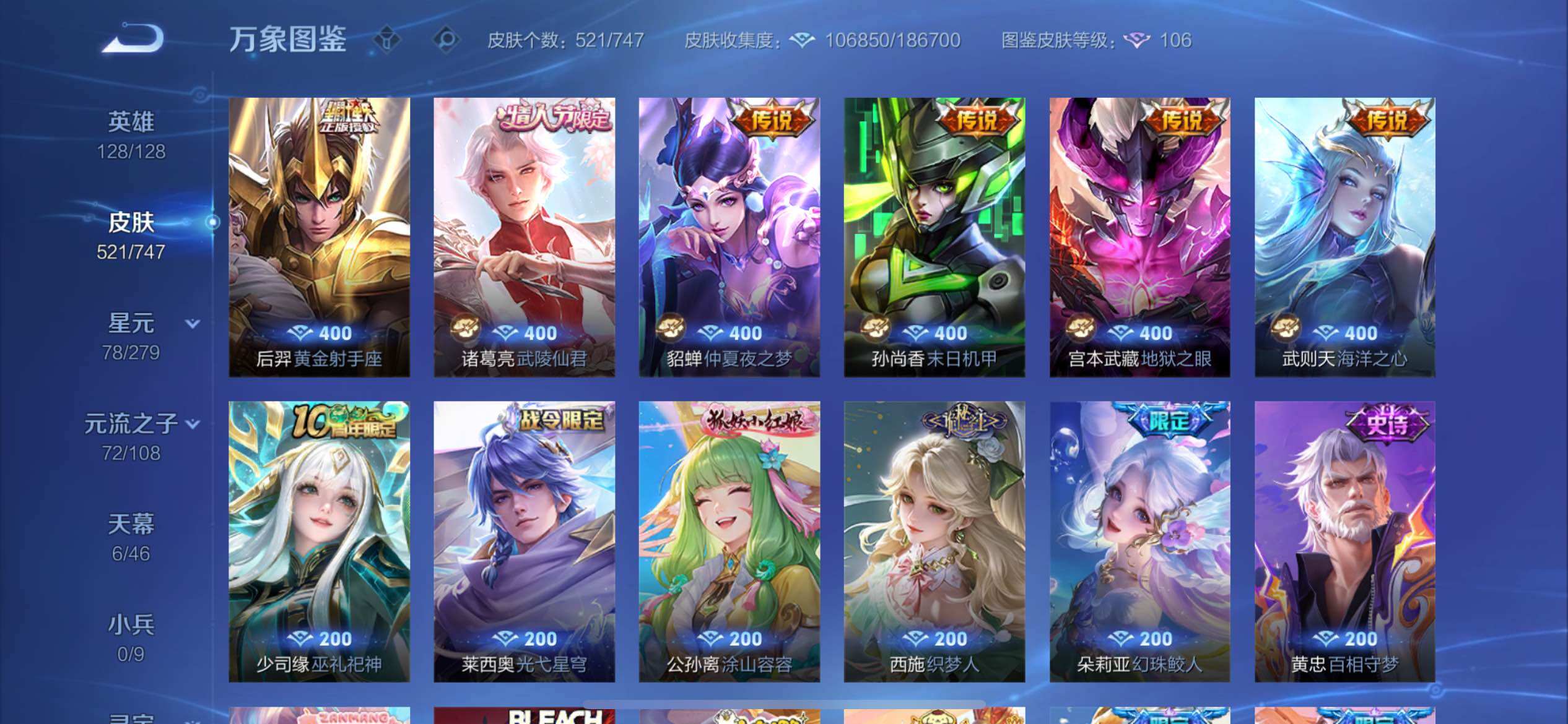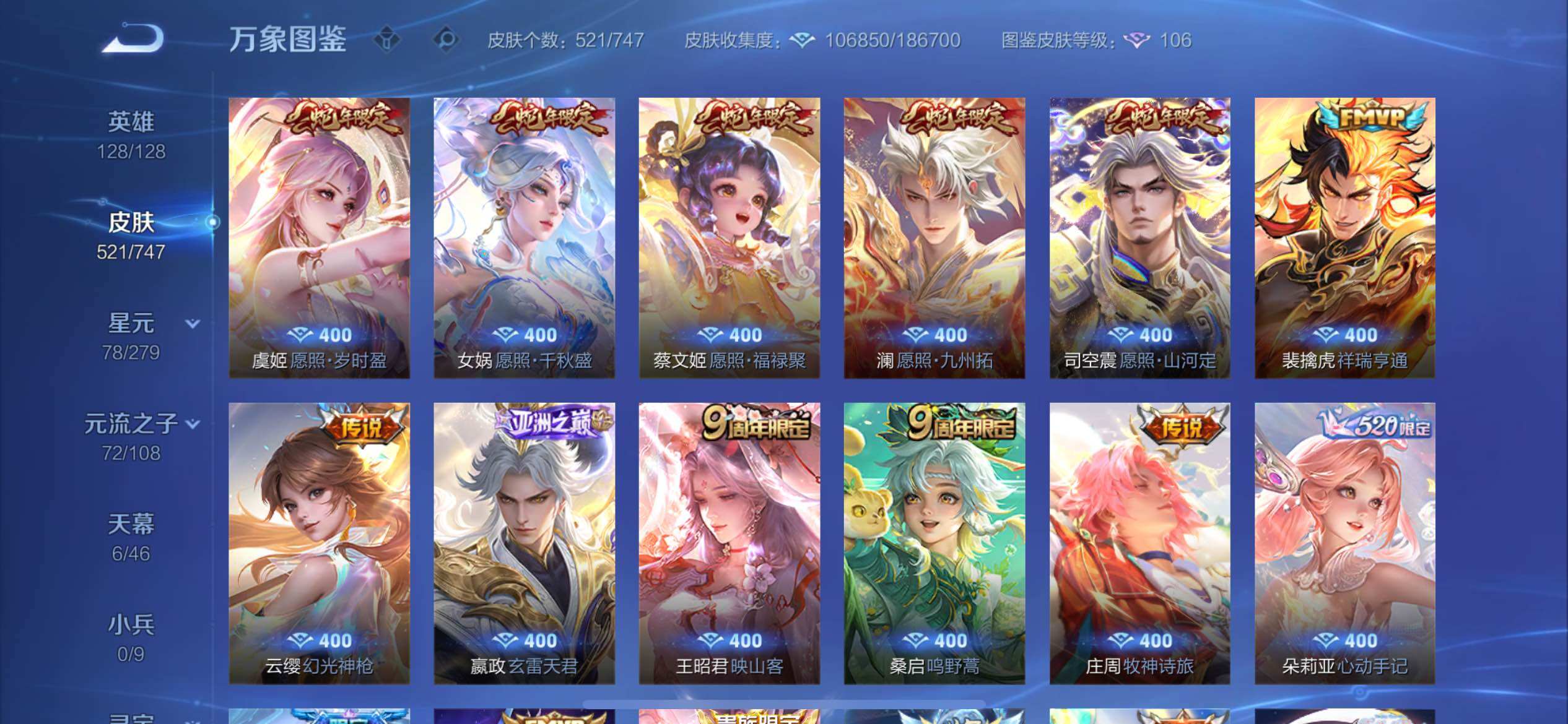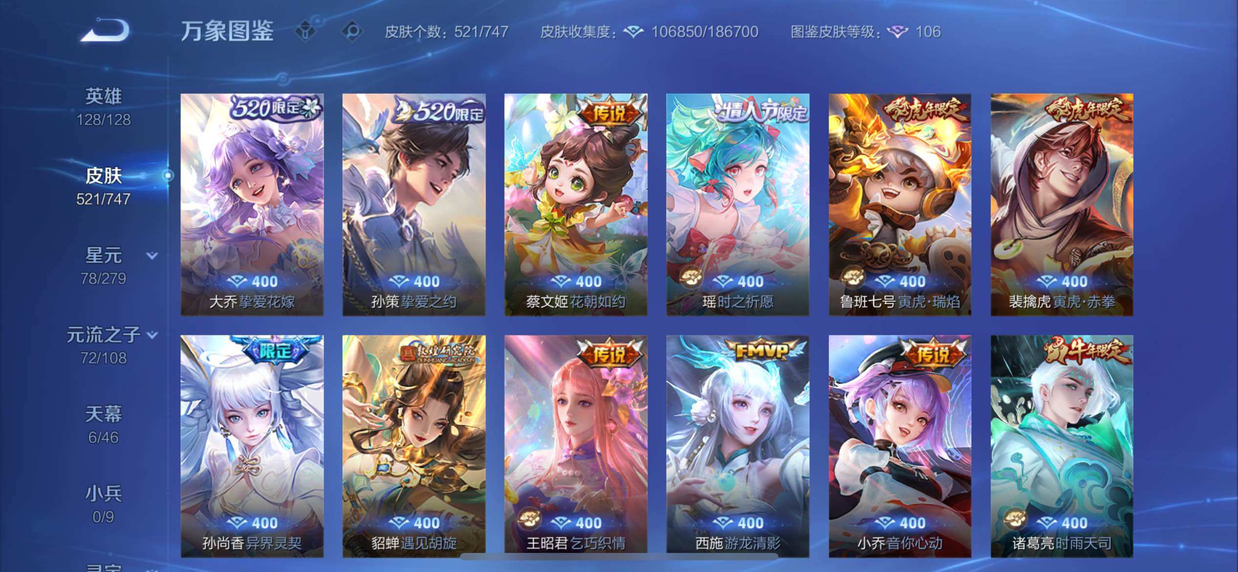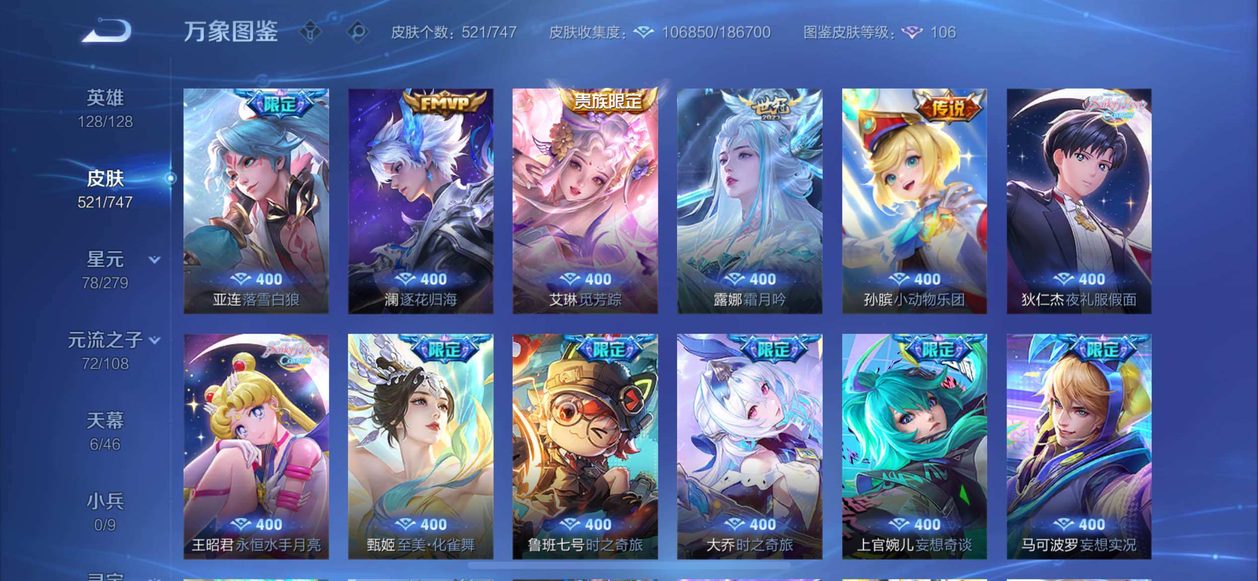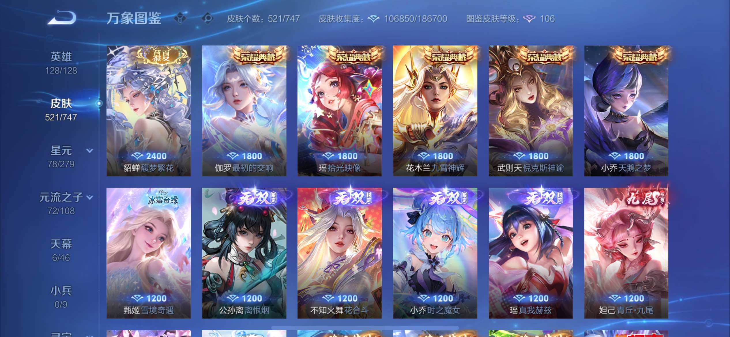 【极品精氪多女全皮女号·6典藏·1珍品无双·6无双·7珍品·4星传说·71传说·馥梦繁花·全皮瑶·全皮西施·全皮小乔·全皮妲己·全皮王昭君·全皮甄姬·全皮杨玉环·全皮公孙离·全皮蔡文姬·全皮嫦娥·全皮不知火舞·金标瑶·金标大乔·金标小乔·金标蔡文姬·4星传说·紫瑶·无限倾慕·kuromi时间天幕·路在脚下天幕·花朝如约天幕·金虎啸春天幕·秋月华灯天幕·可二次】w8566-苹果q区服-128