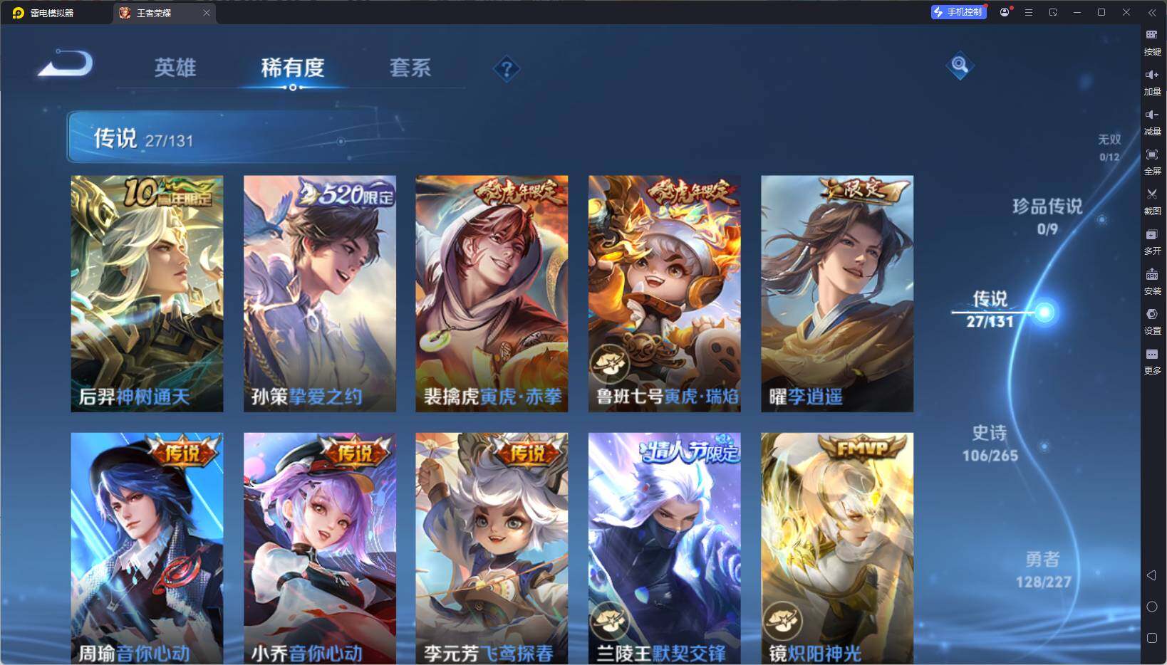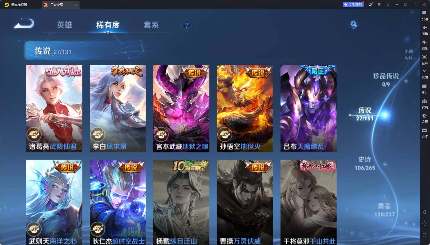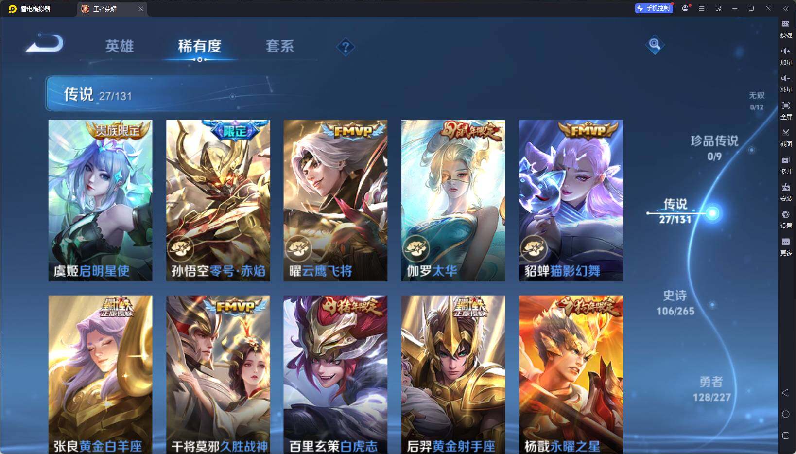 128英雄-337皮肤-【wzyh590】贵族9/皮肤337/典藏1/传说27/史诗106/英雄128/猪八戒全皮/武则天/李白-鸣剑·曳影/后羿神树通天/孙策-挚爱之约/裴擒虎-寅虎·赤拳/鲁班-寅虎·瑞焰/曜-李/周瑜-音你心动/小乔-音你心动/李元芳-飞鸢探春/兰陵王-默契交锋/镜-炽阳神光/虞姬-启明星使/孙悟空-零号·赤焰/曜-云鹰飞将/伽罗-太华/貂蝉-猫影幻舞/张良-黄金白羊座/干将莫邪-久胜战神/
