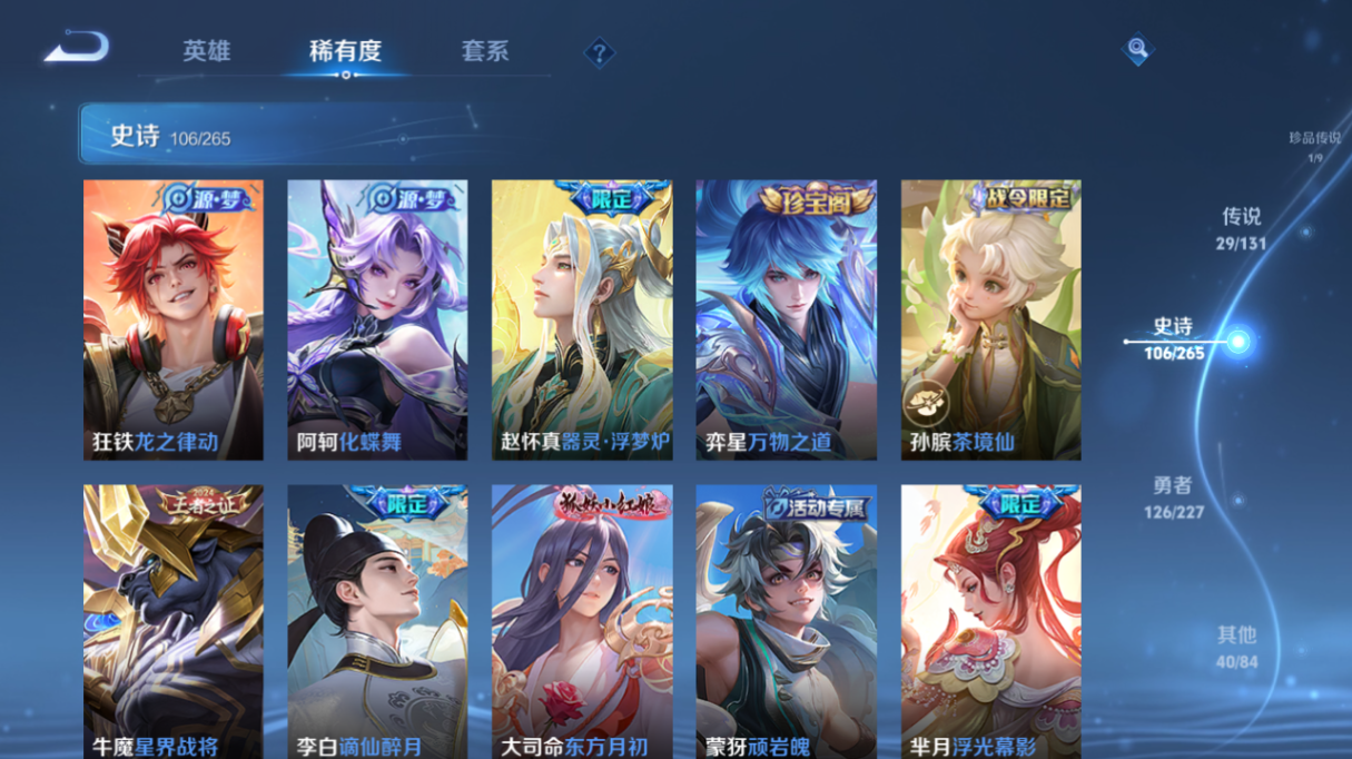 【王者荣耀】【lywz24223】珍品无双0 典藏1 无双1 珍品传说1 传说29 史诗106 英雄125 皮肤304 贵族7级 荣耀典藏:九霄神辉__无双皮肤:器灵·螭龙剑__珍品传说:孙策-时之奇旅__传说皮肤:鸣野蒿|音你闪耀|炽阳神光|启明星使|久胜战神|狄仁杰-超时空战士|黄金白羊座|猫影幻舞|一念神魔|冠军飞将|飞鸢探春|孙尚香-末日机甲|惊梅引|兰陵王-默契交锋|零号·赤焰|吕布-曦玄引|祈雪灵祝|时雨天司|武陵仙君|武圣|寅虎·赤拳|灼幽烈阳|冥王哈迪斯|幻光神呛|愿照·山河定|愿照·九州拓|愿照·众生和|云诺千山|神树通天__稀有限定:奔雷神使|御风骁将|白晶晶|朱雀志|虞姬-霸王别姬|大圣娶亲|一生所爱|蔷薇恋人|神威|青春决赛季|傲雪梅呛|李小龙|梁祝|拒霜思|暗影游猎|百解令|冰锋战神|冰霜恋舞曲|嫦娥-如梦令|地狱燃心|繁星吟游|高山流水|古海寻踪|海滩派对|海盐诗旅|航海奇遇记|后羿-如梦令|胡桃异想国|幻夜卜梦|皇家上将|混沌棋|火炮绅士|剑破天穹|江河有灵|金庭之子|狂想玩偶喵|黎明之约|魔术师|花木兰-默契交锋|奇幻香踪|千军破阵|擒涛扼浪|青焰无极|驱傩正仪|荣光圣徽|沙漠行僧|朔风刀|探海日志|醍醐杖|天狼运算者|天穹祈灯|万华元夜|妄想食味|纤云弄巧|星空之诺|演武夺筹|疑决卦|阴阳师|游园惊梦|驭风魔法|云间偶戏|真爱魔法|逐梦之星|逐梦之影|暗夜贵公子|暗夜猫娘|暗隐猎兽者|白龙吟|白蛇|缤纷独角兽|冰冠公主|冰雪圆舞曲|苍穹之光|乘风破浪|德古拉伯爵|地狱岩魂|电玩小子|功夫厨神|鬼剑武藏|黄金分割率|箭羽风息|节奏热浪|金属风暴|李元芳-蔬乡物语|龙骑士|魅力维加斯|魅语|梦奇-顽趣|偶像歌手|热力回旋|上官婉儿-群星魔术团|圣诞狂欢|圣诞恋歌|鲁班七号-蔬乡物语|水果甜心|水晶猎龙者|孙策-猫狗日记|天才门将|晚萤|赵云-未来纪元|星夜王子|雪夜绮愿|摇滚巨星|鹰眼统帅|永昼|幽灵船长|逐浪之夏|紫霞仙子|谪仙醉月|东方月初|顽岩魄|天穹之誓|浮光幕影|修罗|曙光守护者|心灵战警|千年之狐|孙尚香-时之恋人|舞动绿茵|特工魅影|心灵骇客|茶境仙|星界战将|谧流熔炉|万物之道|器灵·浮梦炉|化蝶舞|原初探秘者|玲珑珍味|单词大作战|达摩-星际陆战队|流音漫舞|访茗客|苍威无极|圣弓游侠|墨子-神迹守卫|死神来了|龙之律动|布丁狗之约|鹤鸣心笺__优质皮肤:创世神祝|年年有余|埃及法老|孤猎|午夜歌剧院|露花倒影|激情绿茵|海之征途|天启骑士|碧珀绯影|秩序猎龙将|冰刃幻境|森|维京掠夺者|启蛰|伊势巫女|画中游|威尼斯狂欢|第七人偶|潮流仙人|绝影神呛|荷鲁斯之眼|幸存者|赤焰之缨|福禄兄弟|特种部队|剑舞者|星航指挥官|龙域领主|魇语军师|花见巫女|灼热之刃|圣殿之光|霓裳曲|加勒比小姐|异域舞娘|修竹墨客|怪诞之夜|功夫炙烤|暖冬絮语|幻夜行动|聚星闪耀|潮玩探月行|虎啸剑宗|瓷语鉴心|秘密基地|次元突破|鲨炮海盗猫|野性能量|丁香结|奇妙博物学|虹云星官|科学大爆炸|坚韧之力|幻乐之宴|功夫老勺|命运角斗场|幻想奇妙夜|海滩丽影|阿尔法小队|兔女郎|死亡骑士|黄金武士|少女阿狸|红桃皇后|忍·炎影|街头霸王|教廷特使|鸿运当头|金色潮汐|决胜大满贯|破局者|王牌新星|零食大作战|西部游侠|太极少年|紫罗兰之誓|次元傲视|无尽征程|制霸全明星|拳王|时尚教父|救世之瞳|白色死神|程咬金-星际陆战队|白执事|哥特玫瑰|西施-雪境奇遇|星梦巡礼|爆裂喵拳|景韶洛都|猪八戒-西部大镖客|缤纷绘卷|掌控之力|铁骨偃魂|纽约教父|龙腾万里|乱世虎臣|经纬探寻者|敏锐之力|汉昭烈帝|乓乓大师|五福同心|盾山-圆桌骑士|万事如意|曜-归虚梦演|唤灵魔甲|沉稳之力|程咬金-群星魔术团|完美运算|化身博士|花好人间|熔金海岸|潮玩骑士王|万象初新|潮玩骑兵|苍林狼骑|蔚蓝守将|劲辣红锅|特工战影|炽热元素使|妄想特派|玫蓝誓约|命运加冕|小满鸭|死霸装|无双福将|云械蓝图|戏梦巡演|落日弦歌|径山谋武__贵族等级:贵族7级__王者段位:至尊星耀器灵·螭龙剑,九霄神辉,时之奇旅,云诺千山,愿照·众生和,幻光神呛,愿照·山河定,愿照·九州拓,冥王哈迪斯,寅虎·赤拳,惊梅引,武陵仙君,武圣,炽阳神光,时雨天司,祈雪灵祝,零号·赤焰,逐梦之影,逐梦之星等热门限定皮肤