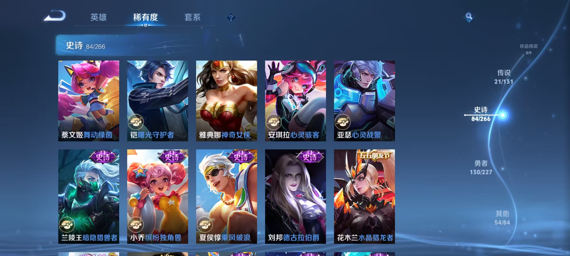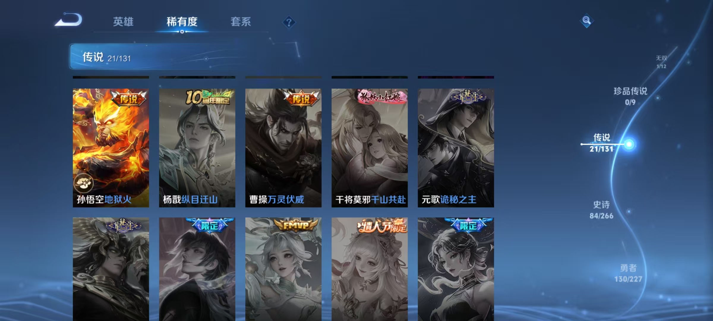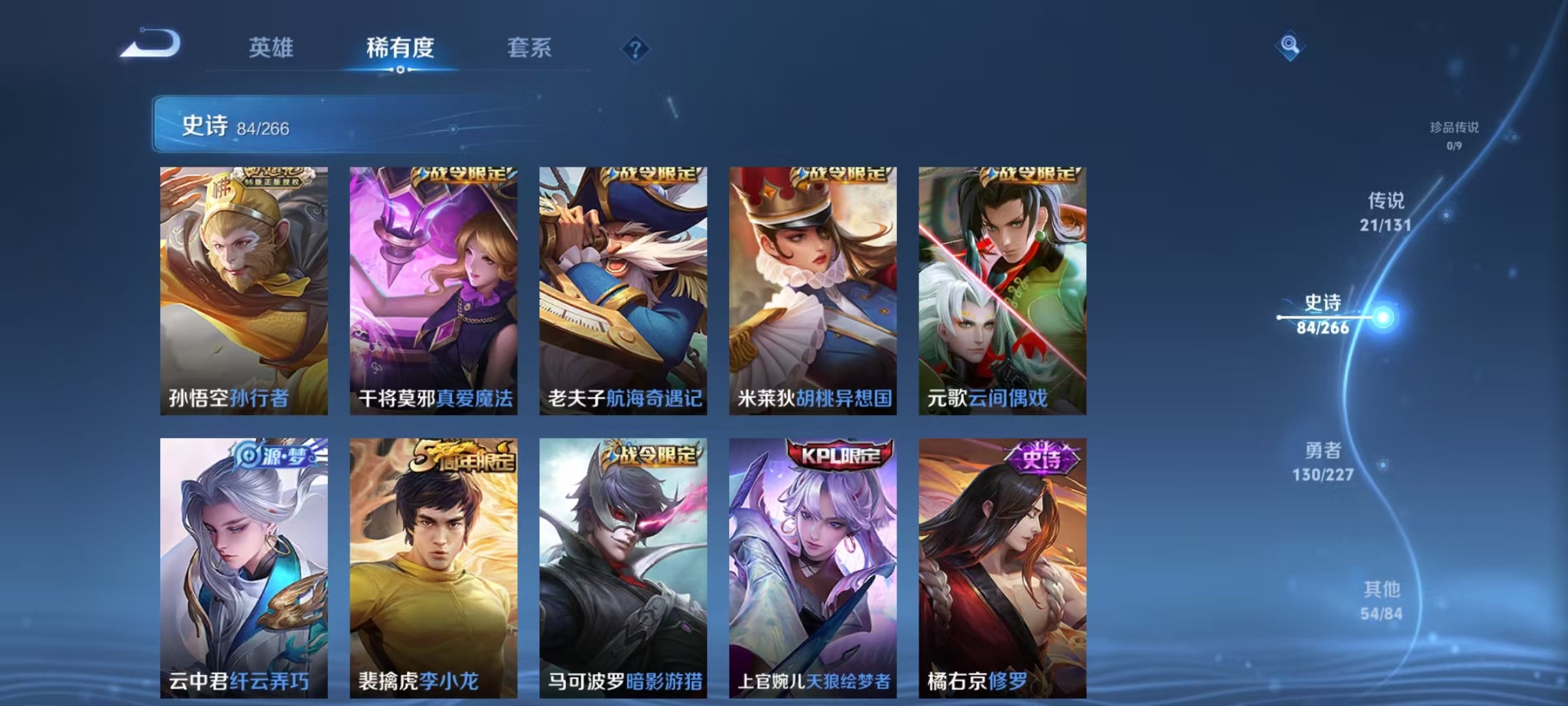 [14715165]【贵族8 291皮肤1水晶1无双传说21传说7个性按键】荣耀水晶: 九霄神辉 无双皮: 小乔时之魔女 传说皮: 云鹰飞将猫影幻舞久胜战神云霓雀翎末日机甲-孙尚香地狱火地狱之眼无双飞将山海·炽霜斩山海·琳琅生霜月吟神树通天 限定皮: 遇见飞天李小龙梁祝时雨天司异界灵契太华天狼狩猎者神奇女侠天狼绘梦者凤求凰美猴王如梦令-嫦娥至尊宝如梦令-后羿大圣娶亲高山流水孙行者猪悟能前尘镜枫霜尽五谷丰年绯月行神器·万象笔怒海麟威山海·玄木吟山海·碧波行