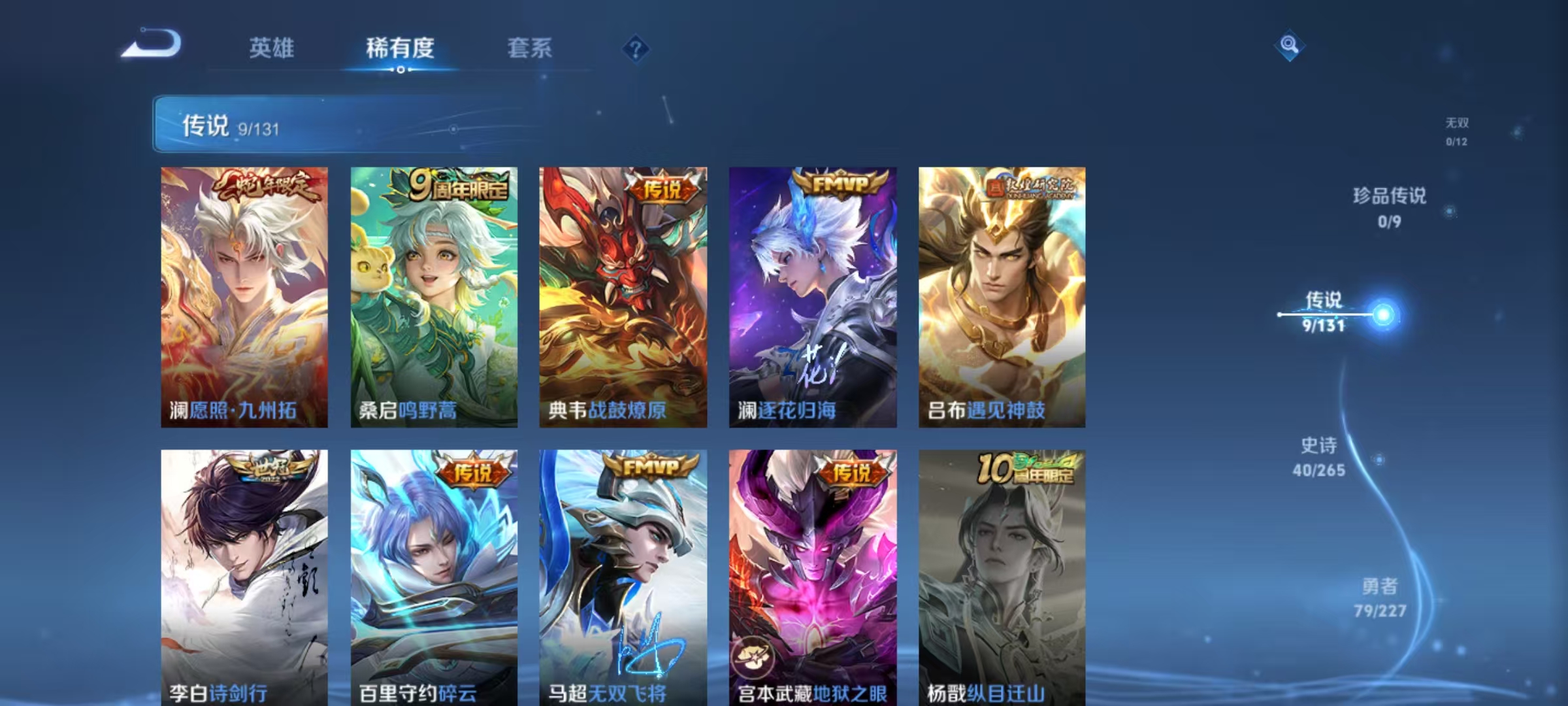 [14652662]【贵族6 166皮肤9传说】传说皮: 地狱之眼无双飞将碎云遇见神鼓澜逐花归海典韦战鼓燎原 限定皮: 梁祝诗剑行鸣野蒿愿照·九州拓