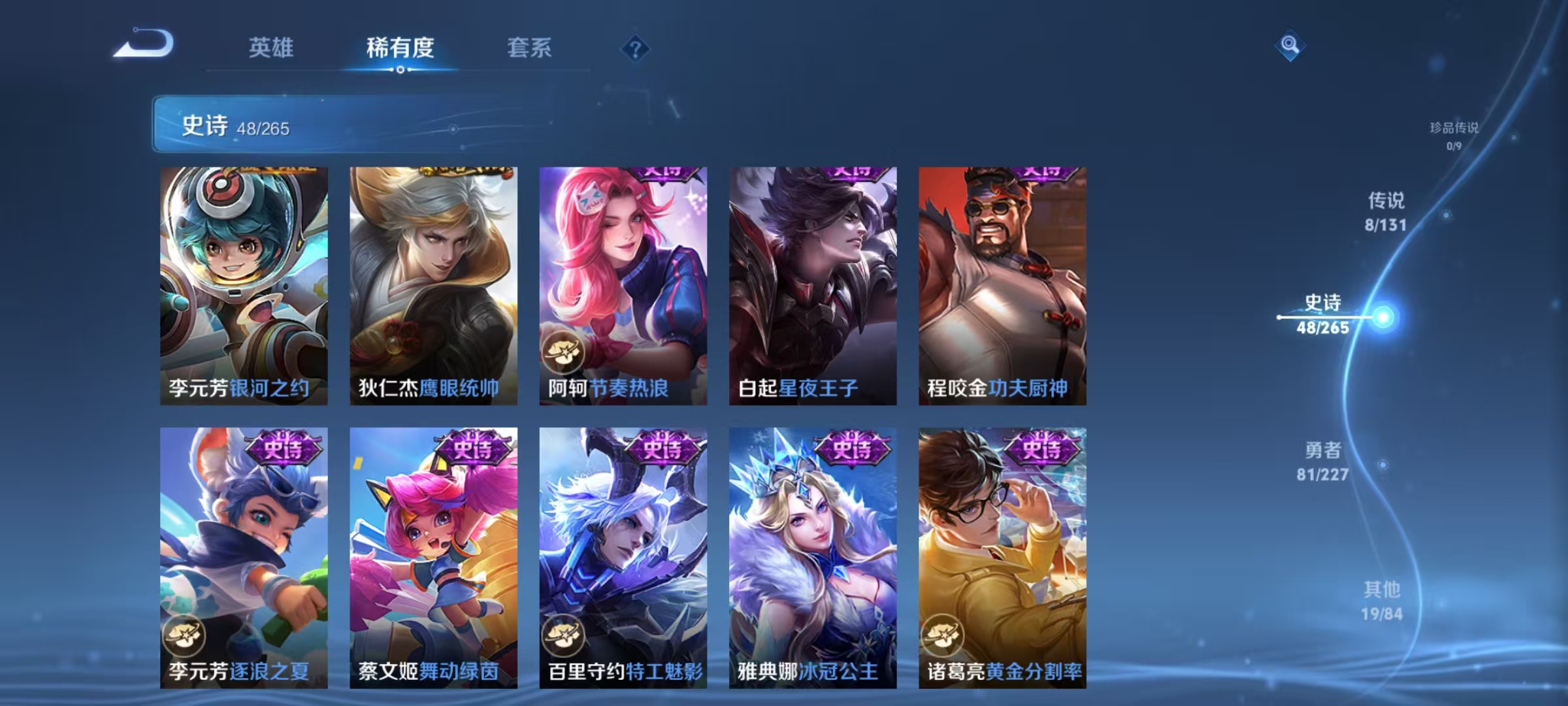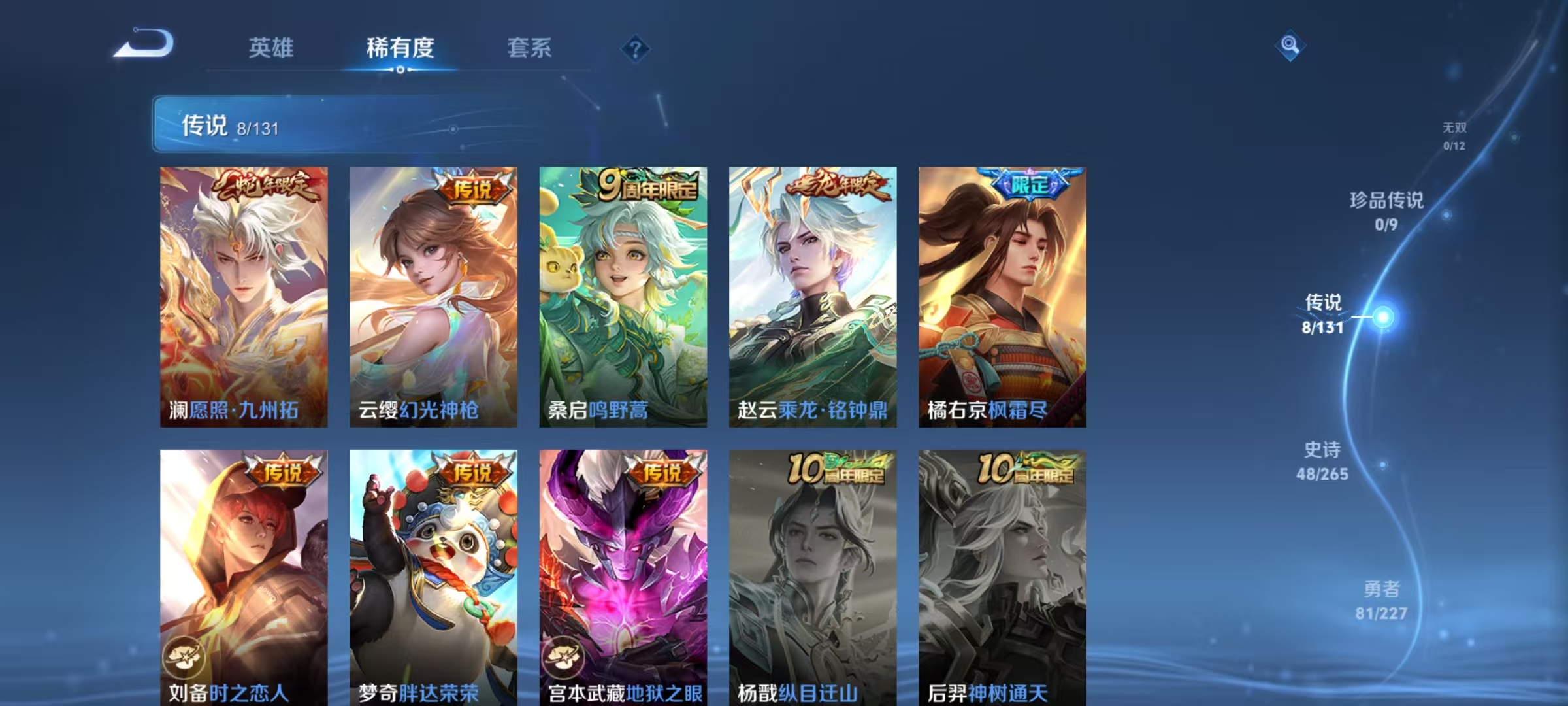 [14609536]【贵族6 157皮肤1水晶8传说1星传说6个性按键】荣耀水晶: 银白咏叹调 星传说: 时之思念 传说皮: 地狱之眼胖达荣荣时之恋人-刘备乘龙·铭钟鼎幻光神呛 限定皮: 李小龙至尊宝枫霜尽五谷丰年鸣野蒿愿照·九州拓