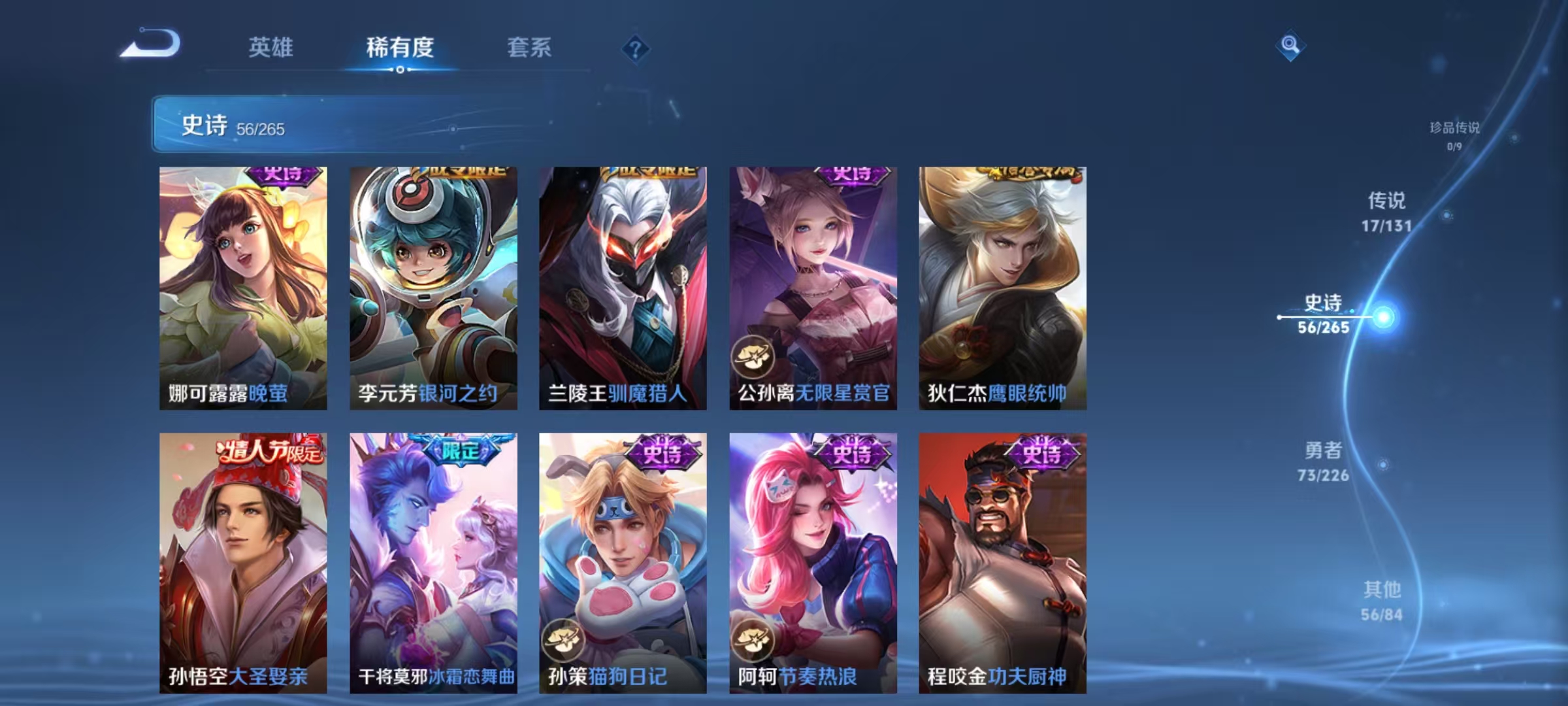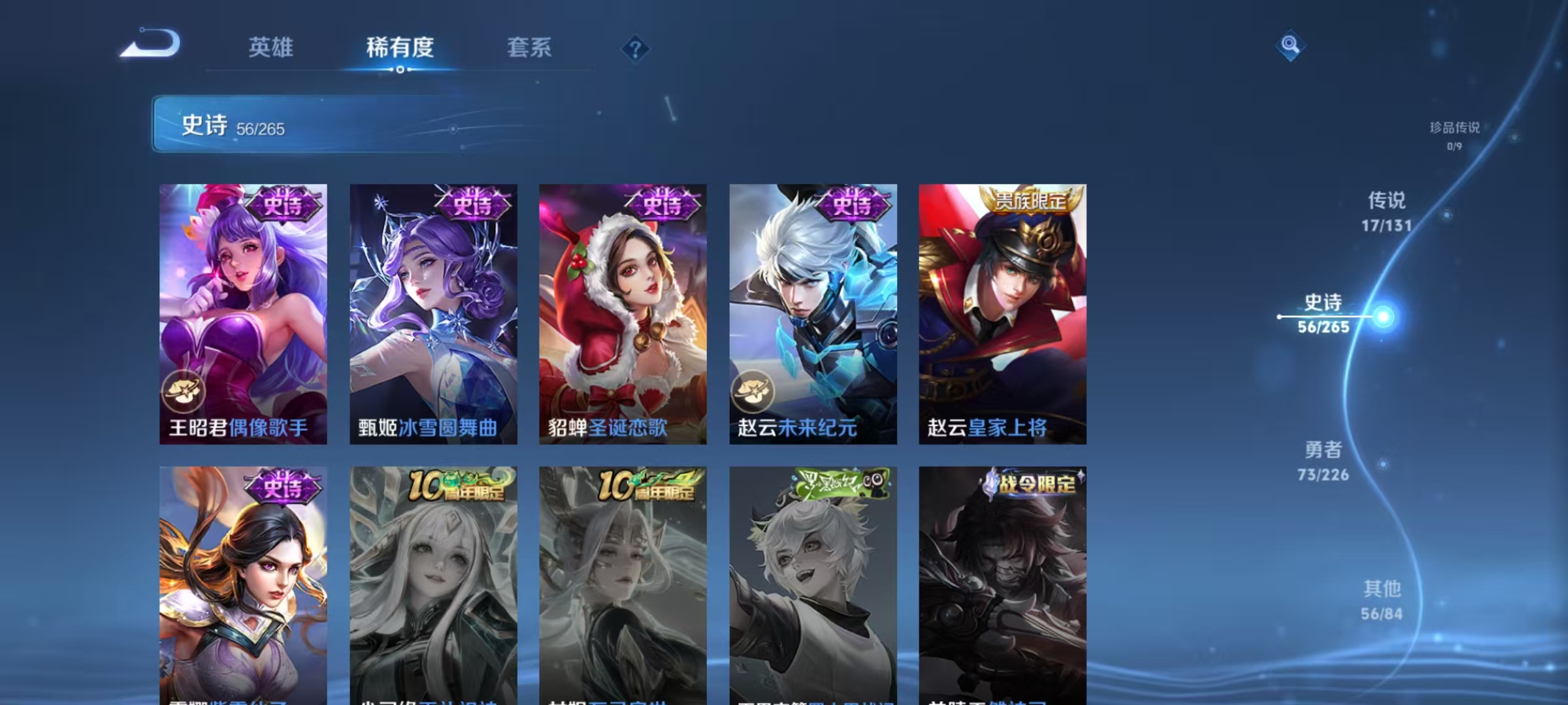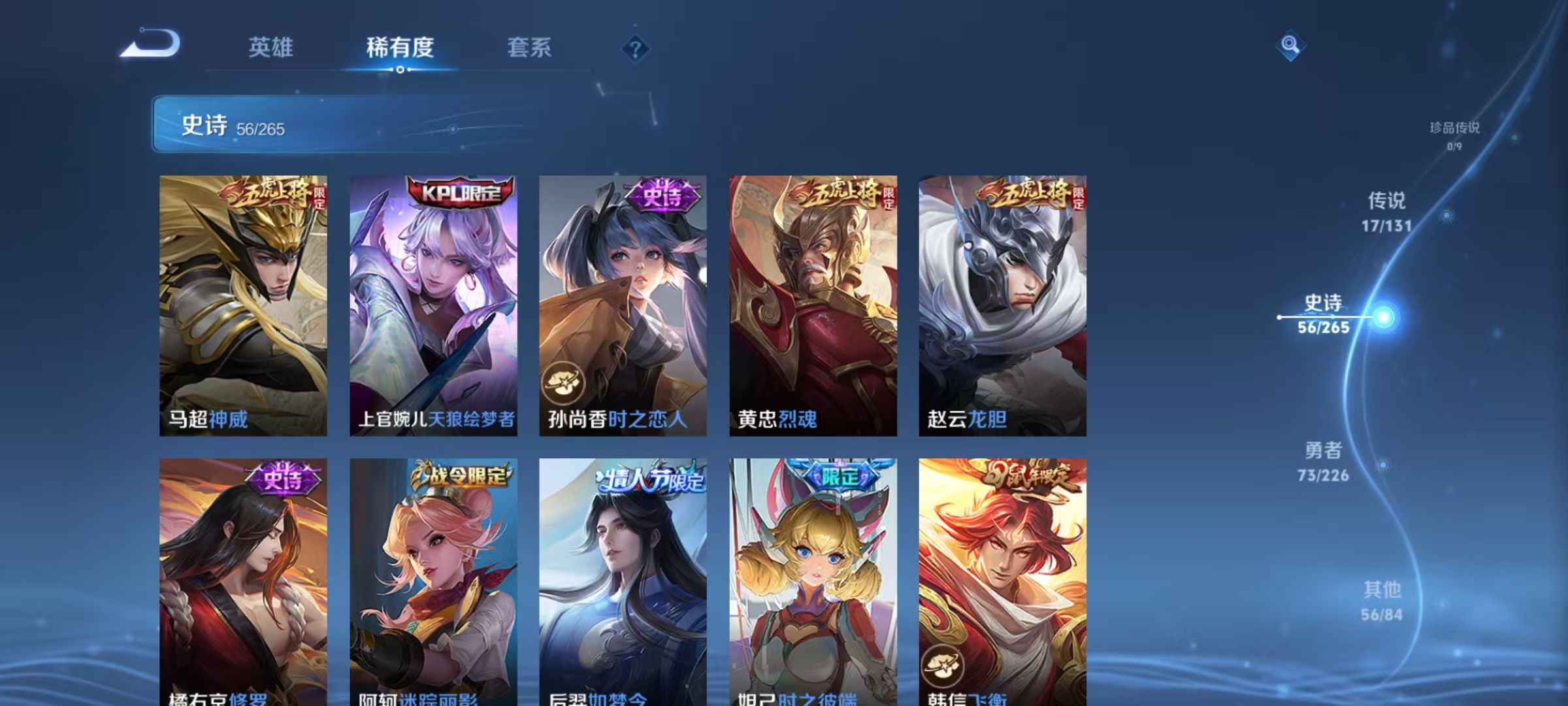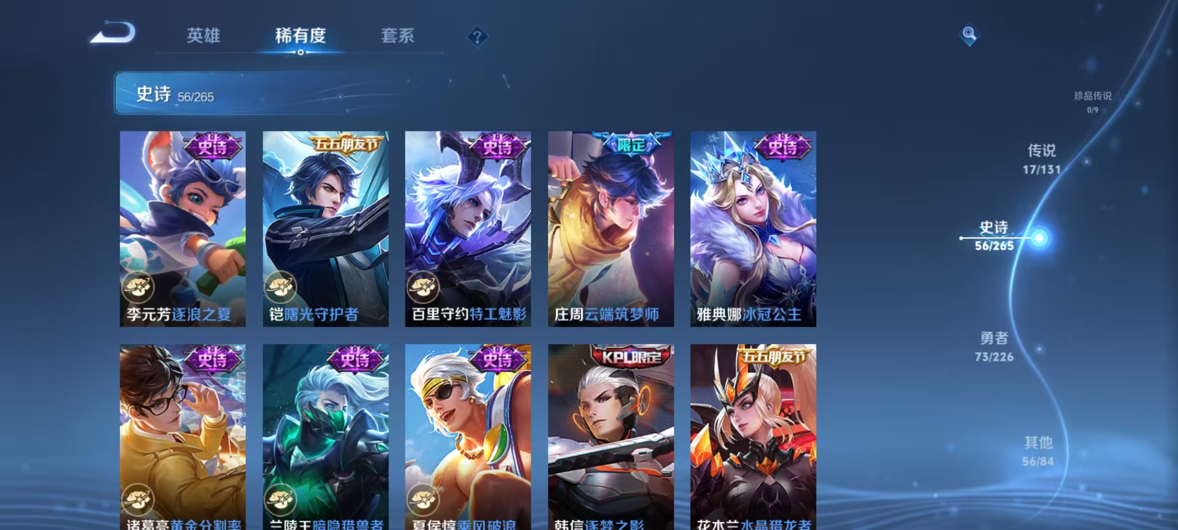[14277350]【贵族8 203皮肤1水晶17传说】荣耀水晶: 全息碎影 传说皮: 黄金狮子座云鹰飞将久胜战神炽阳神光一念神魔地狱火零号·赤焰李时之恋人-刘备神树通天 限定皮: 李小龙奔雷神使祈雪灵祝云端筑梦师时雨天司龙胆武圣烈魂白晶晶虎魄天魔缭乱神威时之彼端飞衡冰霜恋舞曲天狼运算者逐梦之影天狼绘梦者白虎志至尊宝默契交锋-兰陵王如梦令-后羿大圣娶亲默契交锋-花木兰