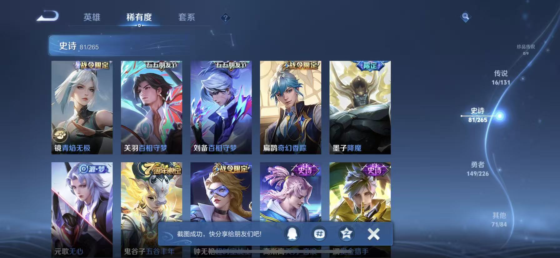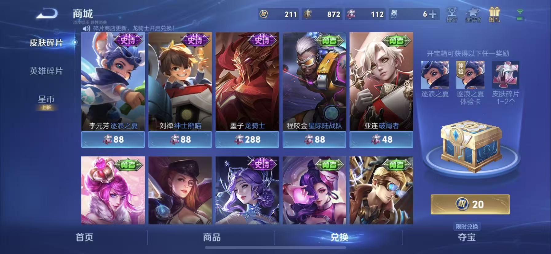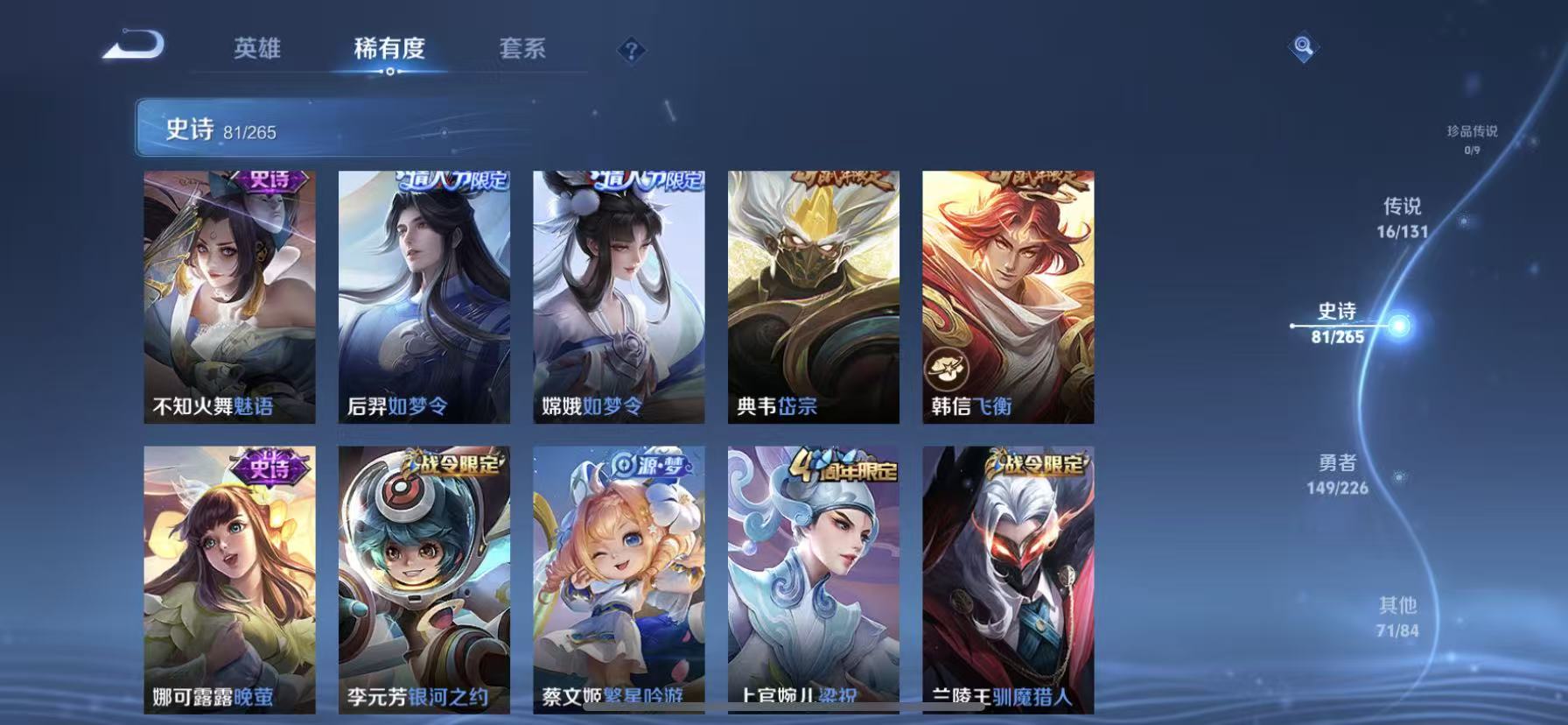 [13519191]【贵族8 318皮肤1水晶2星传说16传说8个性按键204夺宝幸运值】荣耀水晶: 九霄神辉 星传说: 未来机甲金色仲夏夜 传说皮: 云鹰飞将猫影幻舞久胜战神末日机甲-孙尚香地狱火仲夏夜之梦地狱之眼碎云百相守梦张飞幻光神呛神树通天 限定皮: 李小龙梁祝岱宗飞衡太华梅西如梦令-嫦娥至尊宝如梦令-后羿大圣娶亲孙行者五谷丰年降魔鸣野蒿逐霄战戟愿照·山河定愿照·九州拓
