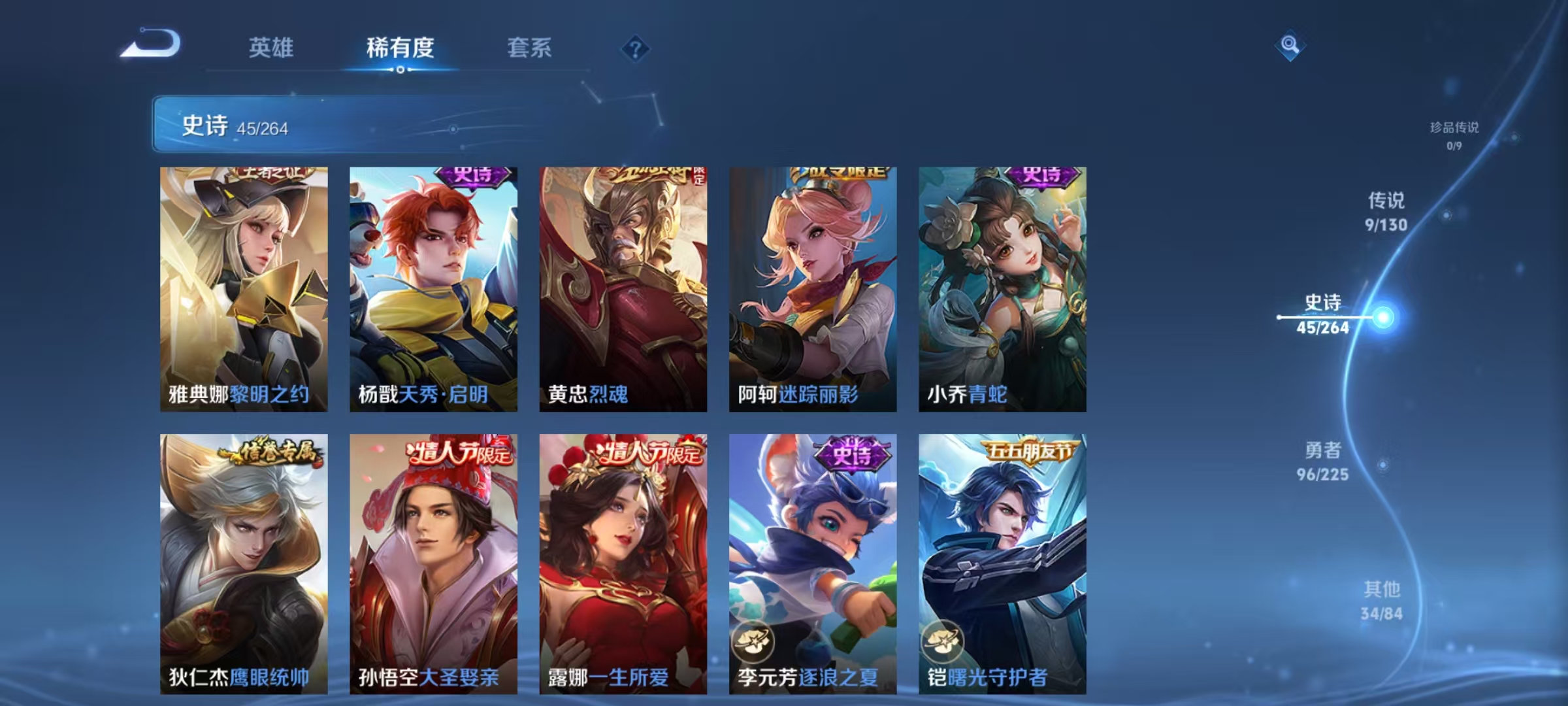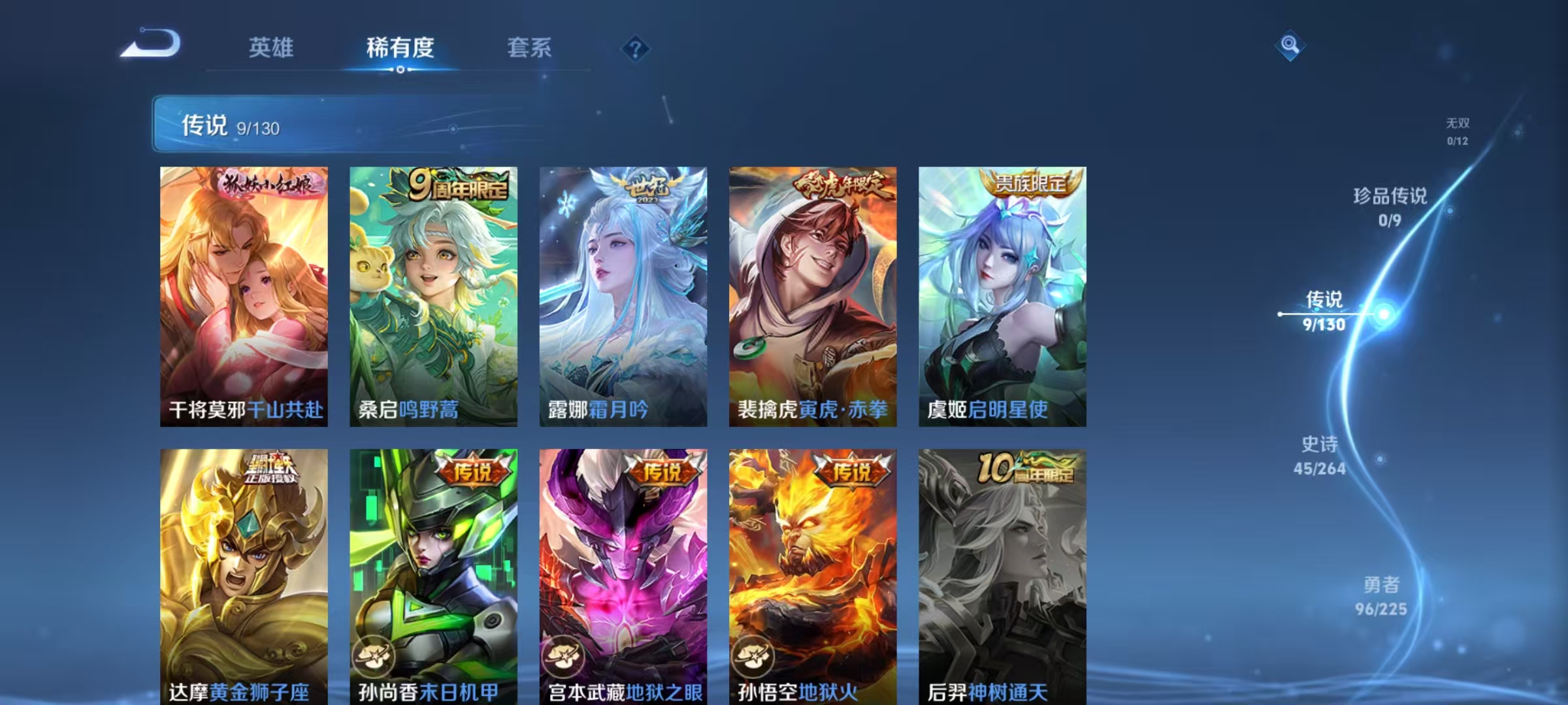 [12902908]【贵族7 186皮肤1星传说9传说】星传说: 幽冥之眼 传说皮: 黄金狮子座末日机甲-孙尚香地狱火地狱之眼霜月吟 限定皮: 引擎之心烈魂逐梦之影至尊宝一生所爱大圣娶亲寅虎·赤拳鸣野蒿逐霄战戟