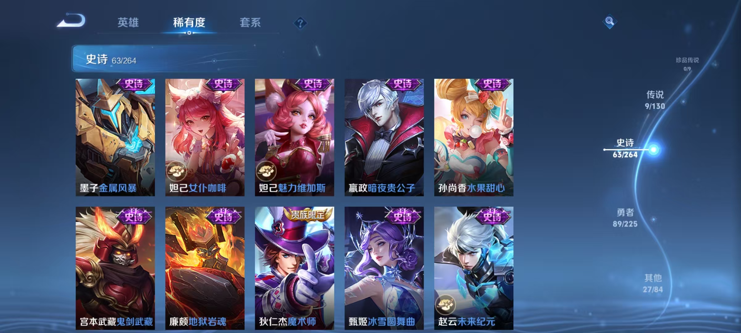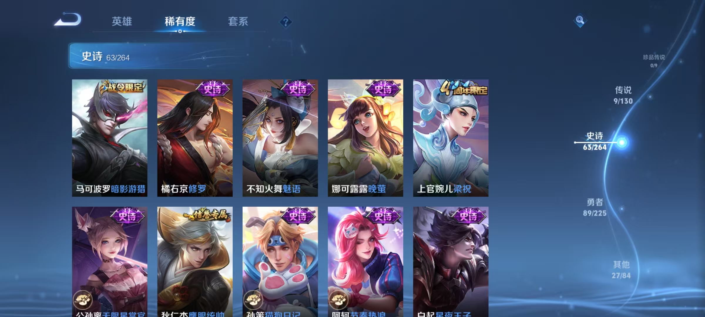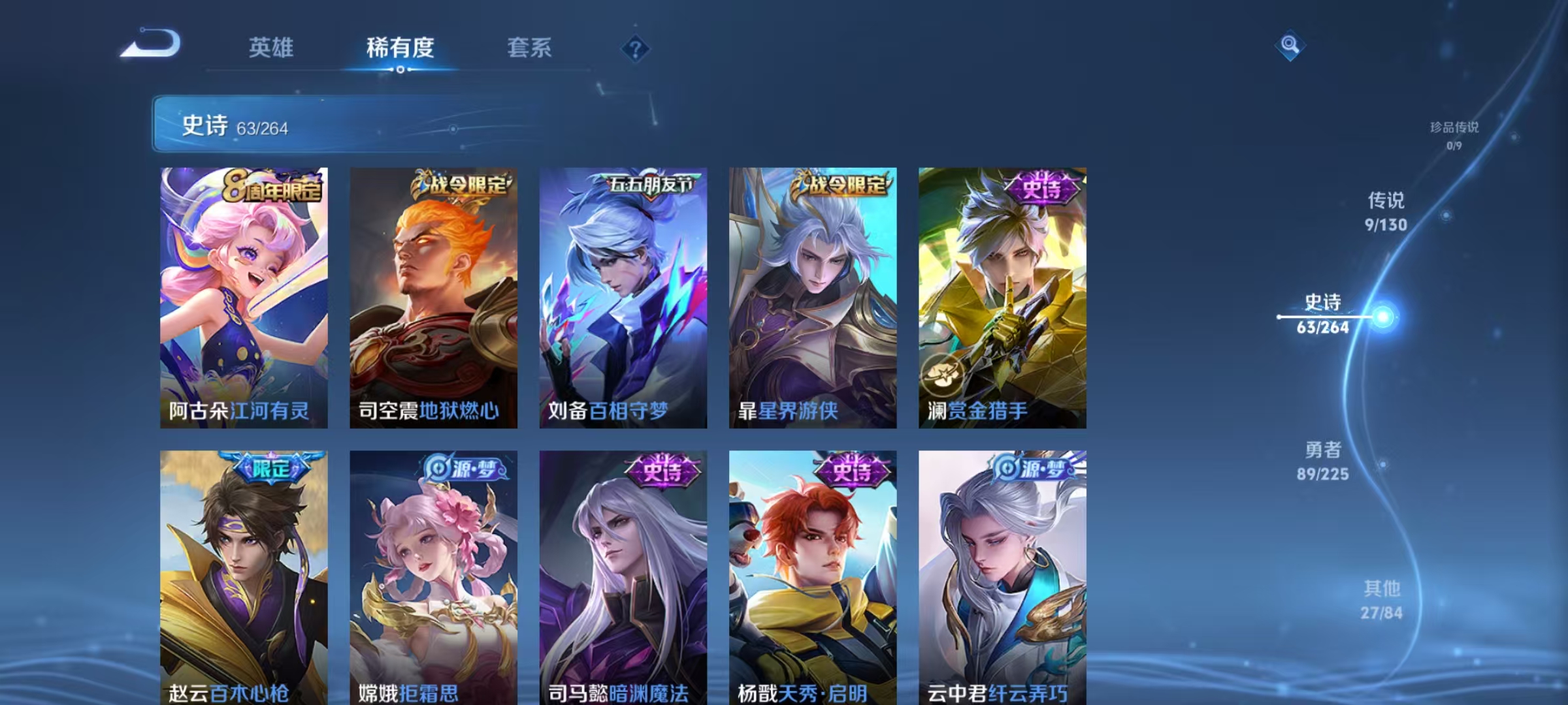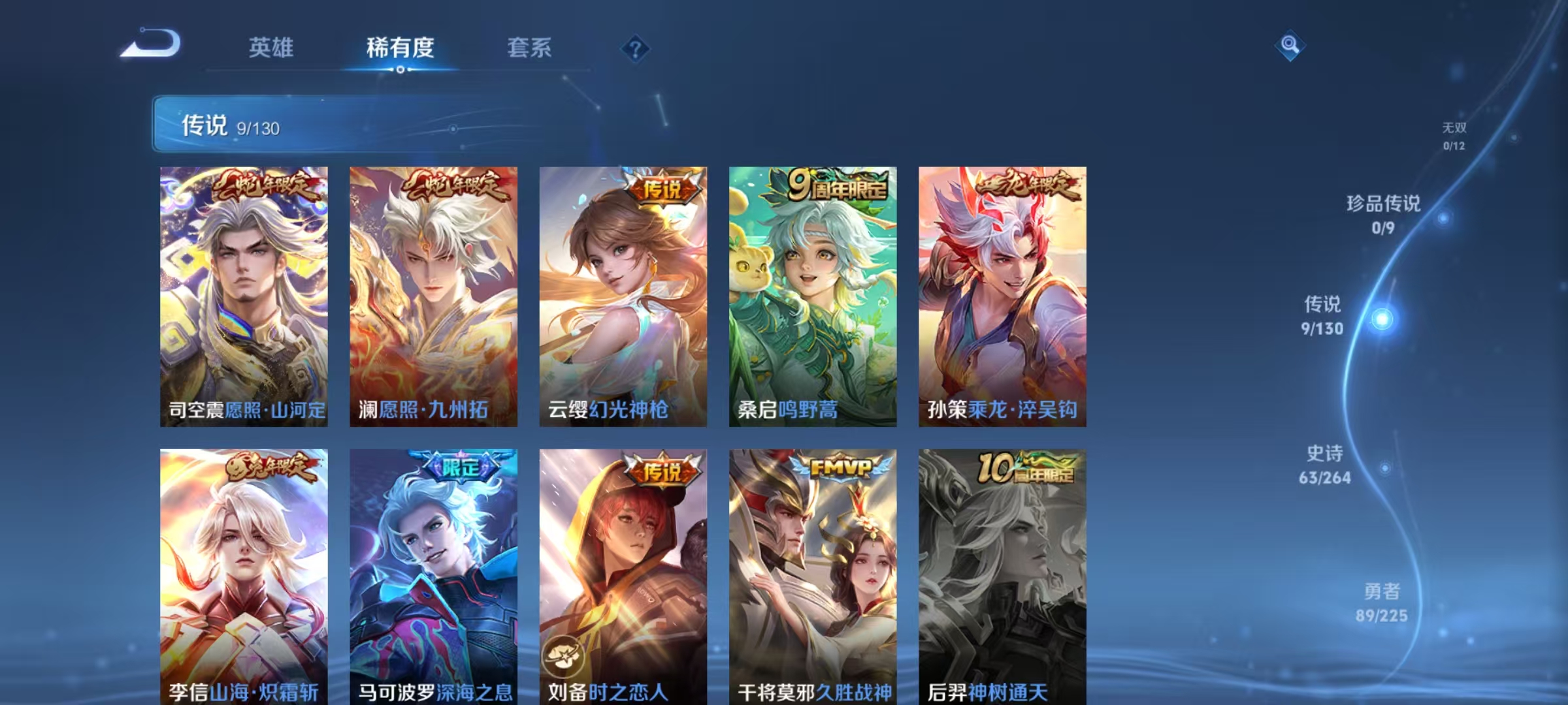 [12869265]【贵族7 189皮肤1水晶1星传说9传说8个性按键】荣耀水晶: 弑呛猎影 星传说: 时之思念 传说皮: 久胜战神时之恋人-刘备山海·炽霜斩乘龙·淬吴钩幻光神呛 限定皮: 梁祝百木心呛深海之息鸣野蒿逐霄战戟愿照·山河定愿照·九州拓