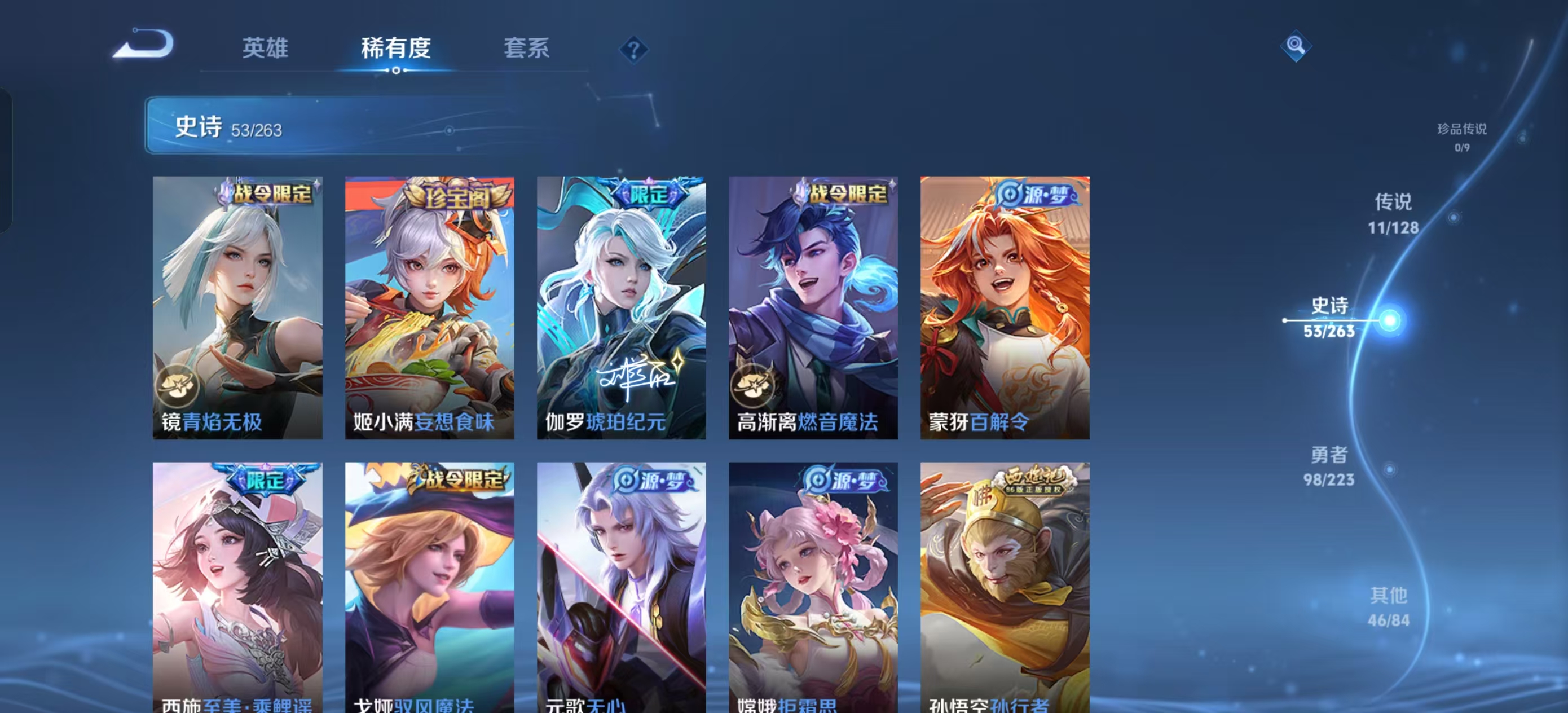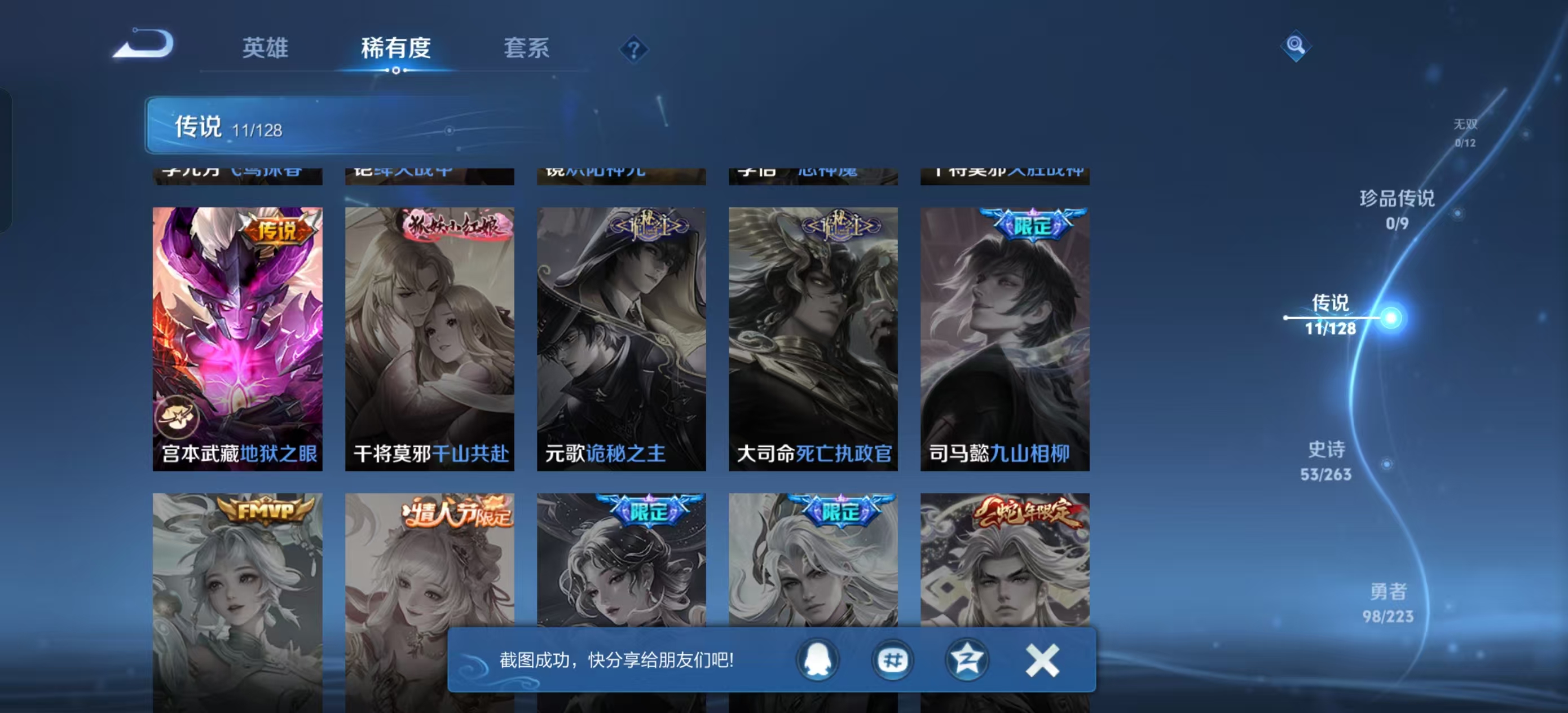 [12393505]【贵族7 208皮肤11传说1星传说6个性按键224夺宝幸运值】皮肤数: 208 传说皮: 绛天战甲久胜战神炽阳神光一念神魔地狱之眼飞鸢探春游龙清影妄想实况 限定皮: 李小龙孙行者至美·乘鲤谣鸣野蒿逐霄战戟愿照·众生和愿照·岁时盈