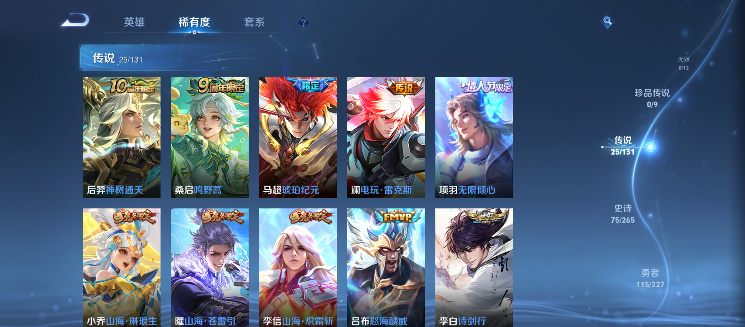 txwz24638v8-285皮 李 1传说天幕 1典藏 九霄神辉 25传说 琥珀纪元,神树通天,鸣野蒿,电玩·雷克斯,冠军飞将,诗剑行,游龙清影,末日机甲,无限倾心,地狱之眼,胖达荣荣,山海·琳琅生,山海·炽霜斩,山海·苍雷引,启明星使,怒海麟威,久胜战神,炽阳神光,时雨天司,无双飞将,一念神魔,李 ,猫影幻舞,寅虎·赤拳,云鹰飞将75史诗