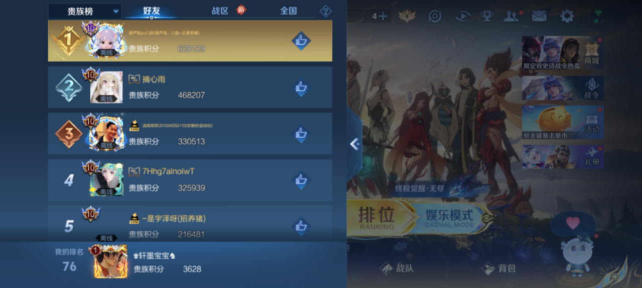 _2319872-实名:可修改贵族等级:v4英雄数:125皮肤数:182传说皮:地狱火神树通天限定皮:李小龙游园惊梦梁祝大圣娶亲高山流水猪悟能鸣野蒿亮点:【精品号手慢无】消耗任意点券恢复v4,v4性价比号,发育路29段,游走24段,星币2285,鲜花944