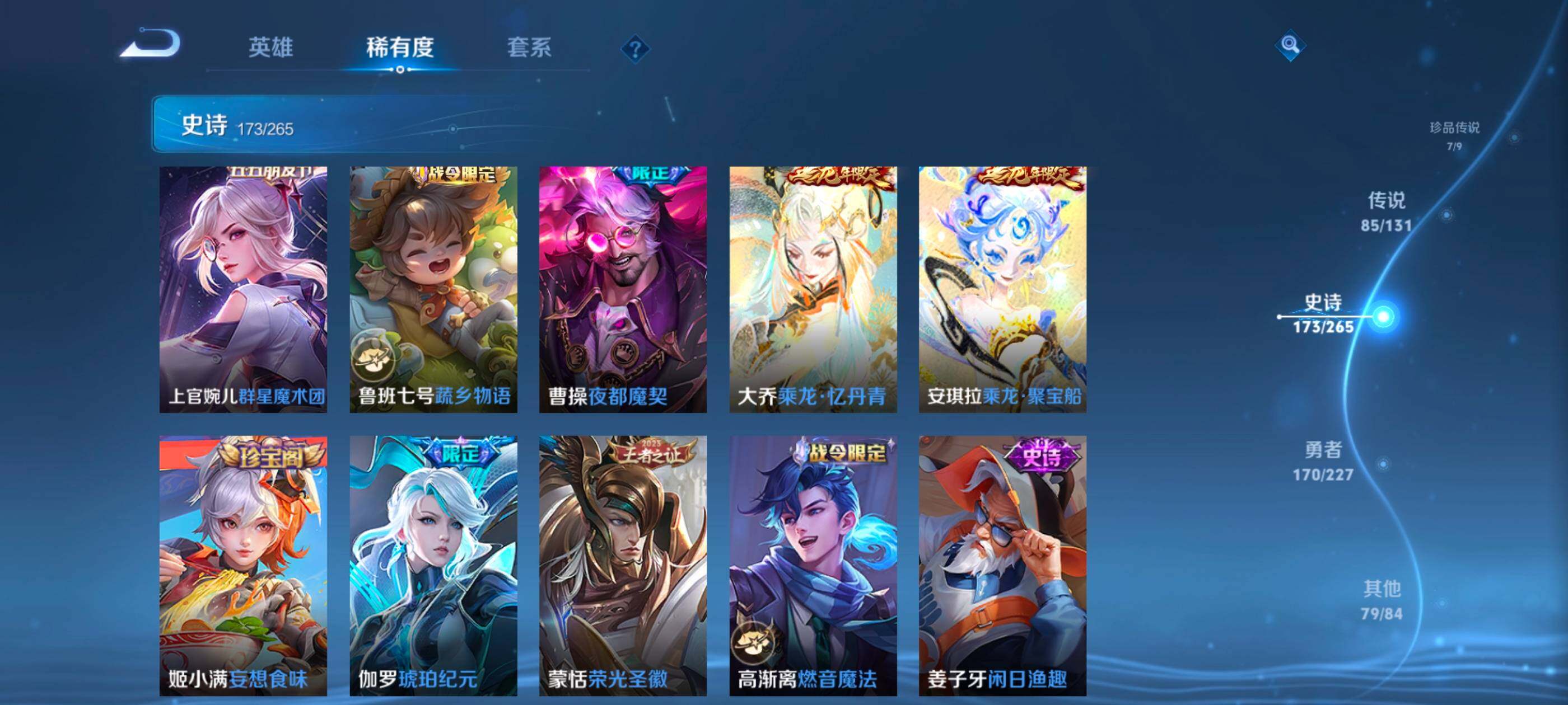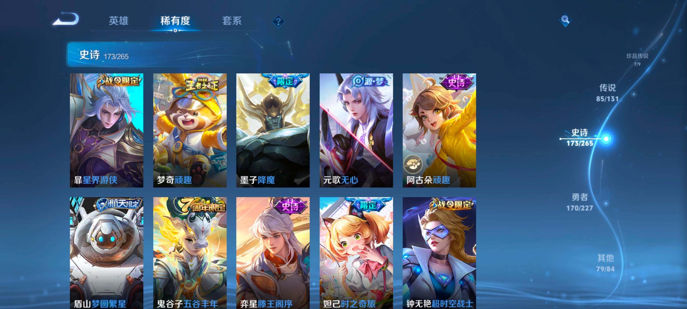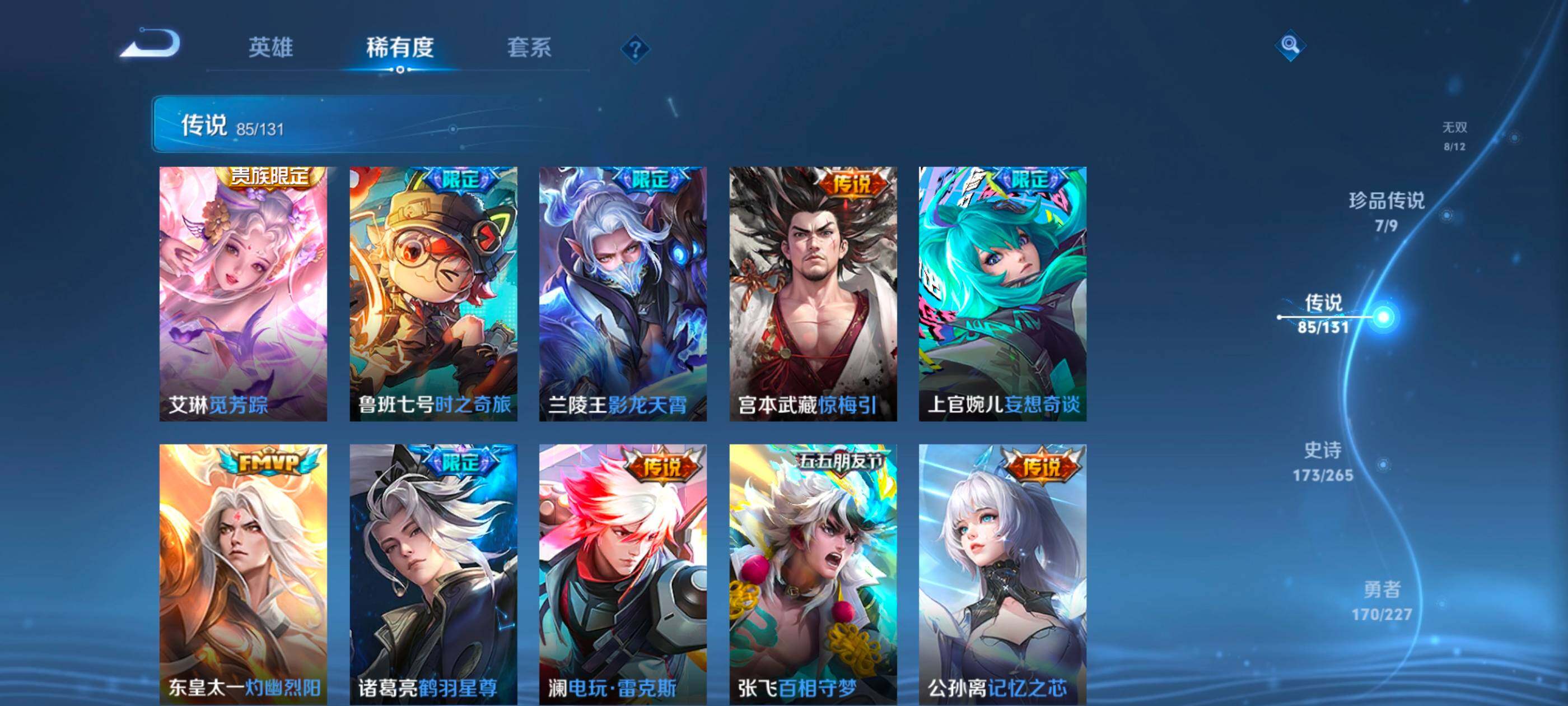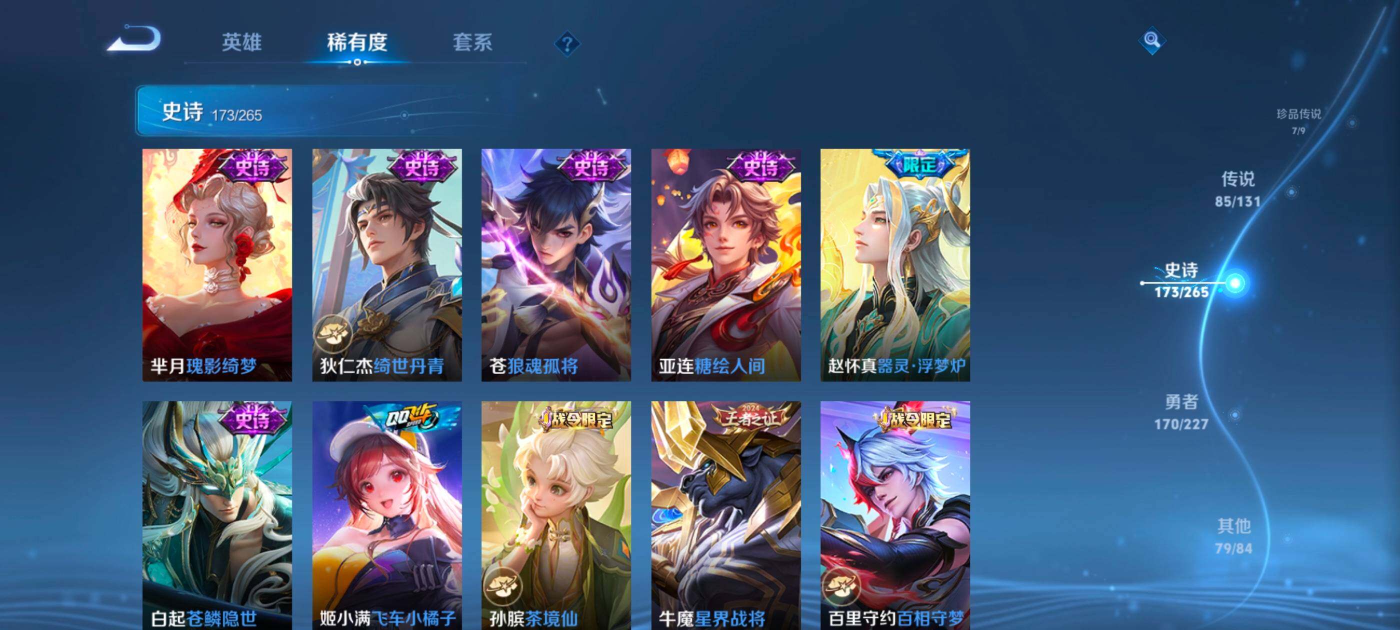 安卓q-v12-最强王者段位-128英雄-526皮肤-4典藏皮肤-1典藏英雄-8无双-7珍品传说-85传说-173史诗 【英雄全皮】:刘禅全皮,达摩全皮,司马懿全皮,姜子牙全皮,孙权全皮,苍全皮,鬼谷子全皮,诸葛亮全皮,李信全皮,亚连全皮,大司命全皮,蒙恬全皮,澜全皮,夏洛特全皮,空空儿全皮,影全皮,少司缘全皮 【荣耀典藏】:武则天英雄,武则天倪克斯神谕,李白鸣剑曳影,诸葛亮星域神启,伽罗最初的交响 【无双皮肤】:瑶真我赫兹,李白碎月剑心,小乔时之魔女,韩信群星魔术团,甄姬雪境奇遇,曜器灵螭龙剑,诸葛亮天机白泽,铠神罪 【珍品传说】:马可波罗怪盗基德,鲁班七号江户川柯南,孙策时之奇旅,嫦娥器灵落星盏,张飞兔狲蓬尾,瑶大耳狗之梦,安琪拉酷洛米之心 【传说皮肤】:杨戬纵目迁山,后羿神树通天,曹操万灵伏威,干将莫邪千山共赴,元歌诡秘之主,大司命死亡执政官,司马懿九山相柳,公孙离云诺千山,西施续相思,杨玉环星之鸣奏,后羿千劫归真,司空震愿照山河定,女娲愿照千秋盛,妲己愿照众生和,澜愿照九州拓,蔡文姬愿照福禄聚,虞姬愿照岁时盈,云缨幻光神呛,裴擒虎祥瑞亨通,嬴政玄雷天君,王昭君映山客,桑启鸣野蒿,庄周牧神诗旅,亚连落雪白狼,吕布曦玄引,貂蝉曦玄引,孙尚香乘龙问璇玑,孙策乘龙淬吴钩,赵云乘龙铭钟鼎,澜逐花归海,艾琳觅芳踪,鲁班七号时之奇旅,兰陵王影龙天霄,宫本武藏惊梅引,上官婉儿妄想奇谈,东皇太一灼幽烈阳,诸葛亮鹤羽星尊,澜电玩雷克斯,张飞百相守梦,公孙离记忆之芯,夏洛特浮生妄,花木兰燃星之曲,孙悟空齐天大圣,小乔山海琳琅生,李信山海炽霜斩,吕布怒海麟威,李白诗剑行,不知火舞绯月行,王昭君星穹之声,百里守约碎云,孙尚香音你闪耀,马可波罗深海之息,马超无双飞将,露娜启示之音,蔡文姬花朝如约,孙尚香异界灵契,赵云淬星耀世,王昭君乞巧织情,西施游龙清影,周瑜音你心动,小乔音你心动,李元芳飞鸢探春,公孙离祈雪灵祝,诸葛亮时雨天司,铠绛天战甲,镜炽阳神光,虞姬启明星使,曜云鹰飞将,李信一念神魔,刘备时之恋人,貂蝉猫影幻舞,张良黄金白羊座,干将莫邪久胜战神,虞姬云霓雀翎,达摩黄金狮子座,花木兰冠军飞将,梦奇胖达荣荣,后羿黄金射手座,杨戬永曜之星,诸葛亮武陵仙君,貂蝉仲夏夜之梦,孙尚香末日机甲,宫本武藏地狱之眼,孙悟空地狱火,武则天海洋之心 【限定皮肤】:白起狰,虞姬夏日便利店,姜子牙天穹之誓,李白谪仙醉月,狄仁杰阴阳师,虞姬凯尔特女王,小乔山海琳琅生,赵云皇家上将,赵云引擎之心,赵云百木心呛,墨子降魔,妲己时之彼端,妲己时之奇旅,嬴政优雅恋人,孙尚香异界灵契,鲁班七号时之奇旅,阿轲迷踪丽影,钟无艳王者之锤,钟无艳超时空战士,扁鹊炼金王,扁鹊奇幻香踪,芈月白晶晶,吕布御风骁将,元歌无心,甄姬游园惊梦,甄姬落雪兰心,典韦穷奇,马可波罗暗影游猎,马可波罗深海之息,马可波罗山海玄木吟,狄仁杰魔术师,狄仁杰万华元夜,达摩星际陆战队,达摩沙漠行僧,项羽海滩派对,老夫子醍醐杖,关羽冰锋战神,貂蝉逐梦之音,程咬金演武夺筹,露娜一生所爱,露娜启示之音,韩信飞衡,韩信傲雪梅呛,王昭君星穹之声,兰陵王影龙天霄,兰陵王金庭之子,花木兰燃星之曲,不知火舞绯月行,亚瑟潮玩骑士王,孙悟空至尊宝,孙悟空大圣娶亲,孙悟空齐天大圣,牛魔御旌,后羿辉光之辰,后羿圣弓游侠,刘备百相守梦,张飞百相守梦,李元芳云中旅人,虞姬启明星使,钟馗驱傩正仪,杨玉环遇见飞天,杨戬永曜之星,杨戬潮玩骑兵,干将莫邪冰霜恋舞曲,雅典娜单词大作战,雅典娜黎明之约,蔡文姬奇迹圣诞,蔡文姬繁星吟游,太乙真人饕餮,鬼谷子原初探秘者,鬼谷子五谷丰年,诸葛亮武陵仙君,诸葛亮时雨天司,诸葛亮鹤羽星尊,大乔白鹤梁神女,黄忠烈魂,苏烈千军破阵,百里玄策原初追逐者,弈星混沌棋,梦奇顽趣,公孙离蜜橘之夏,公孙离祈雪灵祝,沈梦溪大漠名商,明世隐疑决卦,裴擒虎李小龙,裴擒虎擒涛扼浪,狂铁御狮,米莱狄御霄,瑶山海碧波行,云中君纤云弄巧,李信山海炽霜斩,伽罗天狼溯光者,盾山梦圆繁星,猪八戒西部大镖客,上官婉儿天狼绘梦者,上官婉儿妄想奇谈,嫦娥暖冬兔眠,蒙犽狂想玩偶喵,桑启海盐诗旅,夏洛特浮生妄,暃星界游侠,张良古海寻踪,艾琳觅芳踪,蒙恬荣光圣徽,高渐离燃音魔法,妲己灵卜魔法,鬼谷子天穹祈灯,李白碎月剑心,伽罗琥珀纪元,姬小满妄想食味,小乔时之魔女,大乔乘龙忆丹青,安琪拉乘龙聚宝船,孙尚香乘龙问璇玑,孙策乘龙淬吴钩,赵云乘龙铭钟鼎,吕布曦玄引,貂蝉曦玄引,亚连落雪白狼,沈梦溪龙舞盛年,曹操夜都魔契,鲁班七号蔬乡物语,李元芳蔬乡物语,刘邦剑破天穹,上官婉儿群星魔术团,韩信群星魔术团,镜青焰无极,项羽苍威无极 【年限皮肤】:杨戬永曜之星,后羿辉光之辰,公孙离祈雪灵祝,吕布御风骁将,诸葛亮时雨天司,韩信飞衡,马超神威,黄忠烈魂,瑶山海碧波行,马可波罗山海玄木吟,李信山海炽霜斩,小乔山海琳琅生,大乔乘龙忆丹青,安琪拉乘龙聚宝船,孙尚香乘龙问璇玑,孙策乘龙淬吴钩,赵云乘龙铭钟鼎 【赛季限定】:扁鹊炼金王,白起狰,典韦穷奇,狄仁杰万华元夜,达摩沙漠行僧,老夫子醍醐杖,程咬金演武夺筹,兰陵王金庭之子,张良古海寻踪,牛魔御旌,李元芳云中旅人,虞姬凯尔特女王,钟馗驱傩正仪,雅典娜黎明之约,太乙真人饕餮,鬼谷子原初探秘者,苏烈千军破阵,百里玄策原初追逐者,弈星混沌棋,梦奇顽趣,沈梦溪大