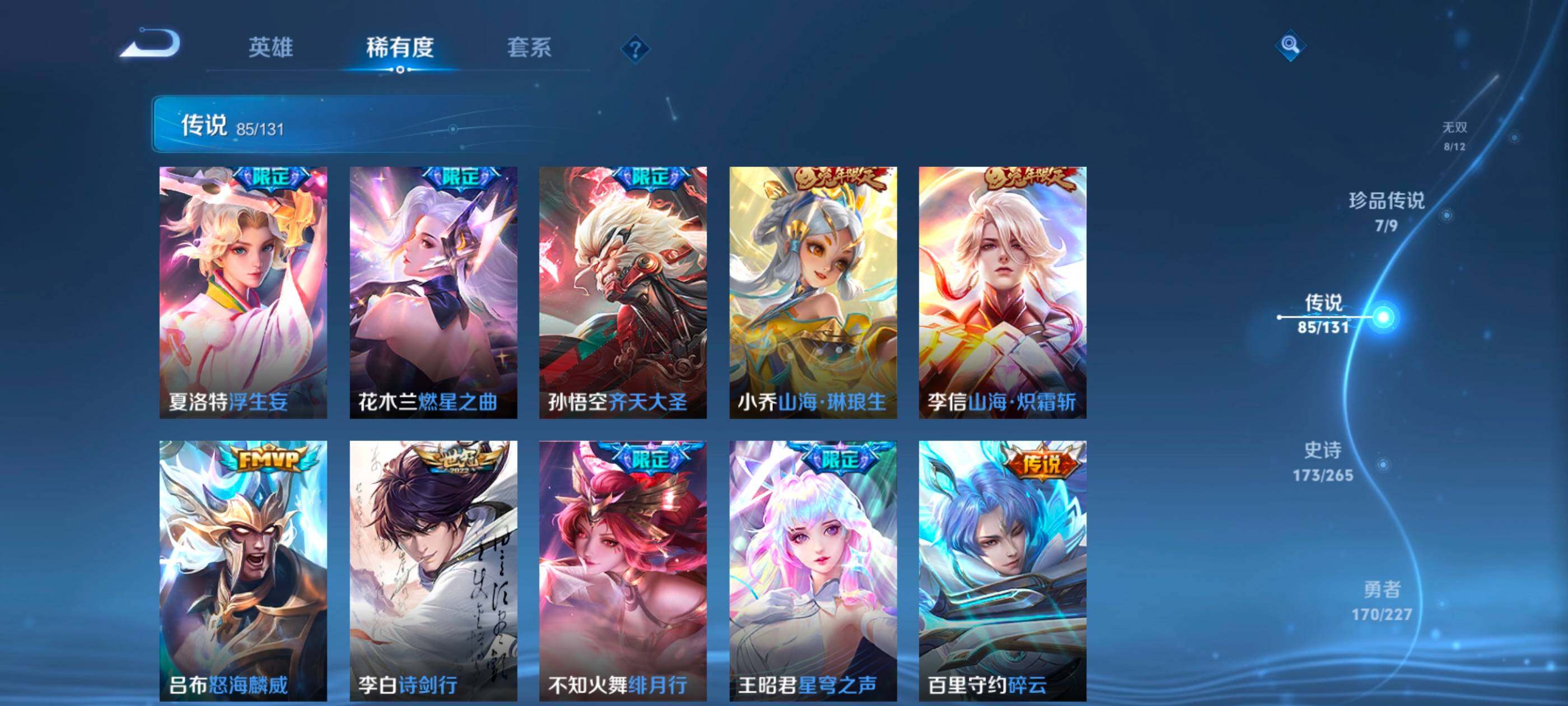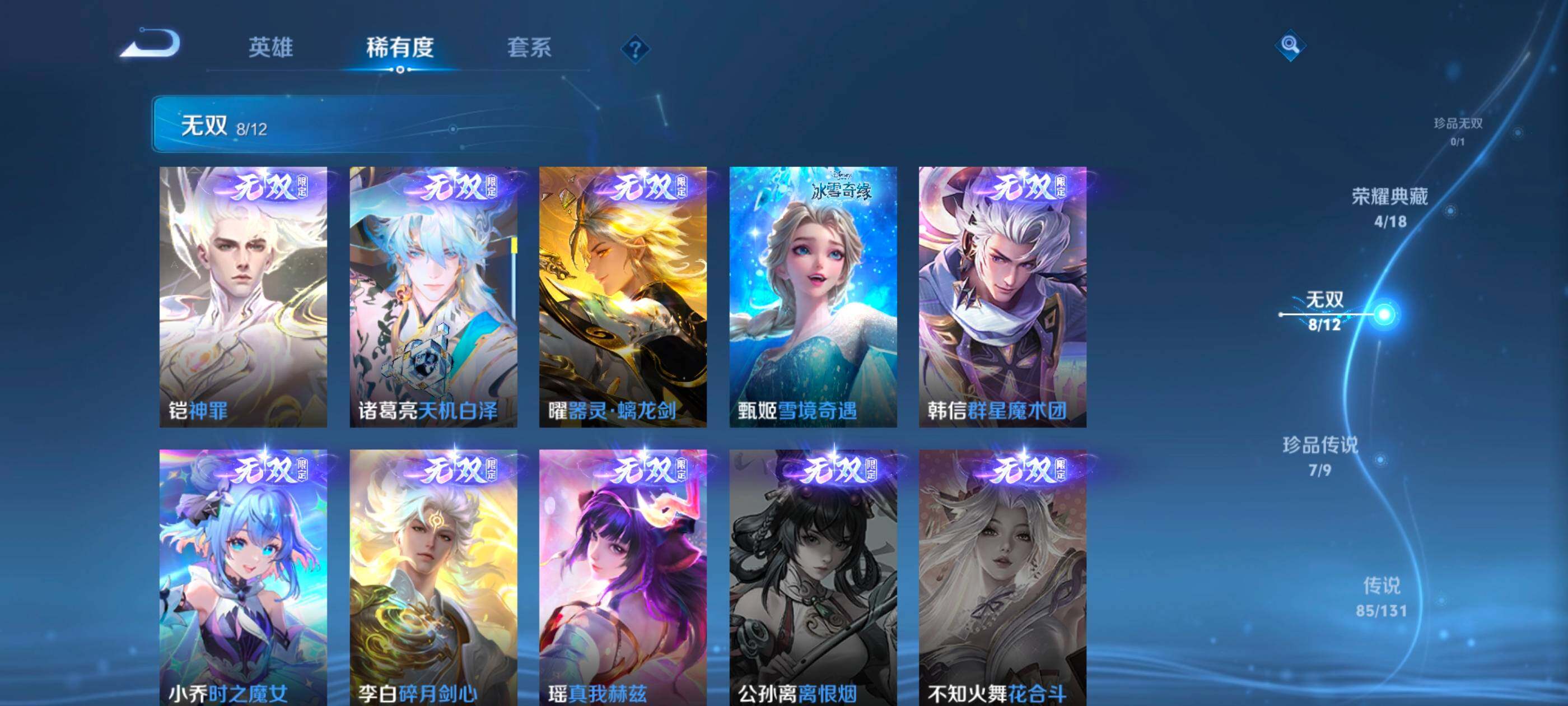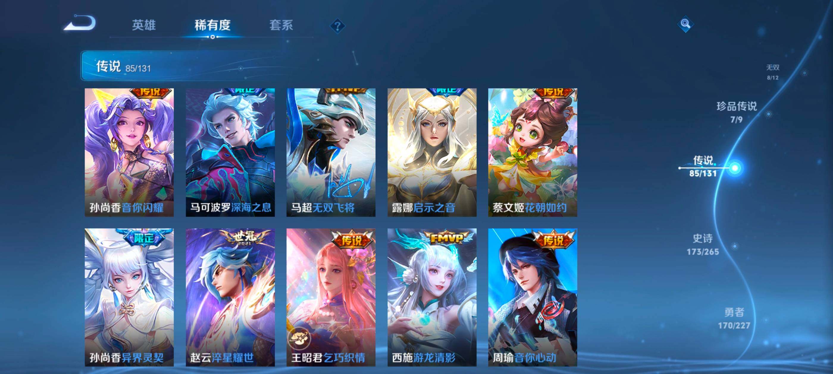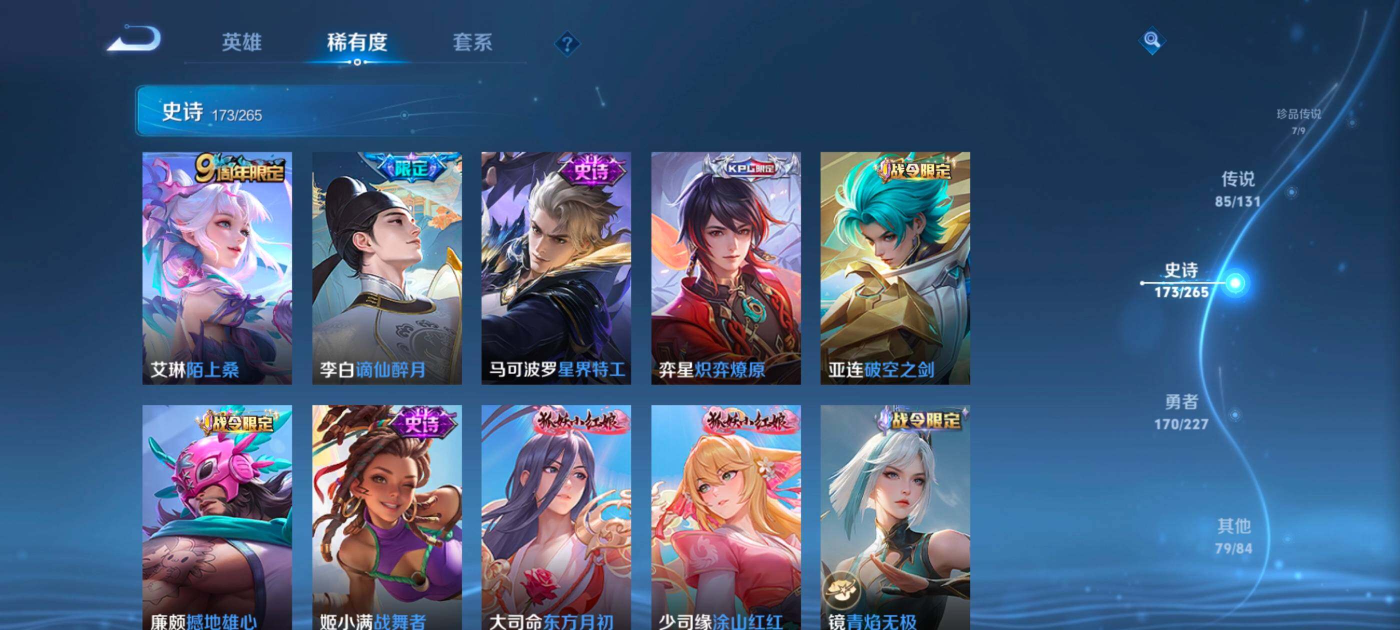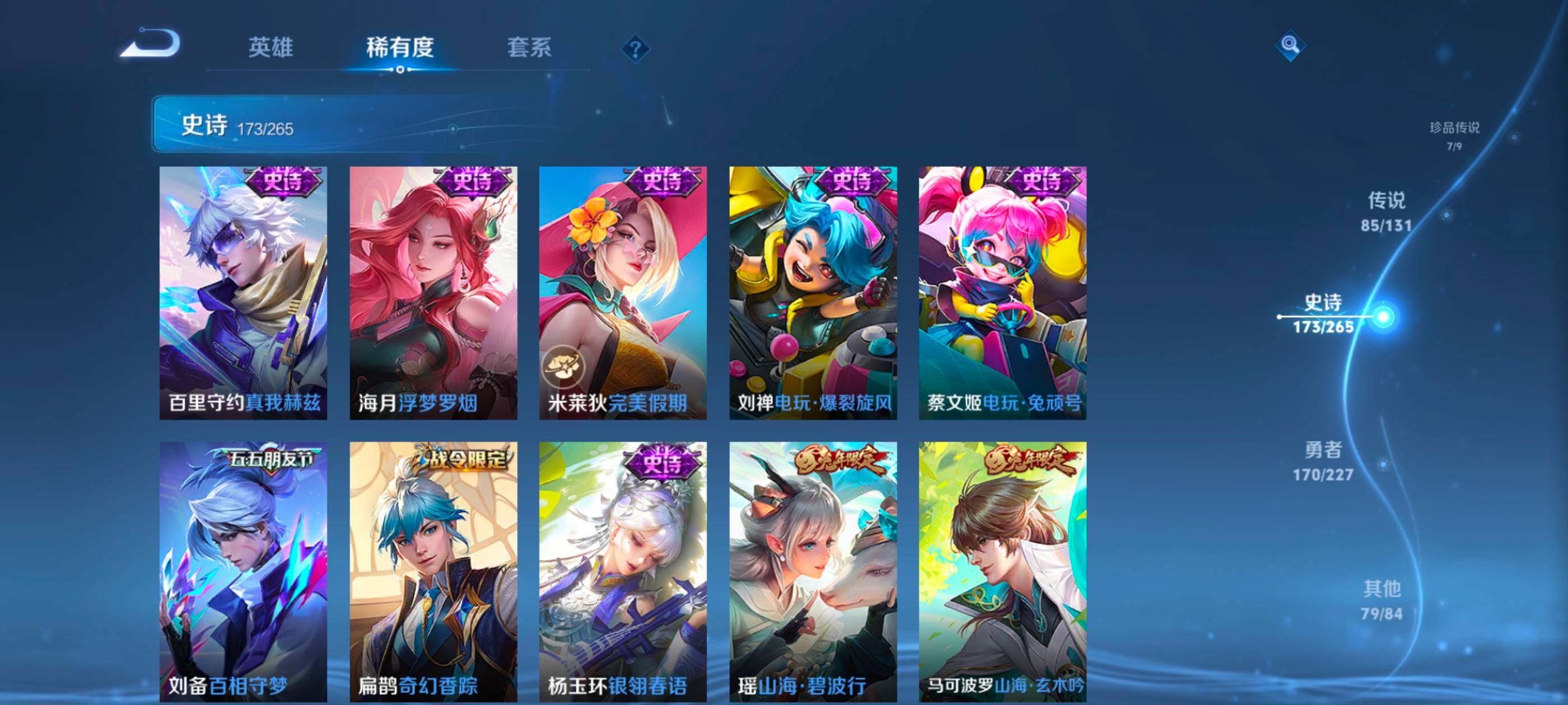 安卓q-v12-最强王者段位-128英雄-526皮肤-4典藏皮肤-1典藏英雄-8无双-7珍品传说-85传说-173史诗 【英雄全皮】:刘禅全皮,达摩全皮,司马懿全皮,姜子牙全皮,孙权全皮,苍全皮,鬼谷子全皮,诸葛亮全皮,李信全皮,亚连全皮,大司命全皮,蒙恬全皮,澜全皮,夏洛特全皮,空空儿全皮,影全皮,少司缘全皮 【荣耀典藏】:武则天英雄,武则天倪克斯神谕,李白鸣剑曳影,诸葛亮星域神启,伽罗最初的交响 【无双皮肤】:瑶真我赫兹,李白碎月剑心,小乔时之魔女,韩信群星魔术团,甄姬雪境奇遇,曜器灵螭龙剑,诸葛亮天机白泽,铠神罪 【珍品传说】:马可波罗怪盗基德,鲁班七号江户川柯南,孙策时之奇旅,嫦娥器灵落星盏,张飞兔狲蓬尾,瑶大耳狗之梦,安琪拉酷洛米之心 【传说皮肤】:杨戬纵目迁山,后羿神树通天,曹操万灵伏威,干将莫邪千山共赴,元歌诡秘之主,大司命死亡执政官,司马懿九山相柳,公孙离云诺千山,西施续相思,杨玉环星之鸣奏,后羿千劫归真,司空震愿照山河定,女娲愿照千秋盛,妲己愿照众生和,澜愿照九州拓,蔡文姬愿照福禄聚,虞姬愿照岁时盈,云缨幻光神呛,裴擒虎祥瑞亨通,嬴政玄雷天君,王昭君映山客,桑启鸣野蒿,庄周牧神诗旅,亚连落雪白狼,吕布曦玄引,貂蝉曦玄引,孙尚香乘龙问璇玑,孙策乘龙淬吴钩,赵云乘龙铭钟鼎,澜逐花归海,艾琳觅芳踪,鲁班七号时之奇旅,兰陵王影龙天霄,宫本武藏惊梅引,上官婉儿妄想奇谈,东皇太一灼幽烈阳,诸葛亮鹤羽星尊,澜电玩雷克斯,张飞百相守梦,公孙离记忆之芯,夏洛特浮生妄,花木兰燃星之曲,孙悟空齐天大圣,小乔山海琳琅生,李信山海炽霜斩,吕布怒海麟威,李白诗剑行,不知火舞绯月行,王昭君星穹之声,百里守约碎云,孙尚香音你闪耀,马可波罗深海之息,马超无双飞将,露娜启示之音,蔡文姬花朝如约,孙尚香异界灵契,赵云淬星耀世,王昭君乞巧织情,西施游龙清影,周瑜音你心动,小乔音你心动,李元芳飞鸢探春,公孙离祈雪灵祝,诸葛亮时雨天司,铠绛天战甲,镜炽阳神光,虞姬启明星使,曜云鹰飞将,李信一念神魔,刘备时之恋人,貂蝉猫影幻舞,张良黄金白羊座,干将莫邪久胜战神,虞姬云霓雀翎,达摩黄金狮子座,花木兰冠军飞将,梦奇胖达荣荣,后羿黄金射手座,杨戬永曜之星,诸葛亮武陵仙君,貂蝉仲夏夜之梦,孙尚香末日机甲,宫本武藏地狱之眼,孙悟空地狱火,武则天海洋之心 【限定皮肤】:白起狰,虞姬夏日便利店,姜子牙天穹之誓,李白谪仙醉月,狄仁杰阴阳师,虞姬凯尔特女王,小乔山海琳琅生,赵云皇家上将,赵云引擎之心,赵云百木心呛,墨子降魔,妲己时之彼端,妲己时之奇旅,嬴政优雅恋人,孙尚香异界灵契,鲁班七号时之奇旅,阿轲迷踪丽影,钟无艳王者之锤,钟无艳超时空战士,扁鹊炼金王,扁鹊奇幻香踪,芈月白晶晶,吕布御风骁将,元歌无心,甄姬游园惊梦,甄姬落雪兰心,典韦穷奇,马可波罗暗影游猎,马可波罗深海之息,马可波罗山海玄木吟,狄仁杰魔术师,狄仁杰万华元夜,达摩星际陆战队,达摩沙漠行僧,项羽海滩派对,老夫子醍醐杖,关羽冰锋战神,貂蝉逐梦之音,程咬金演武夺筹,露娜一生所爱,露娜启示之音,韩信飞衡,韩信傲雪梅呛,王昭君星穹之声,兰陵王影龙天霄,兰陵王金庭之子,花木兰燃星之曲,不知火舞绯月行,亚瑟潮玩骑士王,孙悟空至尊宝,孙悟空大圣娶亲,孙悟空齐天大圣,牛魔御旌,后羿辉光之辰,后羿圣弓游侠,刘备百相守梦,张飞百相守梦,李元芳云中旅人,虞姬启明星使,钟馗驱傩正仪,杨玉环遇见飞天,杨戬永曜之星,杨戬潮玩骑兵,干将莫邪冰霜恋舞曲,雅典娜单词大作战,雅典娜黎明之约,蔡文姬奇迹圣诞,蔡文姬繁星吟游,太乙真人饕餮,鬼谷子原初探秘者,鬼谷子五谷丰年,诸葛亮武陵仙君,诸葛亮时雨天司,诸葛亮鹤羽星尊,大乔白鹤梁神女,黄忠烈魂,苏烈千军破阵,百里玄策原初追逐者,弈星混沌棋,梦奇顽趣,公孙离蜜橘之夏,公孙离祈雪灵祝,沈梦溪大漠名商,明世隐疑决卦,裴擒虎李小龙,裴擒虎擒涛扼浪,狂铁御狮,米莱狄御霄,瑶山海碧波行,云中君纤云弄巧,李信山海炽霜斩,伽罗天狼溯光者,盾山梦圆繁星,猪八戒西部大镖客,上官婉儿天狼绘梦者,上官婉儿妄想奇谈,嫦娥暖冬兔眠,蒙犽狂想玩偶喵,桑启海盐诗旅,夏洛特浮生妄,暃星界游侠,张良古海寻踪,艾琳觅芳踪,蒙恬荣光圣徽,高渐离燃音魔法,妲己灵卜魔法,鬼谷子天穹祈灯,李白碎月剑心,伽罗琥珀纪元,姬小满妄想食味,小乔时之魔女,大乔乘龙忆丹青,安琪拉乘龙聚宝船,孙尚香乘龙问璇玑,孙策乘龙淬吴钩,赵云乘龙铭钟鼎,吕布曦玄引,貂蝉曦玄引,亚连落雪白狼,沈梦溪龙舞盛年,曹操夜都魔契,鲁班七号蔬乡物语,李元芳蔬乡物语,刘邦剑破天穹,上官婉儿群星魔术团,韩信群星魔术团,镜青焰无极,项羽苍威无极 【年限皮肤】:杨戬永曜之星,后羿辉光之辰,公孙离祈雪灵祝,吕布御风骁将,诸葛亮时雨天司,韩信飞衡,马超神威,黄忠烈魂,瑶山海碧波行,马可波罗山海玄木吟,李信山海炽霜斩,小乔山海琳琅生,大乔乘龙忆丹青,安琪拉乘龙聚宝船,孙尚香乘龙问璇玑,孙策乘龙淬吴钩,赵云乘龙铭钟鼎 【赛季限定】:扁鹊炼金王,白起狰,典韦穷奇,狄仁杰万华元夜,达摩沙漠行僧,老夫子醍醐杖,程咬金演武夺筹,兰陵王金庭之子,张良古海寻踪,牛魔御旌,李元芳云中旅人,虞姬凯尔特女王,钟馗驱傩正仪,雅典娜黎明之约,太乙真人饕餮,鬼谷子原初探秘者,苏烈千军破阵,百里玄策原初追逐者,弈星混沌棋,梦奇顽趣,沈梦溪大