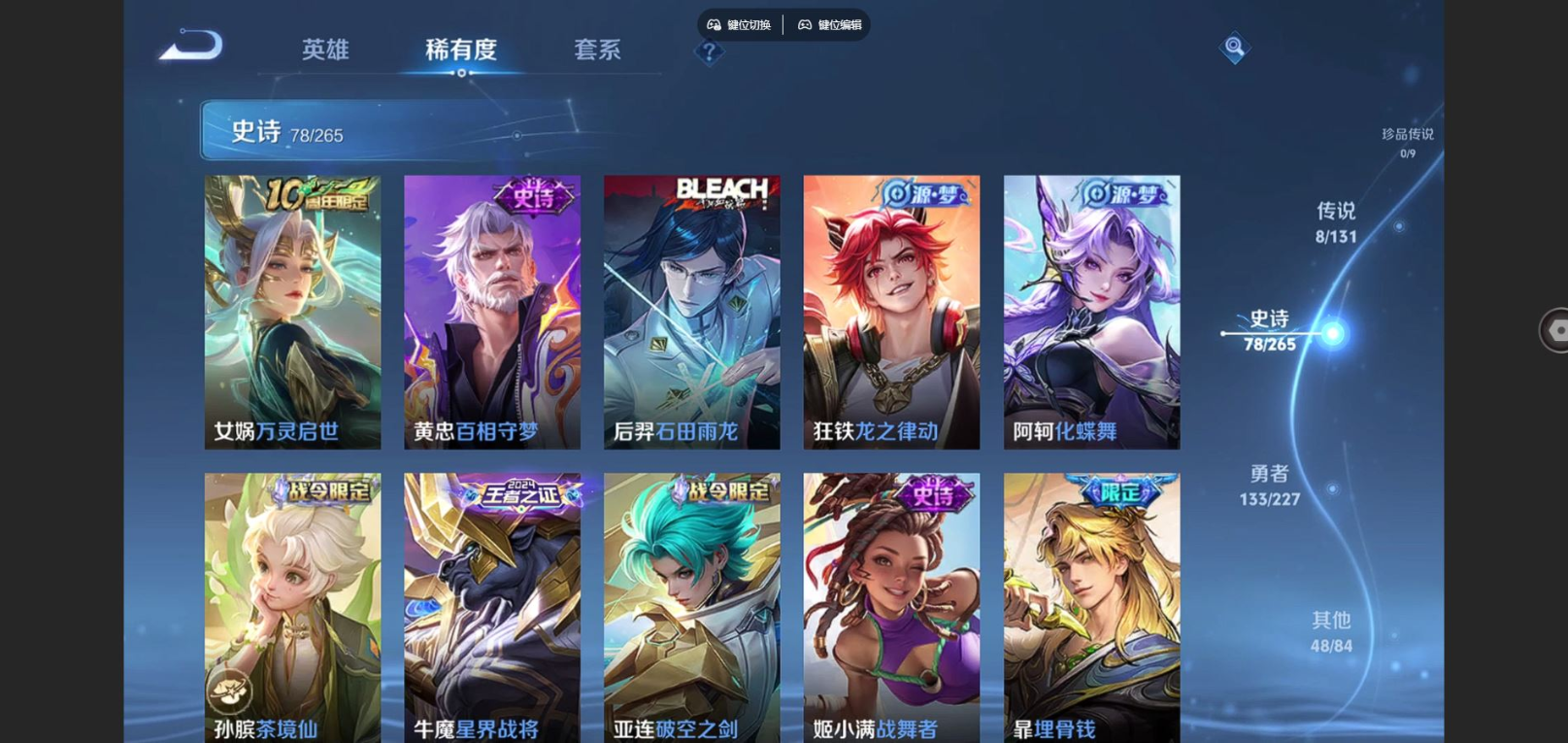2320124-125英雄-268皮肤v7-268皮肤1典藏8传说 发育路31段 1星传说 时之思念 【典藏】 神鉴启示录 【传说】 战鼓燎原 逐花归海 铠琥珀纪元 马超琥珀纪元 惊梅引 神树通天 鸣野蒿 时之恋人男 【热门】万灵启世 冰封战神 飞衡 真爱至上 一生所爱 拒霜思 匿光侦查者 玉兔公主 猎兽之王 蓝屏警告 原初追逐者 黎明之约 末日机甲奥 电玩小子 黄忠百相守梦 战舞者 燃