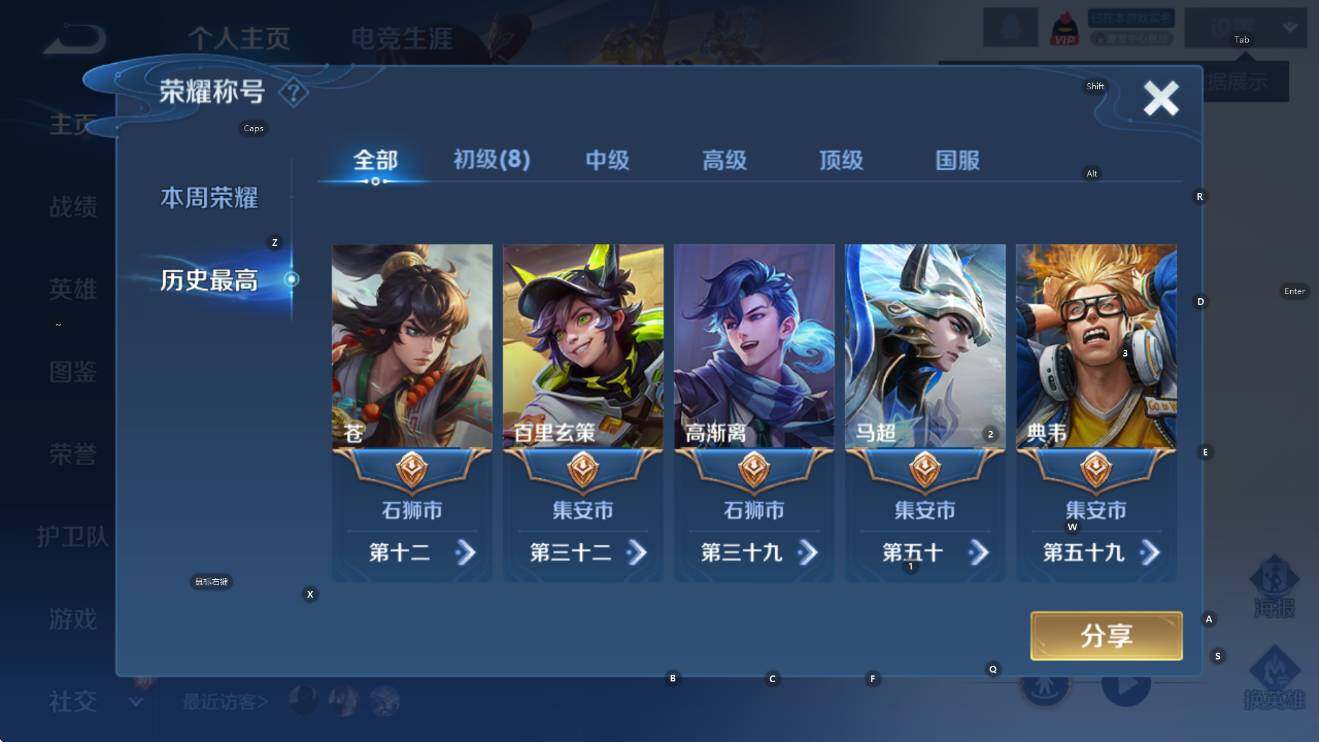 125英雄-184皮肤-贵族6/皮肤184/典藏1/传说5/史诗41/英雄125/全息碎影 孙悟空/愿照·九州拓 澜/幻光神呛 云缨/鸣野蒿 桑启/无双飞将 马超/黄金狮子座 达摩/天穹之誓 姜子牙/阴阳师 狄仁杰/皇家上将 赵云/重明 芈月/猎兽之王 吕布/云间偶戏 元歌/无心 元歌/穷奇 典韦/蓝屏警告 典韦/暗影游猎 马可波罗/魔术师 狄仁杰/万华元夜 狄仁杰/海滩派对 项羽/醍醐杖 老夫子/演武夺筹 程咬金/