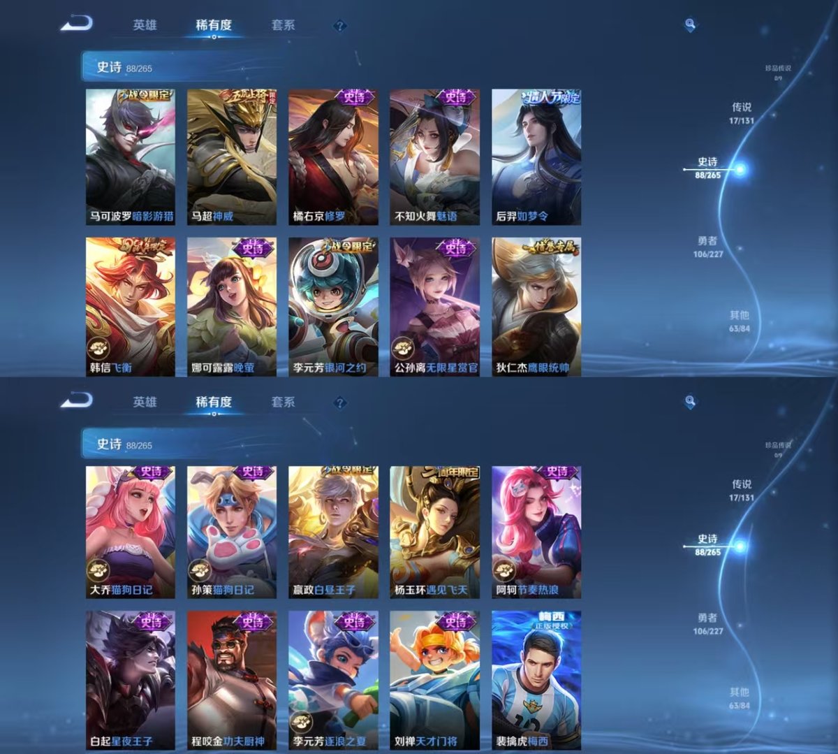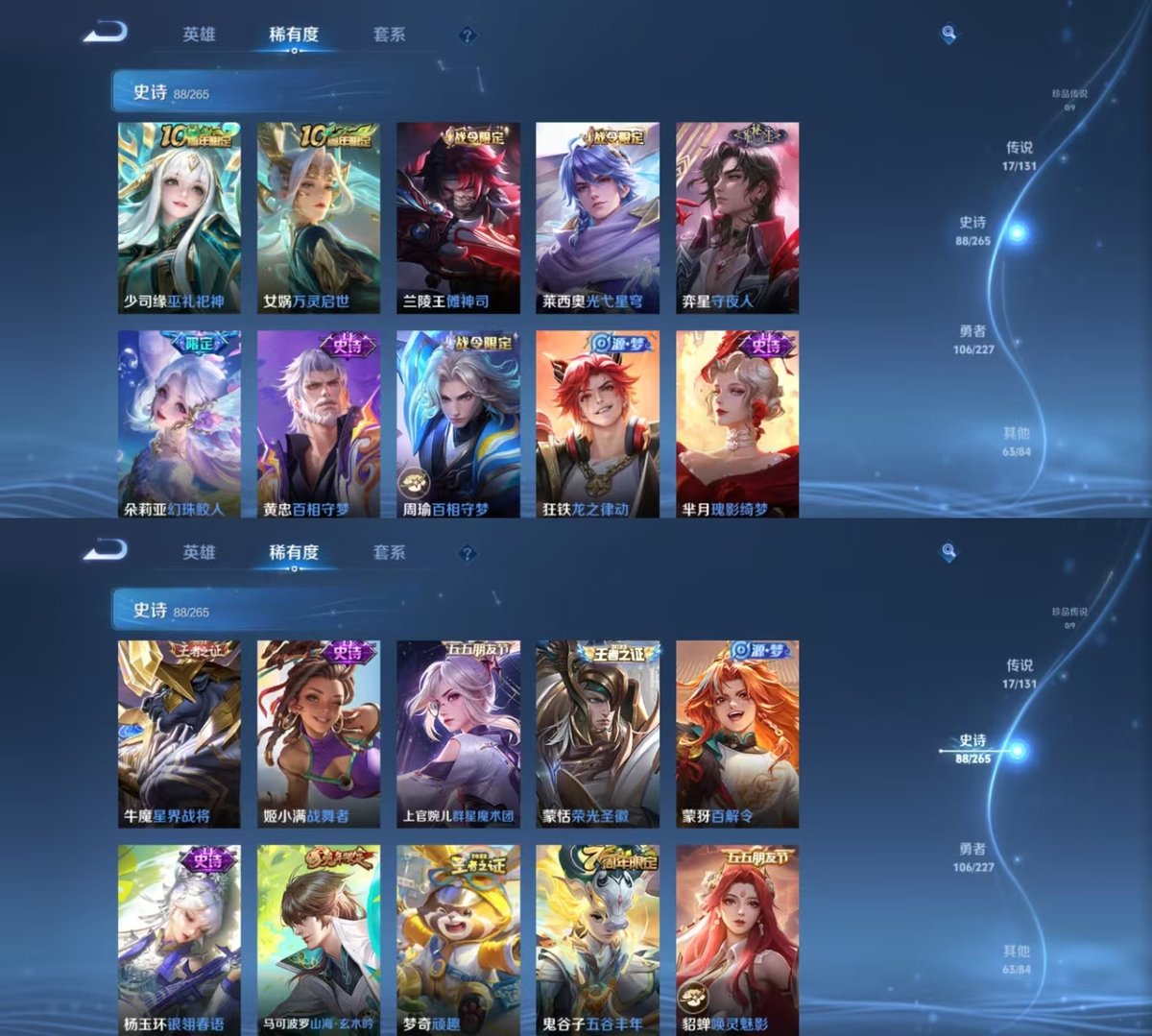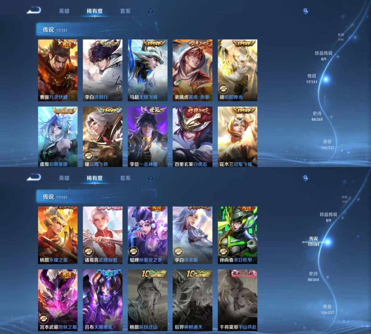 _2320605-实名:可修改贵族等级:v8英雄数:127皮肤数:276荣耀水晶:赤影疾锋无双皮:神罪传说皮:冠军飞将云鹰飞将炽阳神光一念神魔末日机甲-孙尚香仲夏夜之梦地狱之眼无双飞将万灵伏威限定皮:遇见飞天李小龙辉光之辰天魔缭乱神威永曜之星飞衡青春决赛季天狼狩猎者冰霜恋舞曲逐梦之影凤求凰白虎志瑞麟志梅西至尊宝一生所爱武陵仙君如梦令-后羿孙行者匿光追影者寅虎·赤拳五谷丰年诗剑行山海·玄木吟