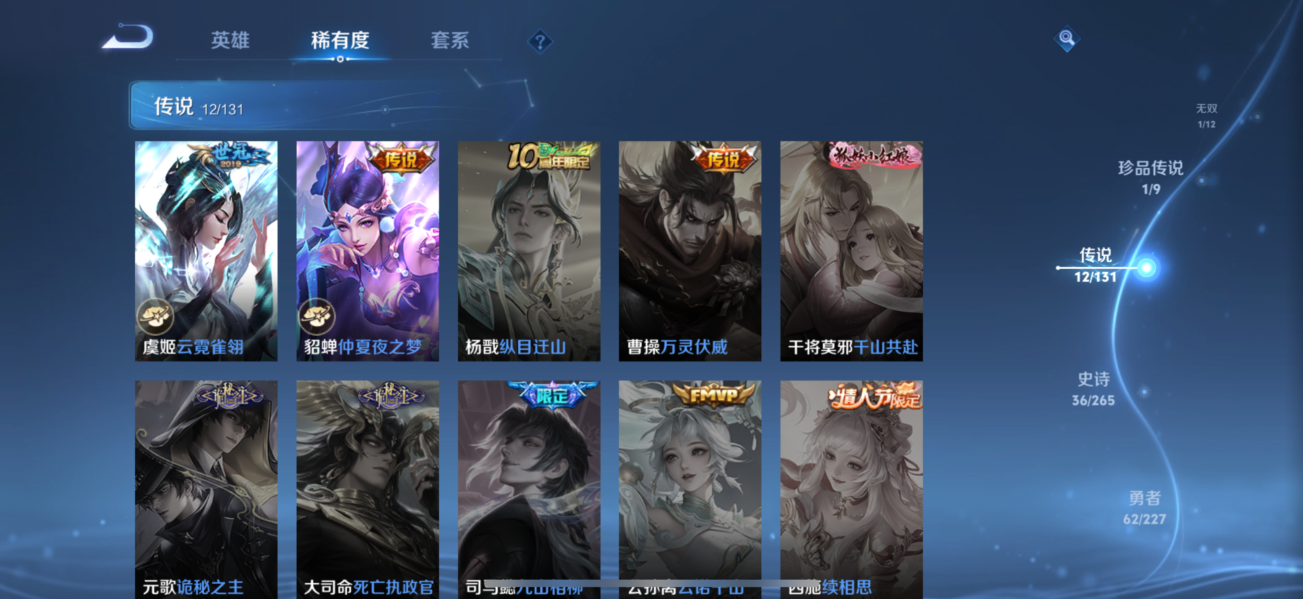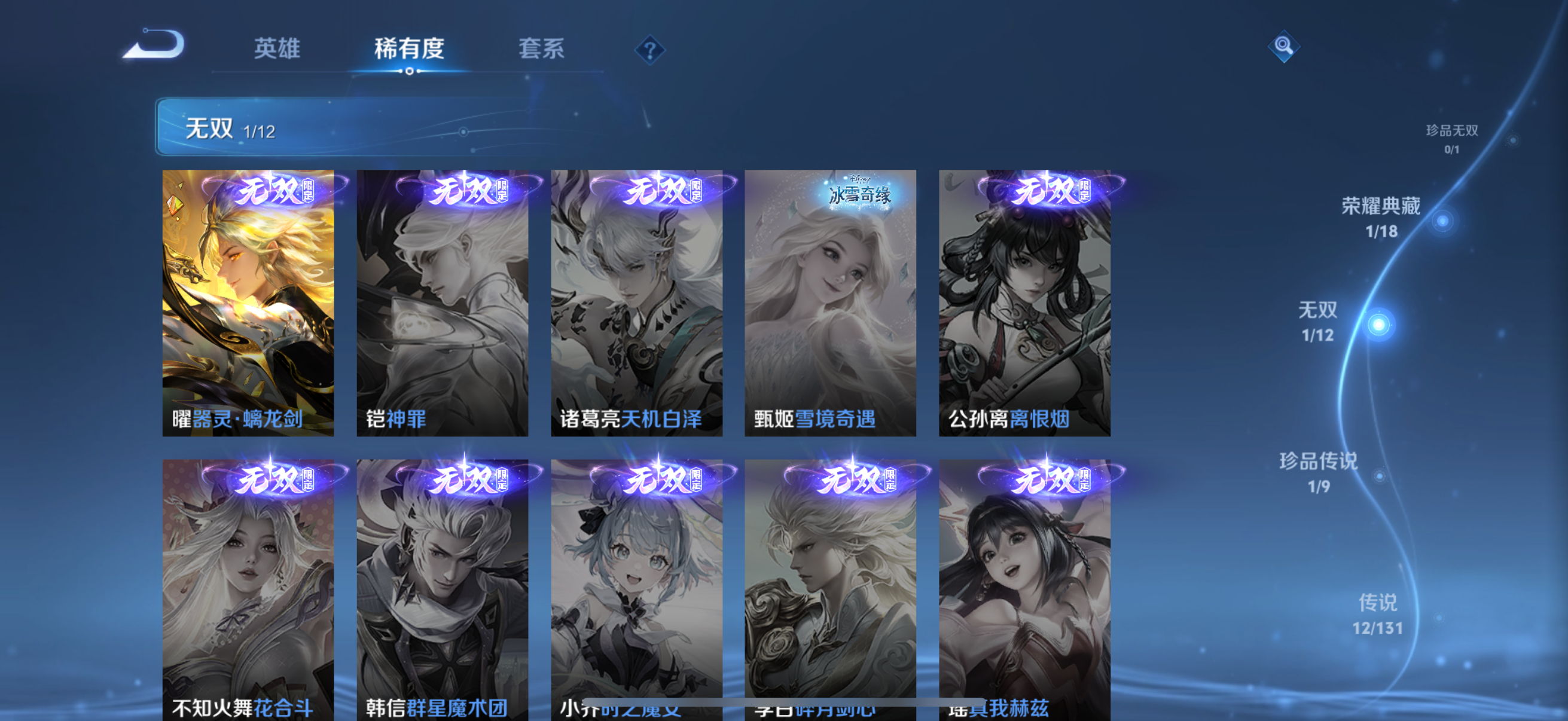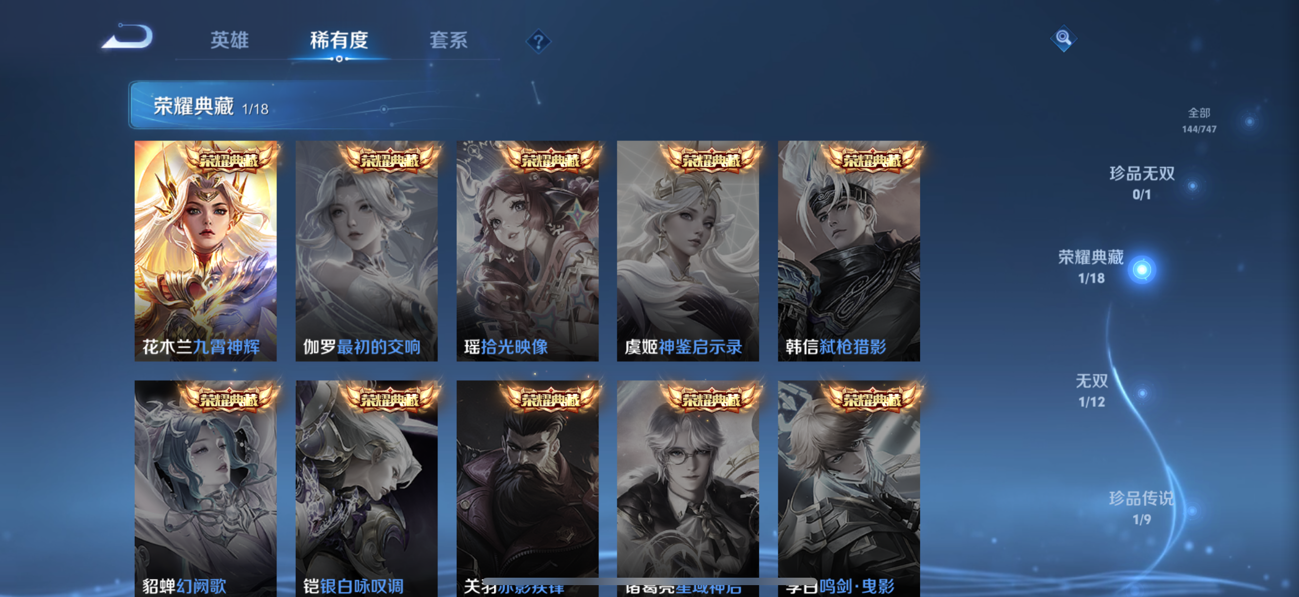 【王者荣耀】【txwz25169】珍品无双0 典藏1 无双1 珍品传说1 传说12 史诗36 英雄124 皮肤144 贵族7级 荣耀典藏:九霄神辉__无双皮肤:器灵·螭龙剑__珍品传说:黑崎一护__传说皮肤:鸣野蒿|炽阳神光|仲夏夜之梦|云霓雀翎|云鹰飞将|祈雪灵祝|霜月吟|战鼓燎原|幻光神呛|祥瑞亨通|愿照·九州拓|神树通天__稀有限定:超元猎域|古海寻踪|海滩派对|皇家上将|黎明之约|魔术师|擒涛扼浪|驱傩正仪|探海日志|醍醐杖|天穹祈灯|万华元夜|妄想食味|演武夺筹|疑决卦|阴阳师|冰冠公主|冰雪圆舞曲|德古拉伯爵|功夫厨神|鬼剑武藏|金属风暴|魅力维加斯|魅语|偶像歌手|圣诞狂欢|水果甜心|水晶猎龙者|天才门将|天秀·启明|鹰眼统帅|遇见神鹿|逐浪之夏|百里守约-百相守梦|老夫子-百相守梦|星界特工|噬灭天穹|敬我三分|顽岩魄|天穹之誓|千年之狐|孙尚香-时之恋人|舞动绿茵|星界战将|谧流熔炉|器灵·浮梦炉|化蝶舞|龙之律动|虚灵犬护|石田雨龙|逆浪荇歌|涂山容容|荣光之誓|万灵启世|鹤鸣心笺__优质皮肤:尼罗河女神|一千零一夜|创世神祝|木偶奇遇记|熊喵少女|露花倒影|碧珀绯影|秩序猎龙将|锦衣卫|冰刃幻境|维京掠夺者|启蛰|战争骑士|芝加哥教父|街头旋风|绝影神呛|幸存者|赤焰之缨|精灵王|花见巫女|东海龙王|蔷薇王座|灼热之刃|精准探案法|异域舞娘|精灵公主|万圣前夜|潮玩探月行|瓷语鉴心|秘密基地|次元突破|鲨炮海盗猫|丁香结|幻想奇妙夜|兔女郎|死亡骑士|黄金武士|少女阿狸|天使之翼|玩偶对对碰|宫本武藏-未来纪元|忍·炎影|街头霸王|幻泉雾影|白色死神|白执事|西施-雪境奇遇|灵卦秘语|景韶洛都|浪漫序章|掌控之力|雾都夜雨|铁骨偃魂|龙腾万里|乱世虎臣|西施-归虚梦演|孙悟空-西部大镖客|牛魔-西部大镖客|龙舞盛年|乓乓大师|盾山-圆桌骑士|曜-归虚梦演|沉稳之力|苍林狼骑|蔚蓝守将|妄想特派|玫蓝誓约|命运加冕|小满鸭|死霸装|哪吒-罗小黑战记|逐霄之志__贵族等级:贵族7级__王者段位:绝世王者