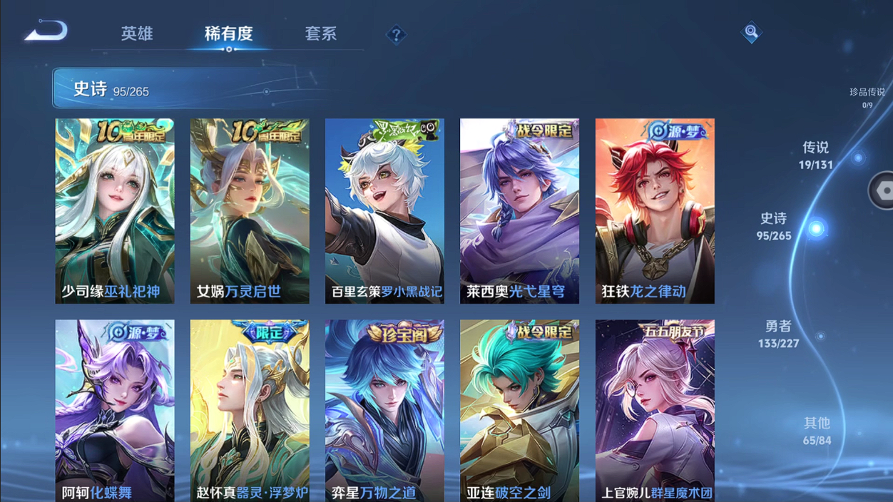 【王者荣耀】【lywz24293】珍品无双0 典藏1 无双1 珍品传说0 传说19 史诗95 英雄127 皮肤314 贵族8级 荣耀典藏:鸣剑·曳影__无双皮肤:器灵·螭龙剑__传说皮肤:鸣野蒿|炽阳神光|启明星使|地狱之眼|仲夏夜之梦|刘备-时之恋人|云鹰飞将|浮生妄|鹤羽星尊|白虎志|凤求凰|时雨天司|武陵仙君|山海·苍雷引|幻光神呛|祥瑞亨通|愿照·九州拓|云诺千山|神树通天__稀有限定:大圣娶亲|引擎之心|飞衡|蔷薇恋人|神威|猪悟能|李小龙|梁祝|拒霜思|暗影游猎|白昼王子|百解令|冰锋战神|大漠名商|地狱燃心|繁星吟游|古海寻踪|海滩派对|海盐诗旅|航海奇遇记|胡桃异想国|皇家上将|混沌棋|剑破天穹|金庭之子|镜-真我赫兹|狂想玩偶喵|蓝屏警告|迷踪丽影|魔术师|花木兰-默契交锋|奇幻香踪|千军破阵|擒涛扼浪|驱傩正仪|燃音魔法|沙漠行僧|朔风刀|探海日志|醍醐杖|天狼溯光者|天穹祈灯|玩趣恶龙|万华元夜|五谷丰年|纤云弄巧|星界游侠|星空之诺|演武夺筹|疑决卦|阴阳师|银河之约|遇见飞天|御旌|御銮|御狮|原初追逐者|云间偶戏|暗夜贵公子|暗夜猫娘|暗隐猎兽者|暗渊魔法|缤纷独角兽|冰冠公主|冰雪圆舞曲|乘风破浪|大乔-猫狗日记|德古拉伯爵|地狱岩魂|电玩·爆裂旋风|功夫厨神|鬼剑武藏|黄金分割率|箭羽风息|节奏热浪|金属风暴|李元芳-蔬乡物语|吕布-末日机甲|魅力维加斯|女仆咖啡|偶像歌手|青蛇|上官婉儿-群星魔术团|绅士熊喵|圣诞狂欢|圣诞恋歌|鲁班七号-蔬乡物语|水果甜心|水晶猎龙者|孙策-猫狗日记|天秀·启明|赵云-未来纪元|星夜王子|雪夜绮愿|摇滚巨星|鹰眼统帅|幽灵船长|月团寄思|钟无艳-超时空战士|逐浪之夏|紫霞仙子|噬灭天穹|敬我三分|破空之剑|虞姬-夏日便利店|修罗|曙光守护者|心灵战警|千年之狐|孙尚香-时之恋人|无限星赏官|舞动绿茵|特工魅影|心灵骇客|谧流熔炉|万物之道|器灵·浮梦炉|化蝶舞|御霄|狰|烛龙|原初探秘者|重明|云中旅人|单词大作战|朔望之晖|孙悟空-神迹守卫|达摩-星际陆战队|流音漫舞|暖冬·兔眠|灵卜魔法|夺宝奇兵|墨子-神迹守卫|落雪兰心|龙之律动|布丁狗之约|虚灵犬护|逆浪荇歌|光弋星穹|往忆晖光|百里玄策-罗小黑战记|荣光之誓|万灵启世|巫礼祀神|鹤鸣心笺__优质皮肤:一千零一夜|创世神祝|年年有余|孤猎|木偶奇遇记|午夜歌剧院|露花倒影|激情绿茵|海之征途|碧珀绯影|秩序猎龙将|锦衣卫|冰刃幻境|森|超能战警|英喵野望|维京掠夺者|海军大将|绯红之刃|踏雪寻梅|启蛰|战争骑士|生化警戒|威尼斯狂欢|第七人偶|潮流仙人|芝加哥教父|街头旋风|绝影神呛|地府判官|幸存者|赤焰之缨|福禄兄弟|隐刃|前尘|特种部队|精灵王|剑舞者|范海辛|星航指挥官|龙域领主|占星师|花间舞|魇语军师|极冰防御线|花见巫女|棒球奇才|东海龙王|蔷薇王座|灼热之刃|精准探案法|战争女神|霓裳曲|加勒比小姐|阿摩司公爵|异域舞娘|精灵公主|修竹墨客|万圣前夜|暗都幽影|功夫炙烤|潮玩探月行|瓷语鉴心|秘密基地|次元突破|鲨炮海盗猫|丁香结|虹云星官|科学大爆炸|守护之力|坚韧之力|幻乐之宴|功夫老勺|命运角斗场|海滩丽影|阿尔法小队|兔女郎|死亡骑士|黄金武士|少女阿狸|天使之翼|玩偶对对碰|宫本武藏-未来纪元|东方不败|红桃皇后|忍·炎影|街头霸王|教廷特使|金色潮汐|时空谍影|零食大作战|西部游侠|牛运亨通|幻泉雾影|危途狂花|无尽征程|拳王|时尚教父|白色死神|白执事|大发明家|哥特玫瑰|魅影绮裳|星梦巡礼|景韶洛都|猪八戒-西部大镖客|缤纷绘卷|掌控之力|纽约教父|龙腾万里|霸王丸|乱世虎臣|敏锐之力|孙悟空-西部大镖客|鲁班大师-归虚梦演|龙舞盛年|汉昭烈帝|乓乓大师|五福同心|盾山-圆桌骑士|猎兽之王|万事如意|曜-归虚梦演|太乙真人-圆桌骑士|赤莲之焰|程咬金-群星魔术团|完美运算|化身博士|花好人间|熔金海岸|春野之旅|潮玩骑士王|万象初新|潮玩骑兵|蔚蓝守将|劲辣红锅|特工战影|炽热元素使|妄想特派|灵野札记|玫蓝誓约|无双福将|锦麟游梦|径山谋武|逐霄之志__贵族等级:贵族8级__王者段位:绝世王者李白典藏 曜无双 多热门限定传说